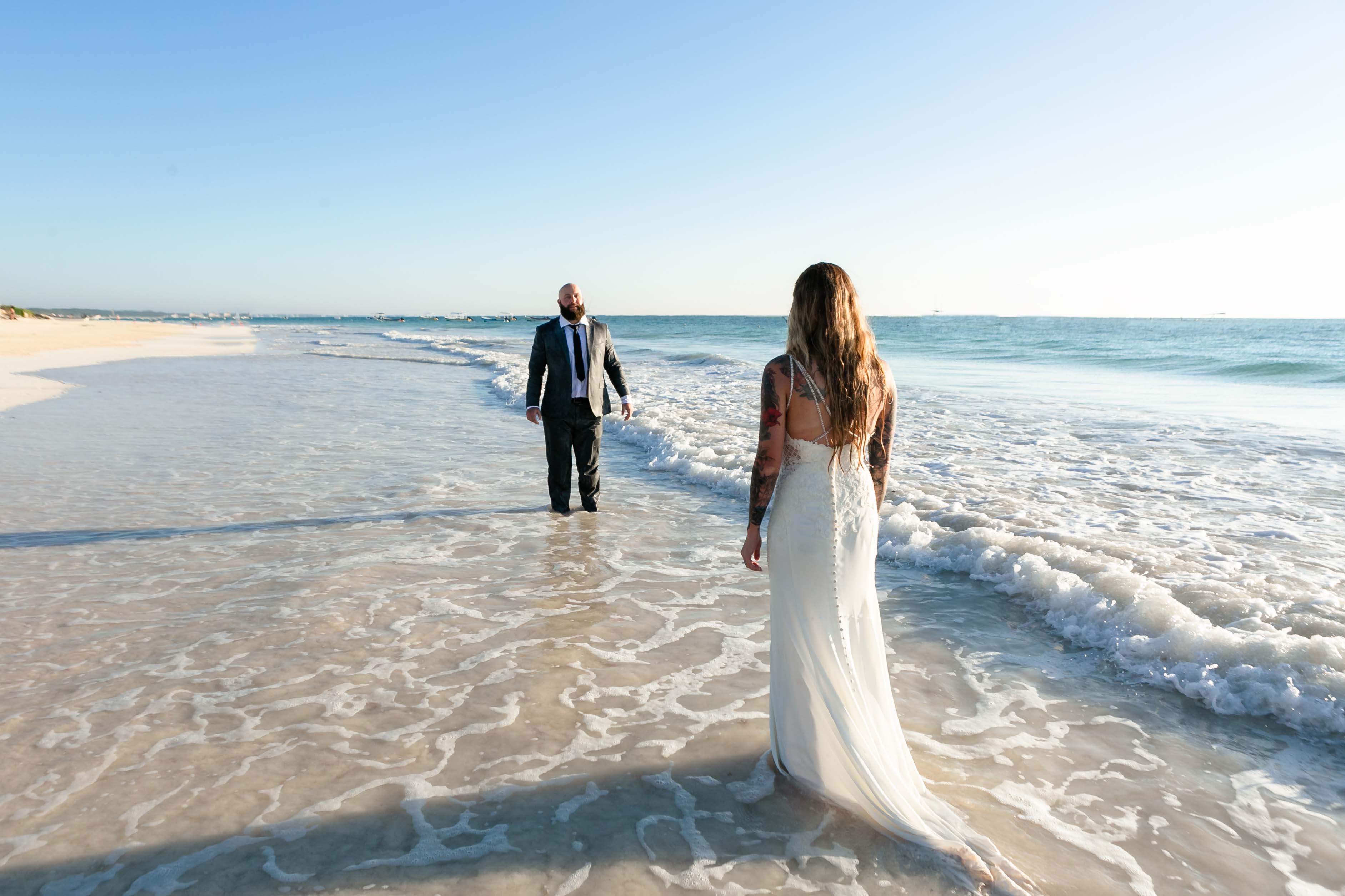 There’s something incredibly powerful about starting the day at the ocean’s edge. For Kelsey and Ricky, Blue Venado provided the perfect setting to celebrate their love one last time in their wedding attire, this time with barefoot freedom, crashing waves, and glowing sunrise skies.