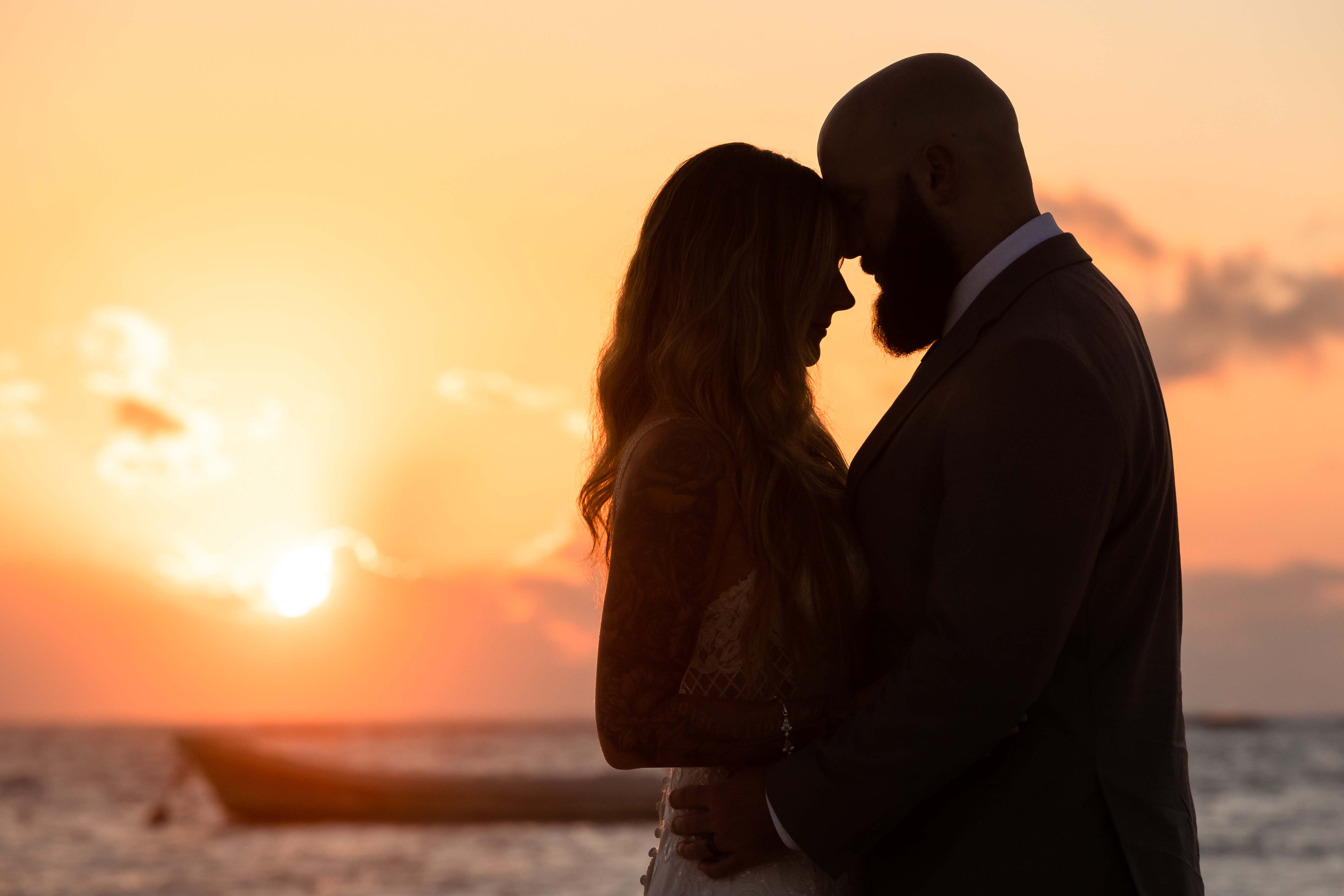BlueVenadoNewlywedsKissOnBeachAtSunrise