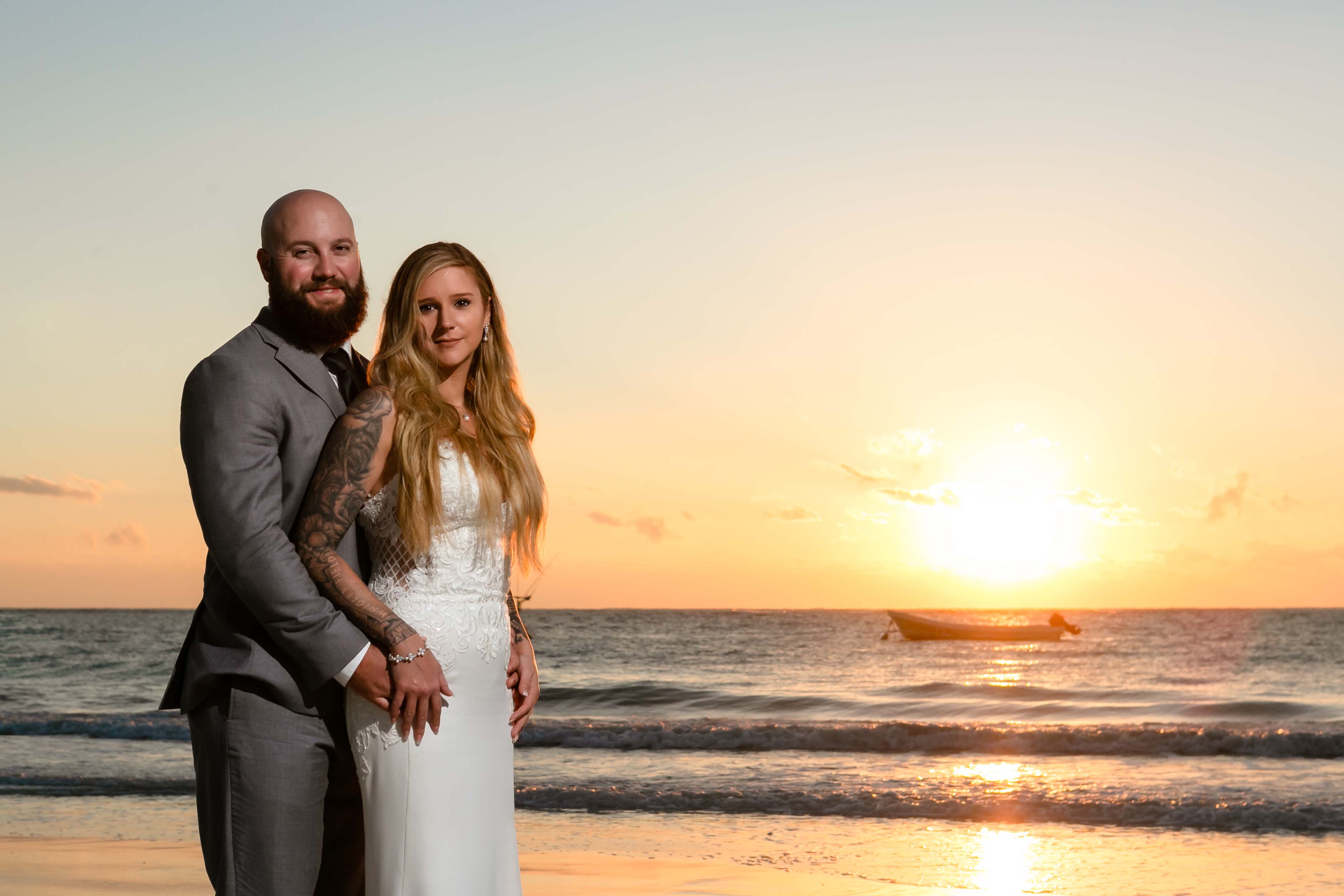 BlueVenadoNewlywedsPoseOnBeachAtSunrise