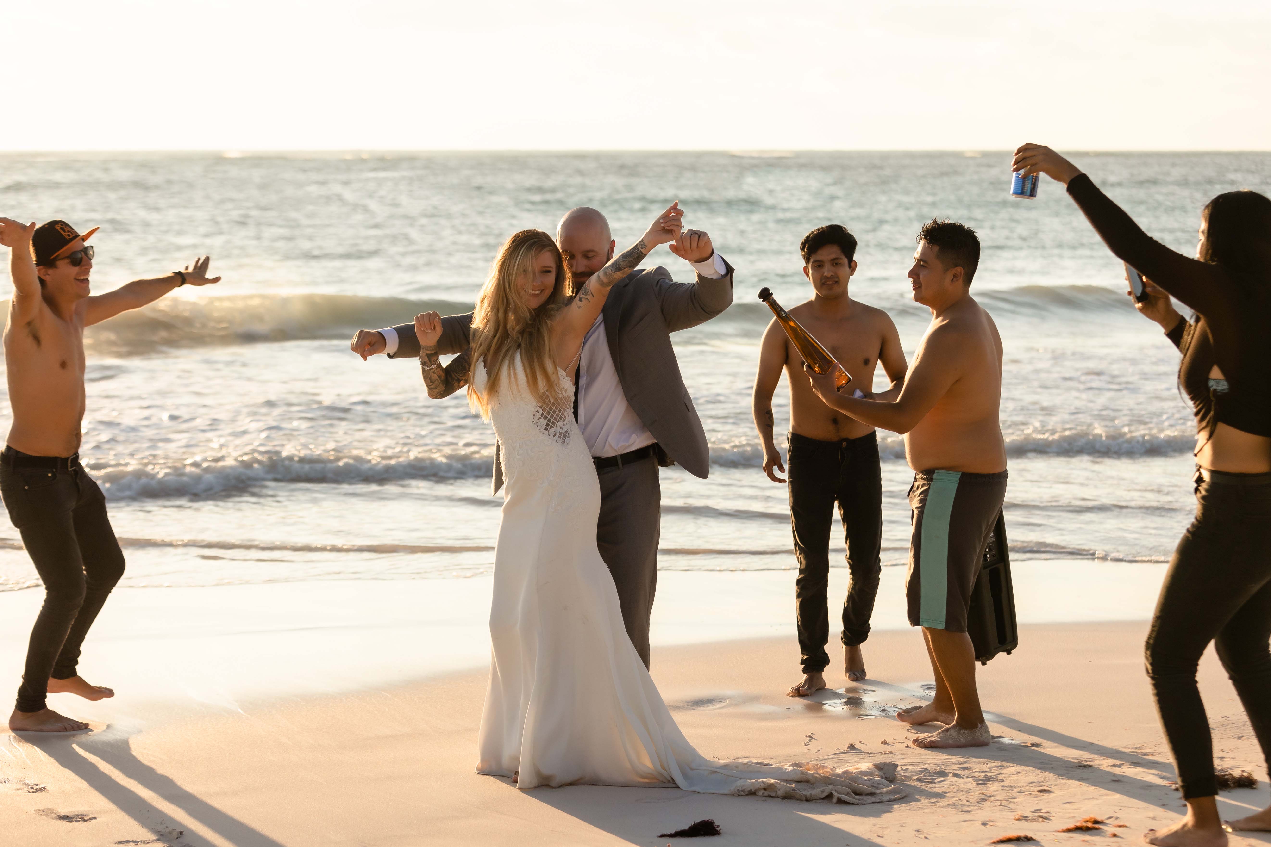 BeachPartyPeopleSaluteNewlyweds