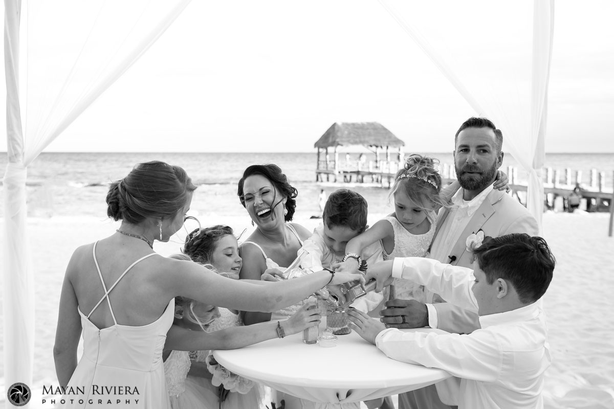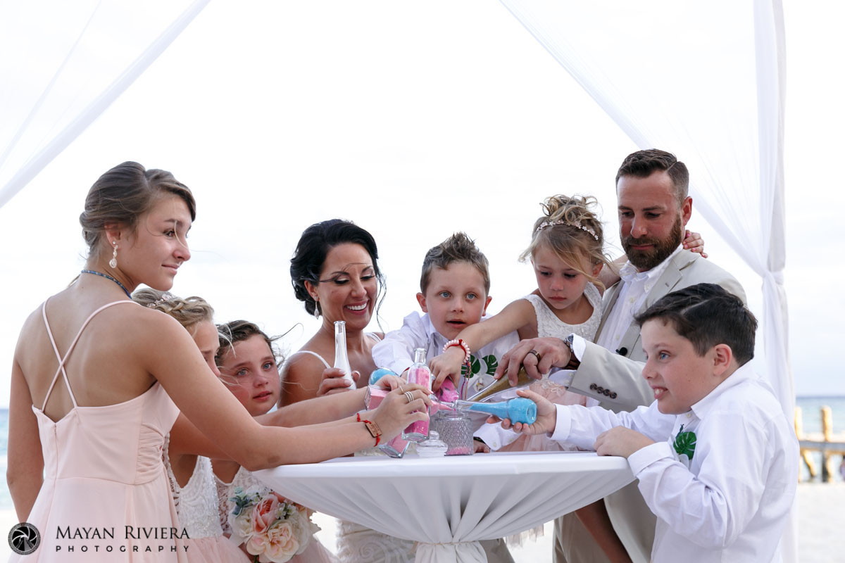 Emotions ran high as the newly blended family joined in together to perform a colorful sand ceremony, symbolizing their inseparable bond going forward.