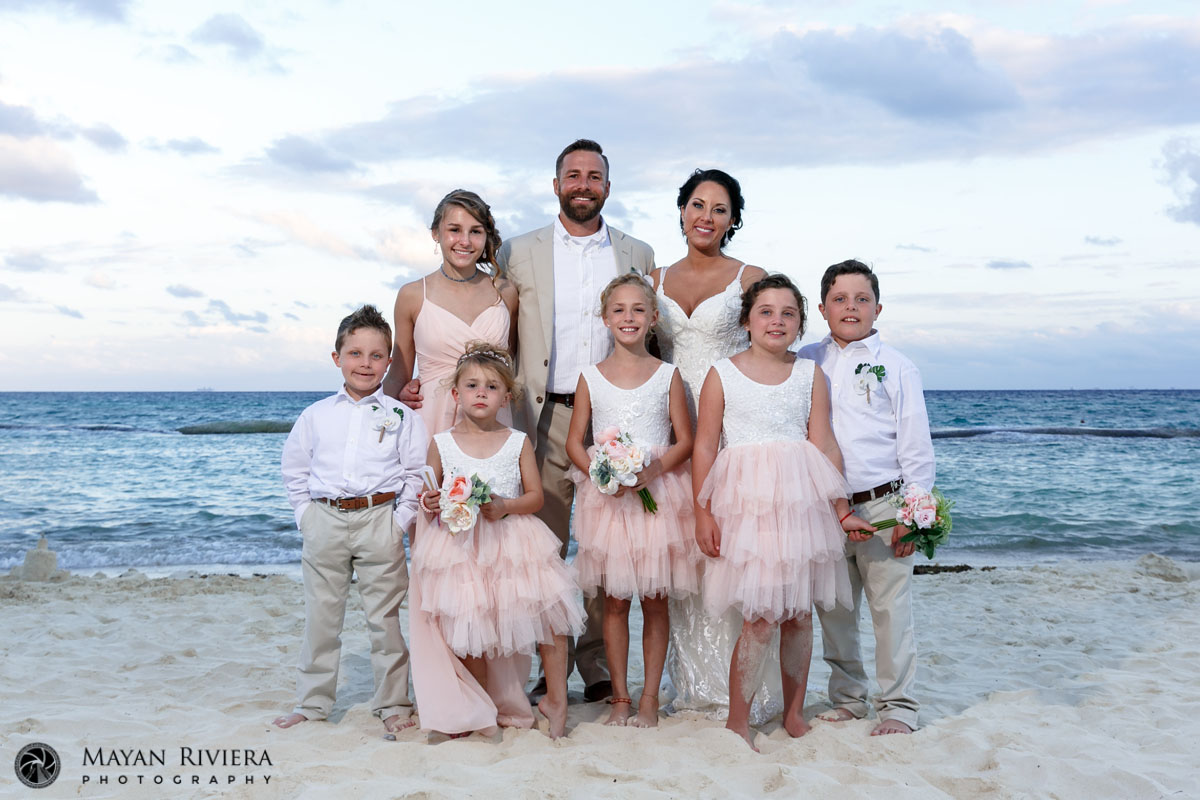 Jennifer + Craig chose Azul Fives in Playa del Carmen for their destination wedding, joining their two families together into an officially blended family of six. Known for its modern charm, lush tropical gardens, and oceanfront backdrops, Azul Fives offered everything they dreamed of for their big day.