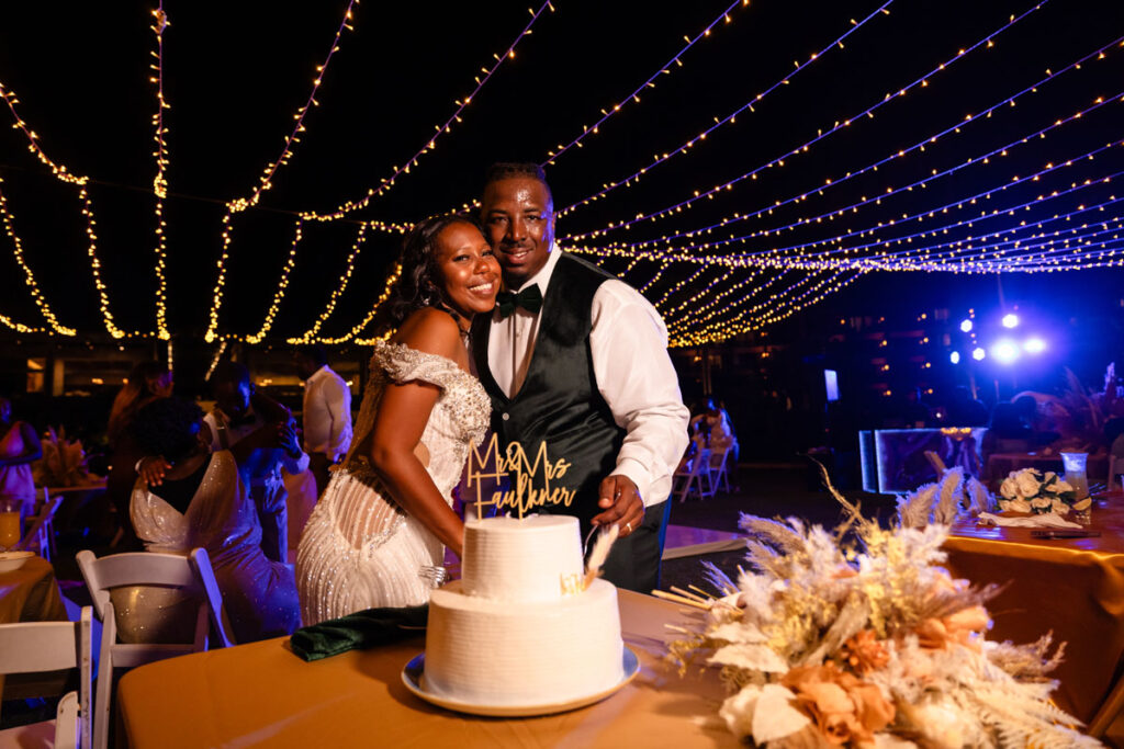 Your cake should match your guest count. A three-tier cake typically serves 100–120 guests, while smaller weddings can enjoy a single-tier or two-tier option. If you want the grandeur of a tall cake, some tiers can be faux for style without waste.