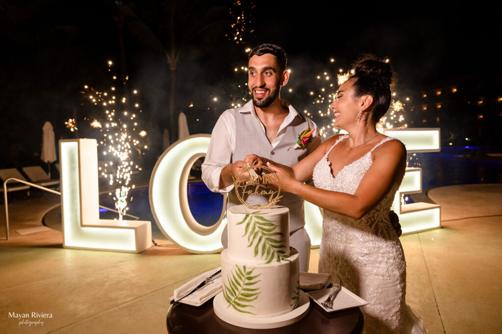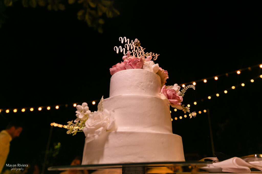 Think of your cake as part of your décor. Do you prefer classic white tiers, tropical accents inspired by the Riviera Maya, or modern geometric designs? Matching your cake to your wedding theme creates a seamless, polished look.