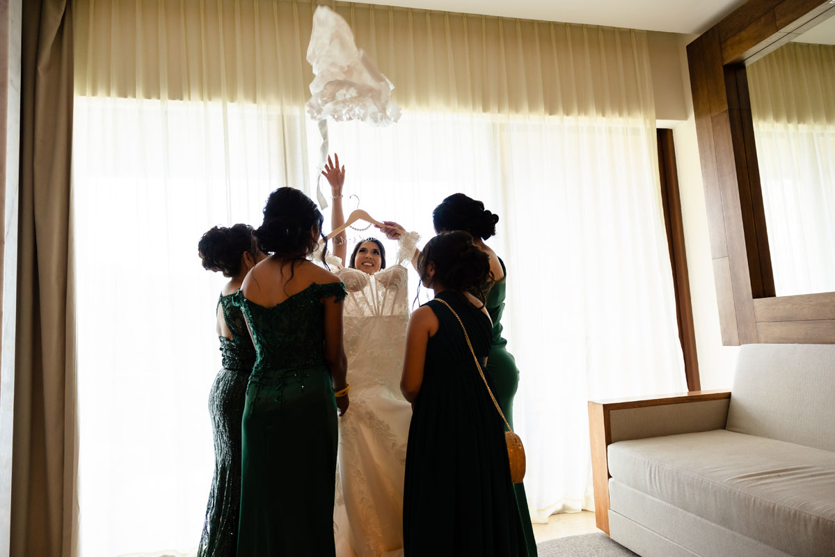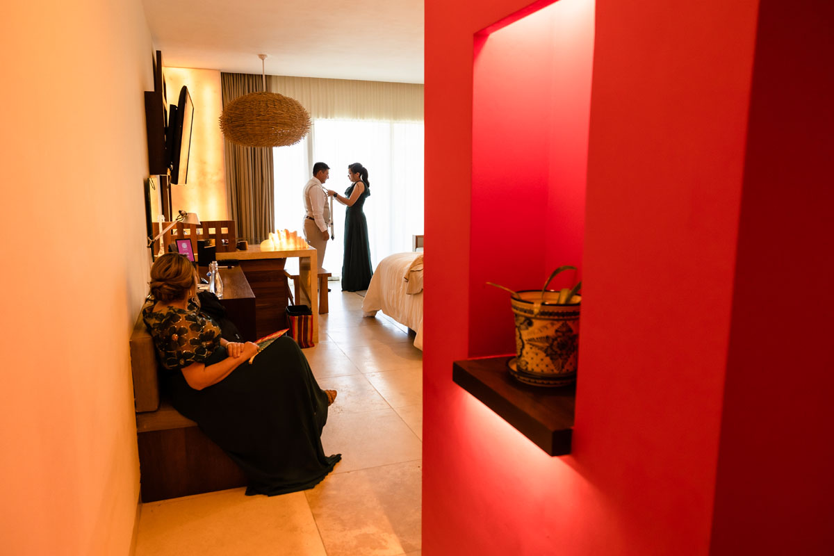 The morning began in the serene beauty of Xcaret’s suites, where soft light filtered through the greenery as Magali prepared for her big day. Her excitement, paired with the calming energy of the surroundings, created the perfect start.