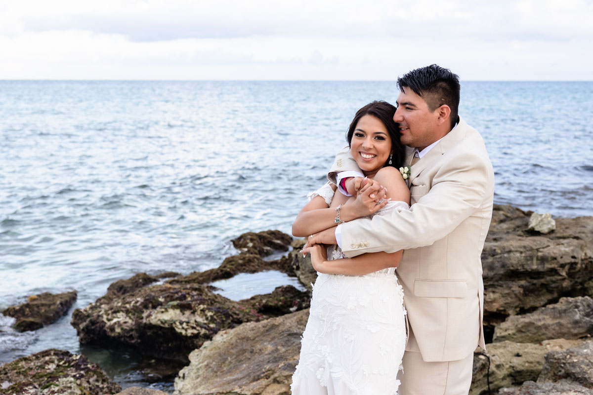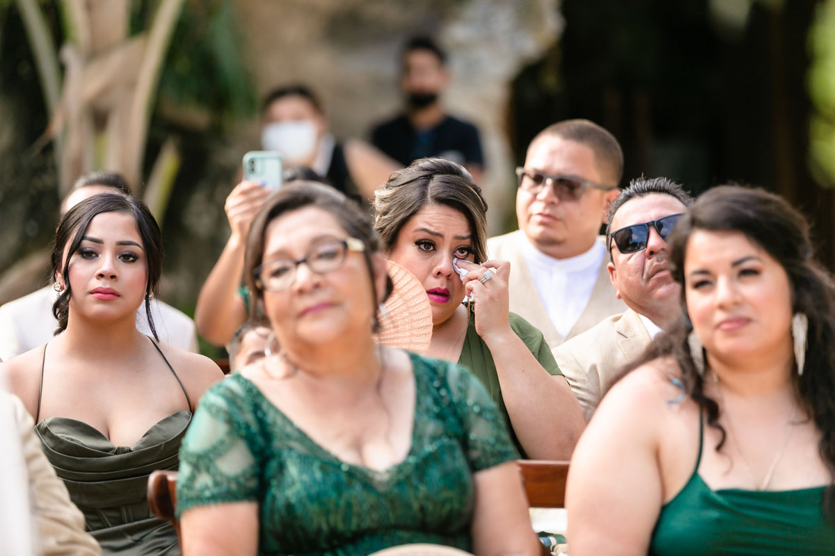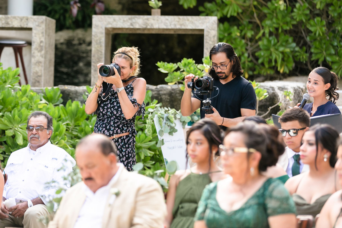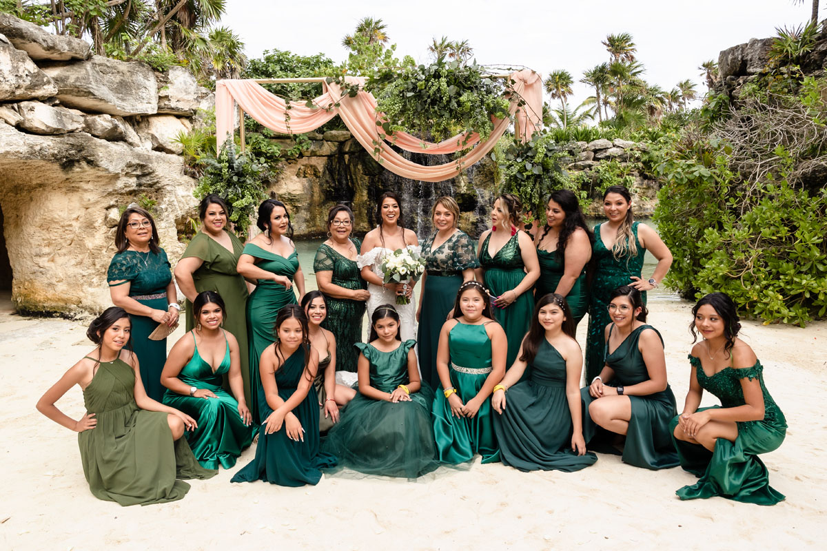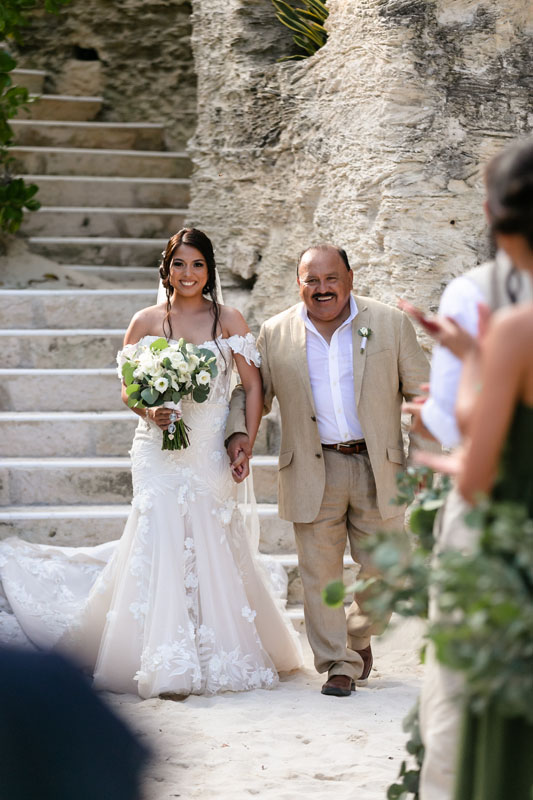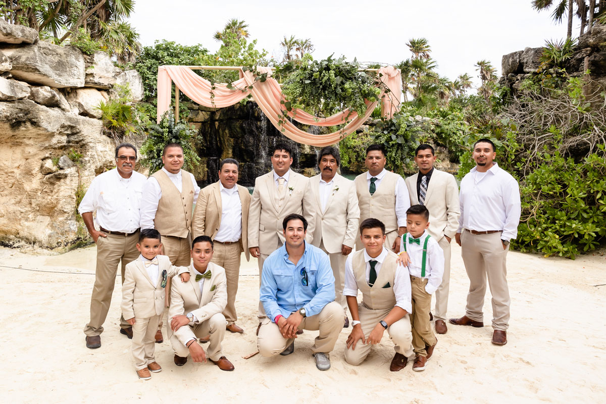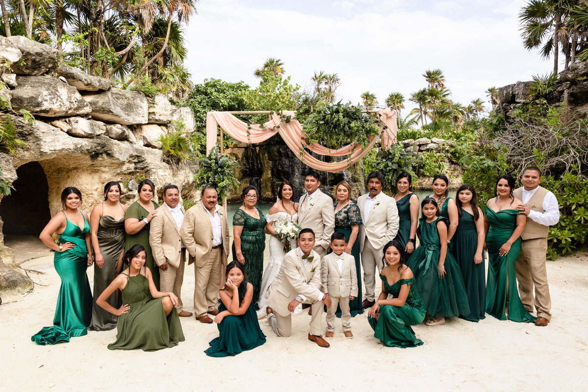 Hotel Xcaret Mexico is known for its iconic ceremony spaces, and Magali & Adan chose one of the most breathtaking. With turquoise water below, stone pathways all around, and vibrant green jungle framing their “I do,” their vows felt powerful, emotional, and beautifully intimate.