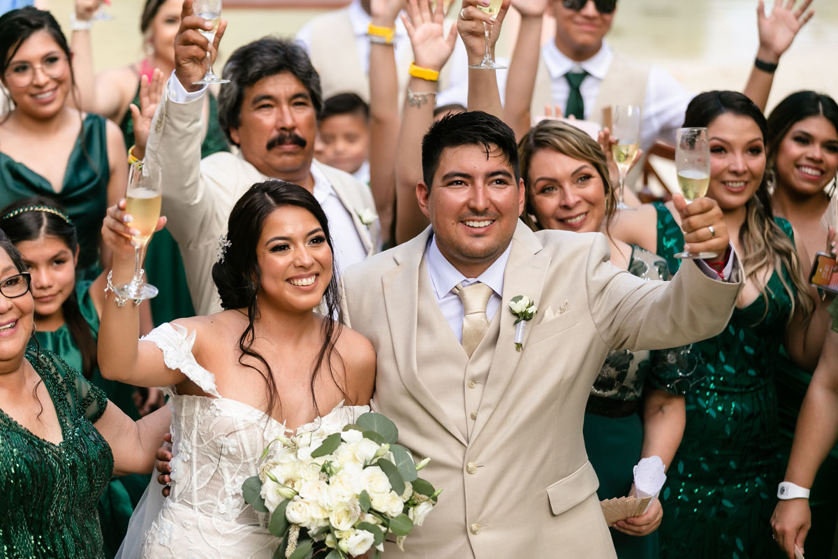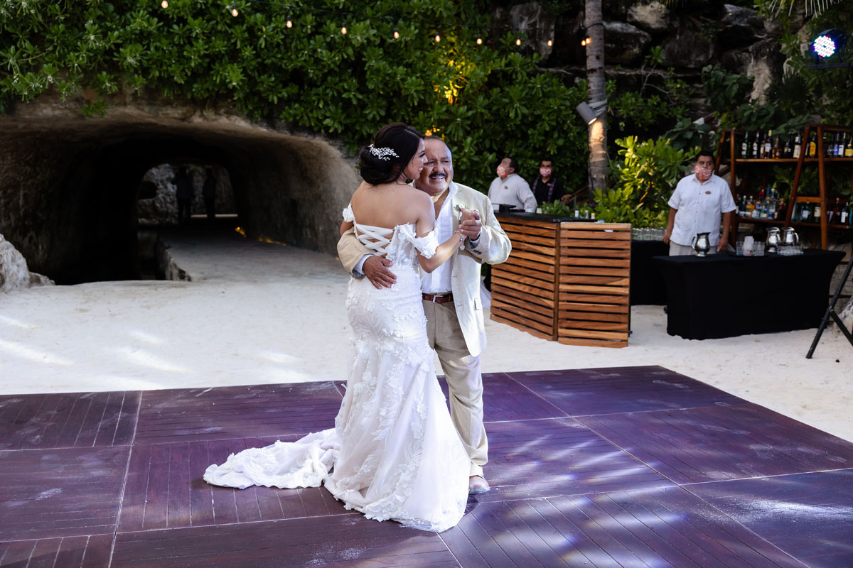 As evening settled in, their celebration shifted into a night filled with color, delicious cuisine, music, and fun party vibes. Hotel Xcaret’s stunning reception spaces transformed into a warm, glowing celebration where heartfelt speeches, joyful tears, and nonstop dancing carried the night.