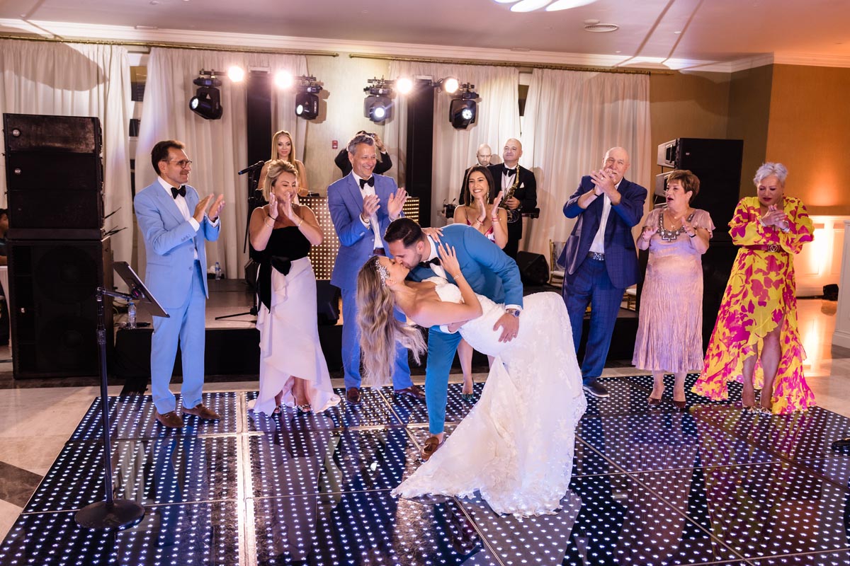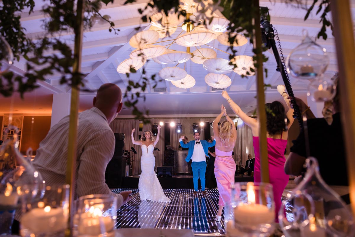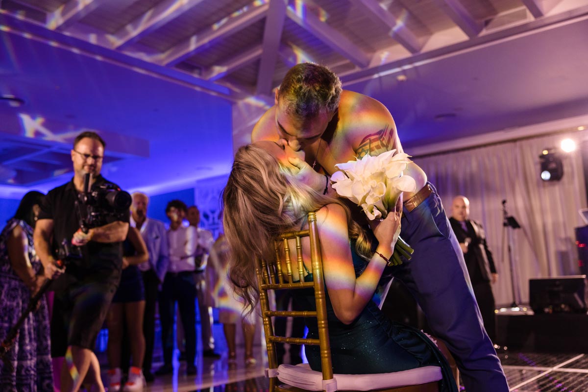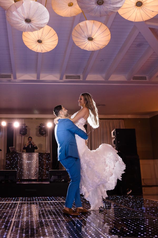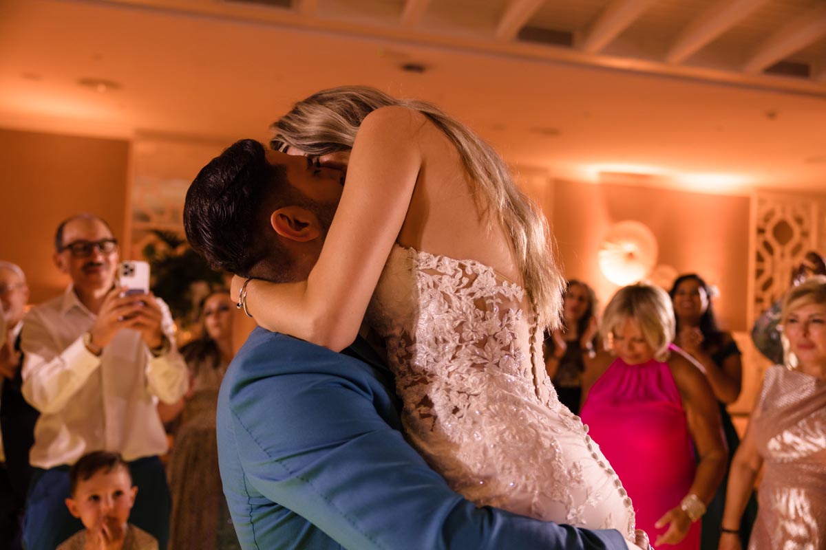 After the ceremony, we captured a romantic newlywed session around the resort as the light softened and the evening settled in. The celebration kicked up a notch at the reception, with beverages flowing, there was lots of laughter, rocking dance moves, as their happy friends and family joined right in!