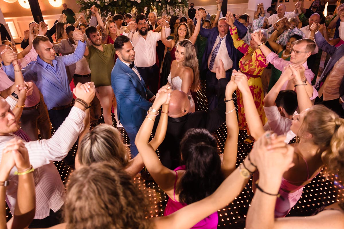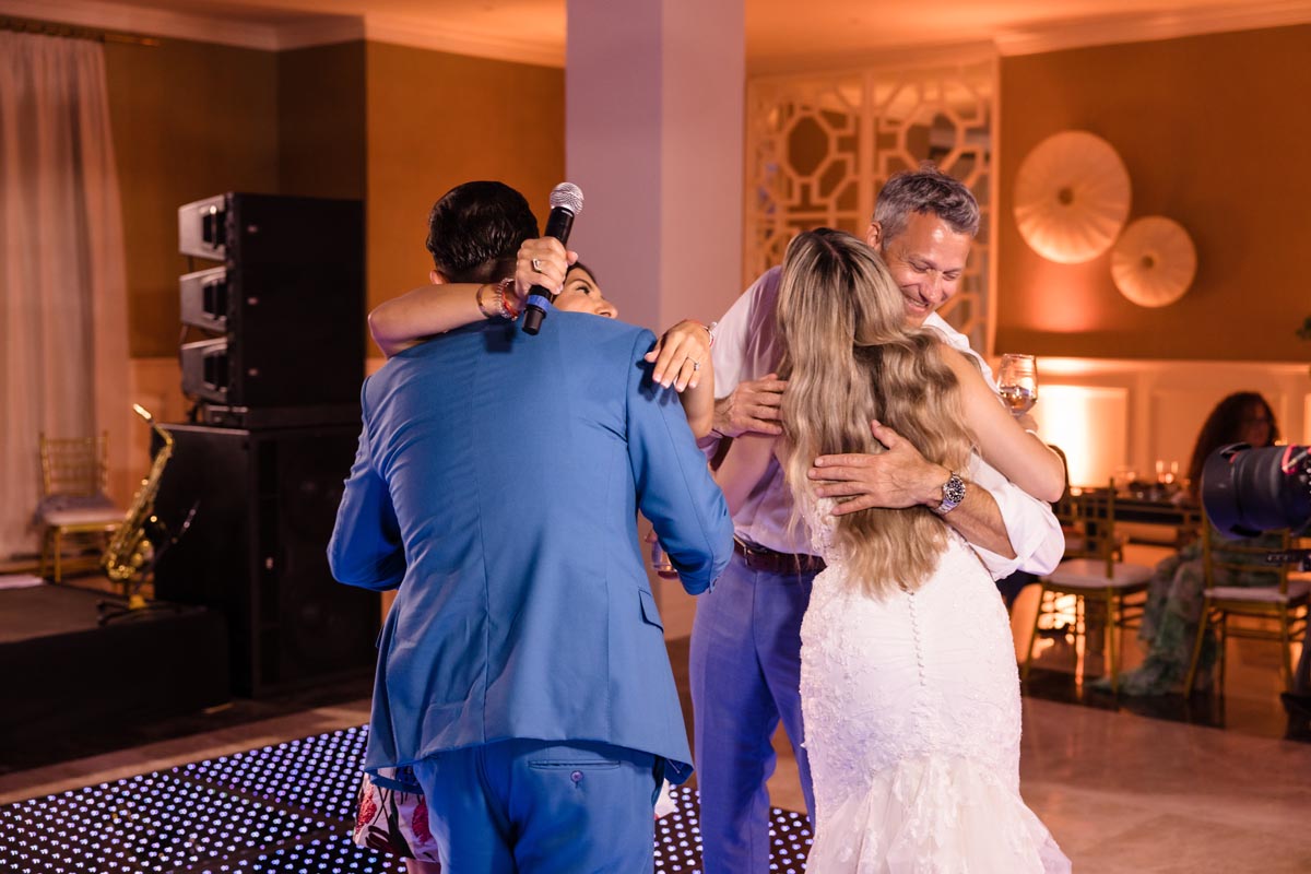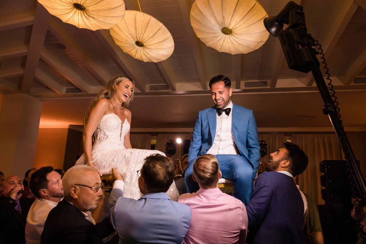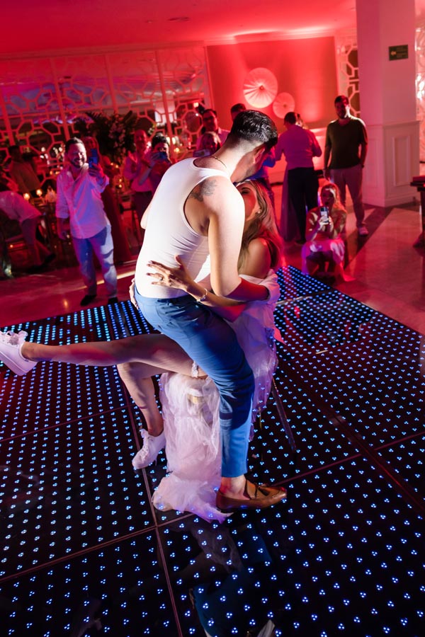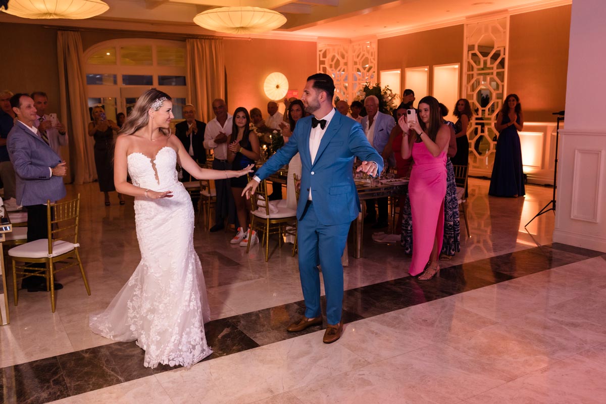 After the ceremony, we captured a romantic newlywed session around the resort as the light softened and the evening settled in. The celebration kicked up a notch at the reception, with beverages flowing, there was lots of laughter, rocking dance moves, as their happy friends and family joined right in!