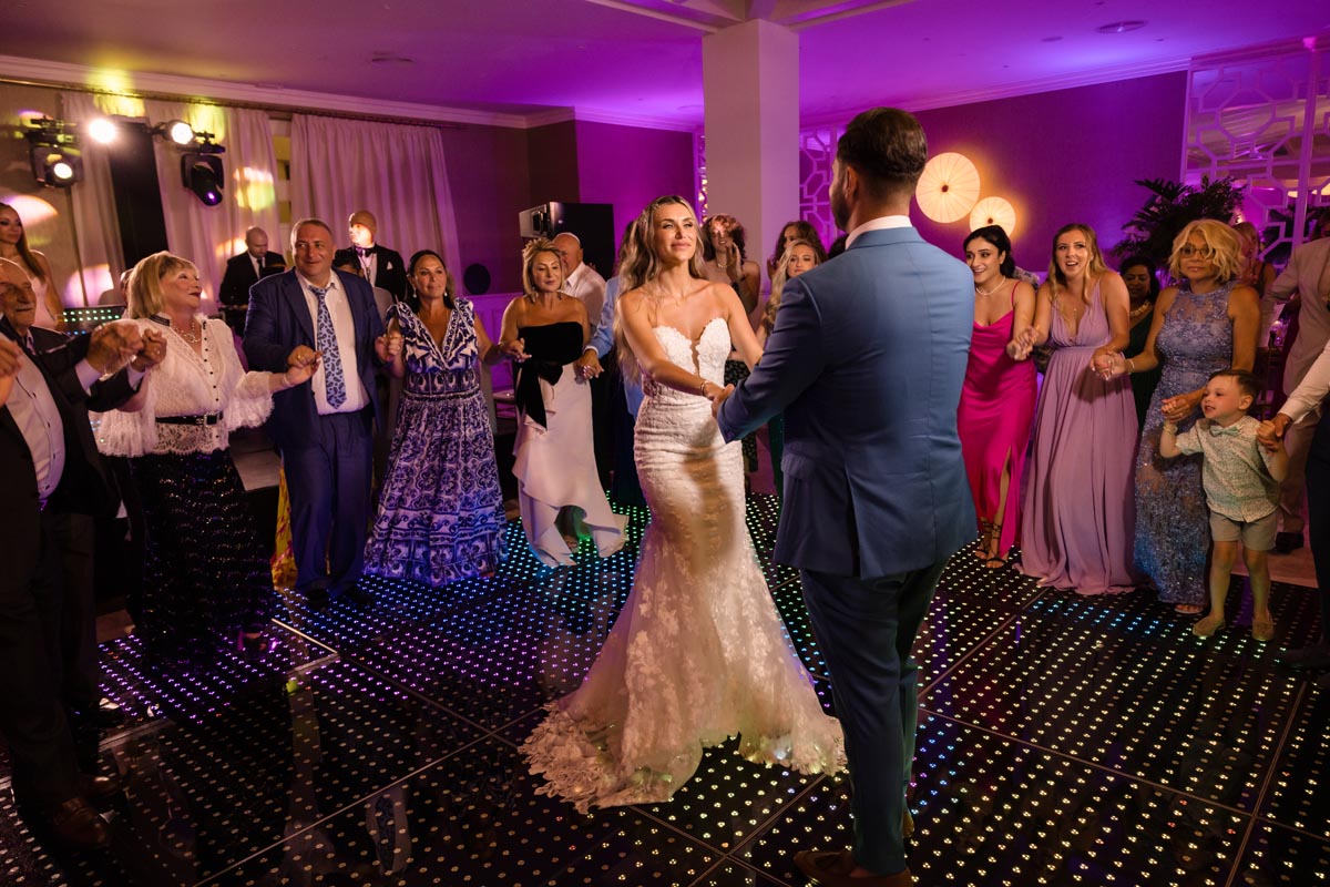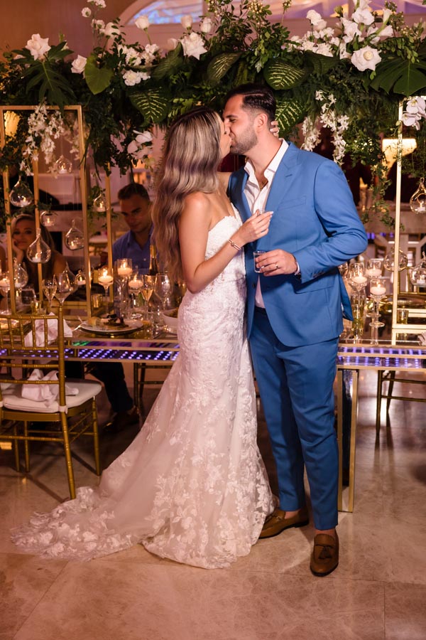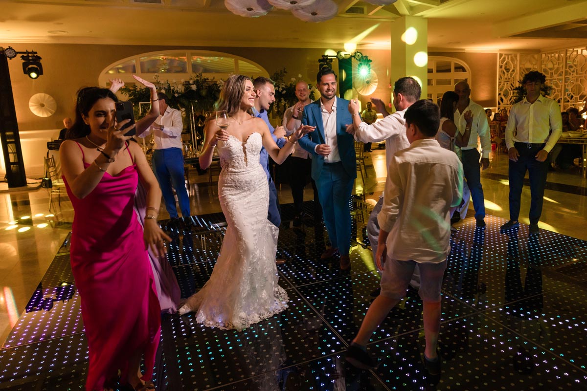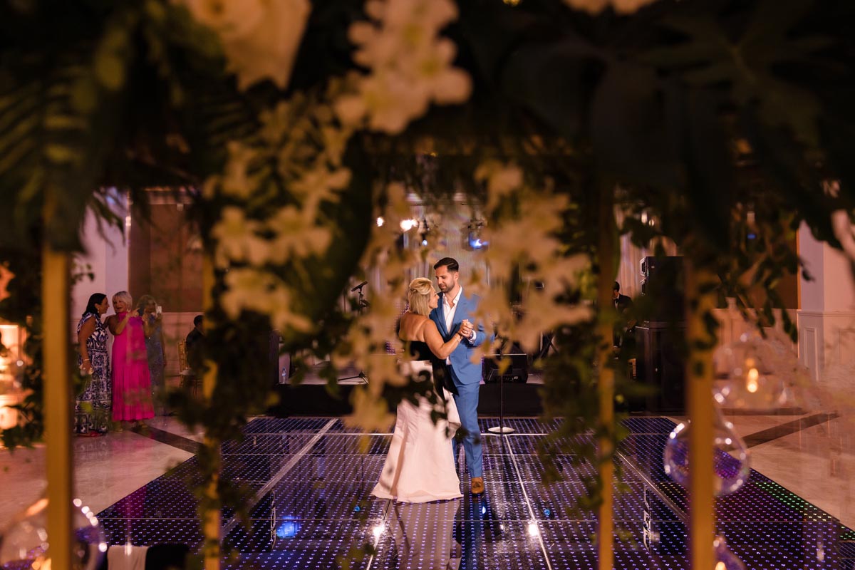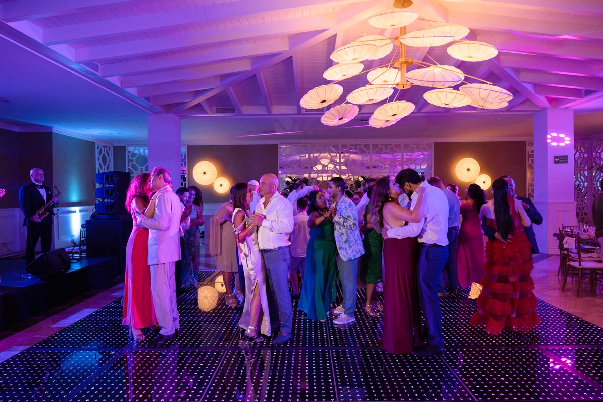After the ceremony, we captured a romantic newlywed session around the resort as the light softened and the evening settled in. The celebration kicked up a notch at the reception, with beverages flowing, there was lots of laughter, rocking dance moves, as their happy friends and family joined right in!