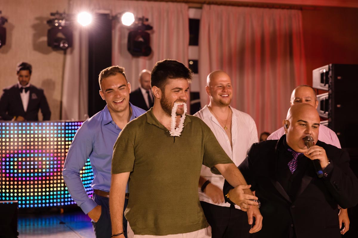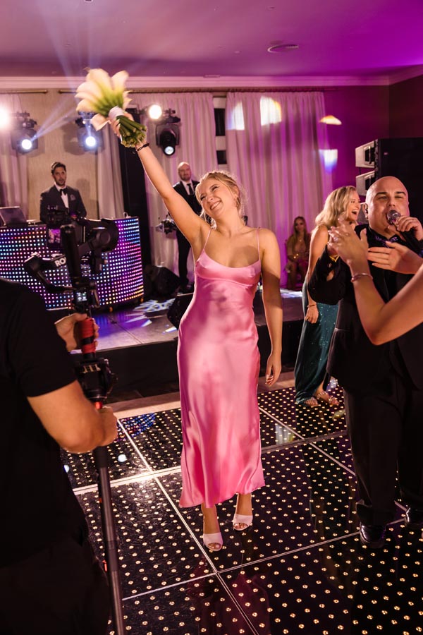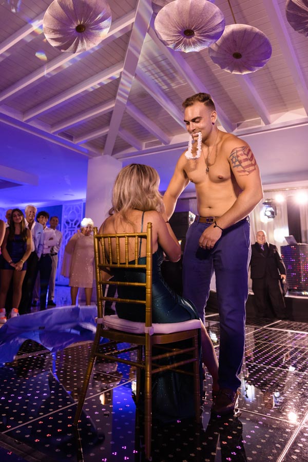 When Neil tossed Yelena’s garter, the guy who caught it slipped it on the leg of the lady who had the bouquet….in a big romantic move that had everyone applauding.