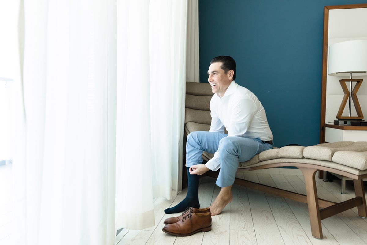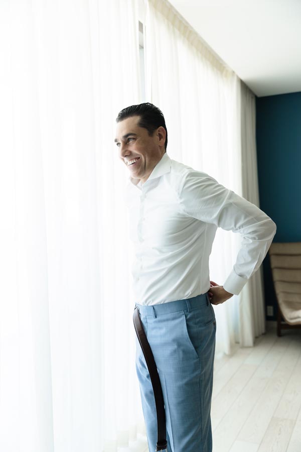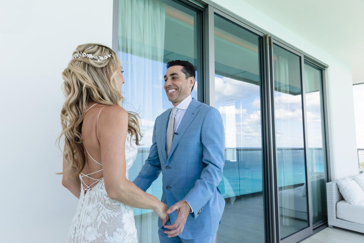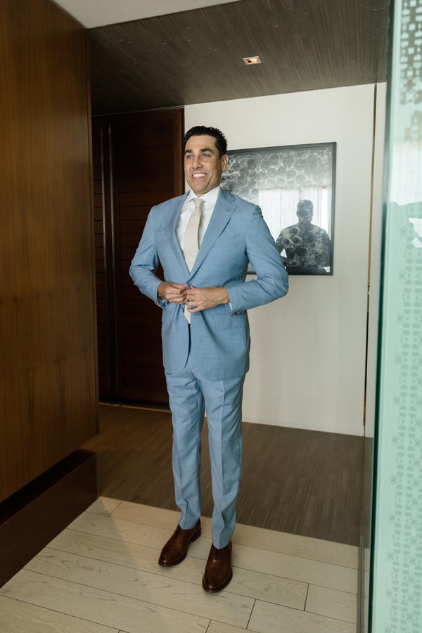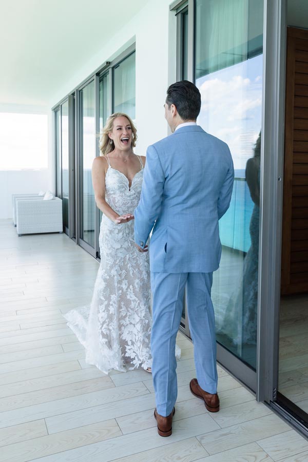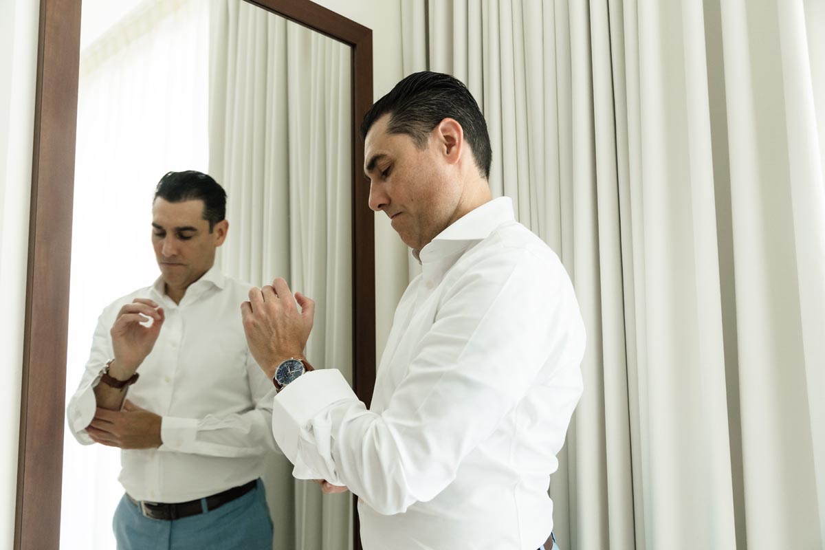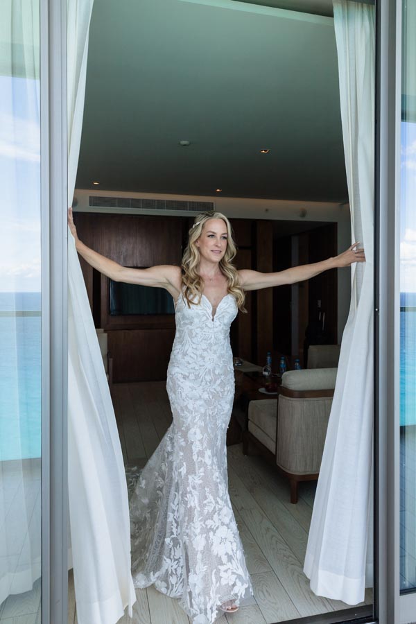 The day began in bright, stylish suites overlooking the Caribbean Sea. Soft natural light, an air of excitement, and thoughtful details set the tone as Stephanie and Bernardo prepared separately for their Big Day. Every glance and smile highlighted their anticipation of embarking on their future together.