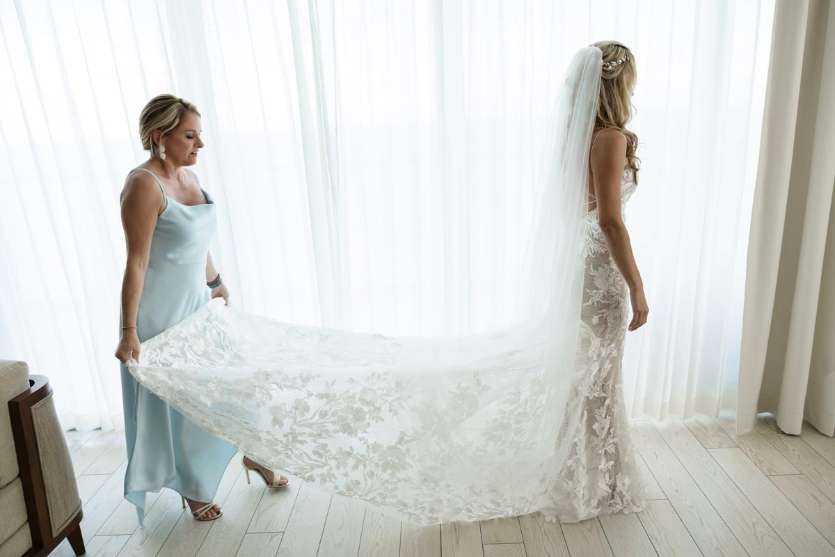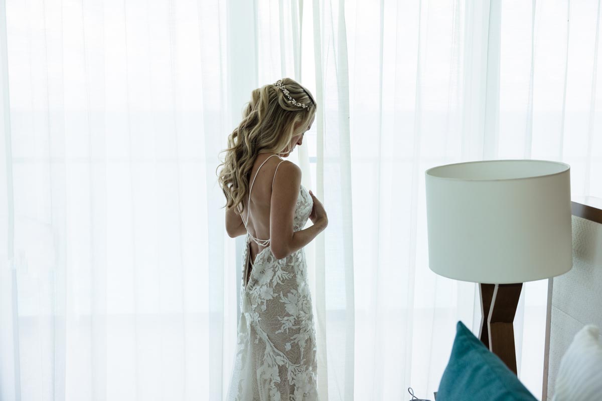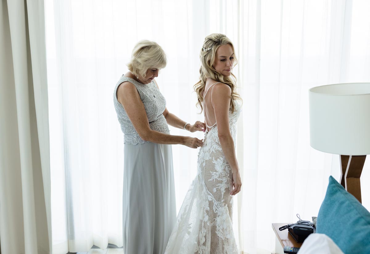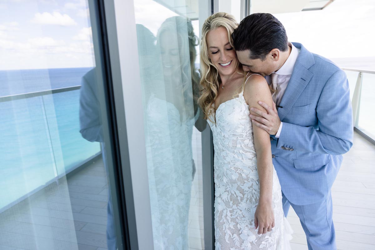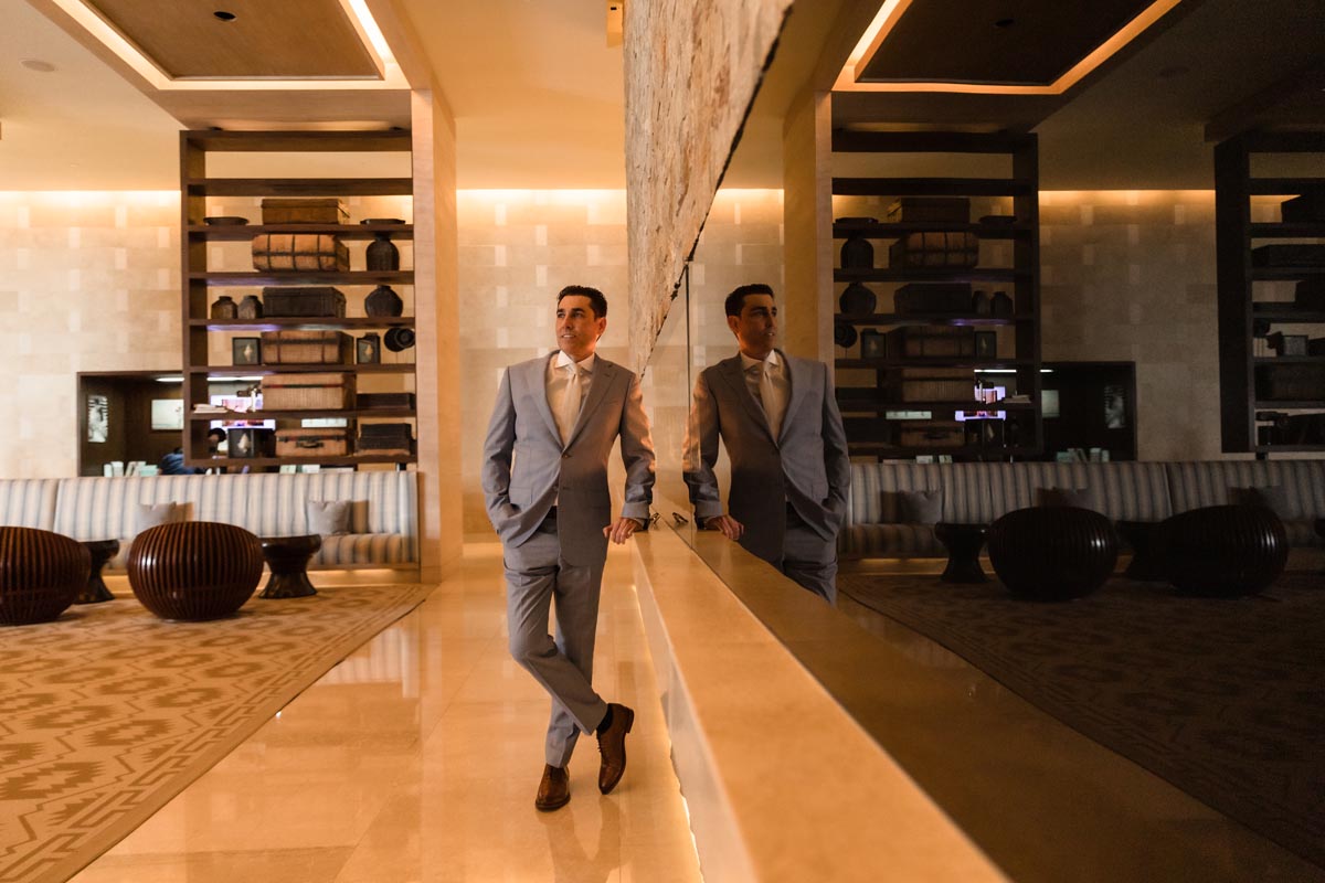 The day began in bright, stylish suites overlooking the Caribbean Sea. Soft natural light, an air of excitement, and thoughtful details set the tone as Stephanie and Bernardo prepared separately for their Big Day. Every glance and smile highlighted their anticipation of embarking on their future together.