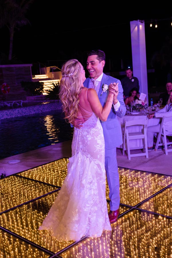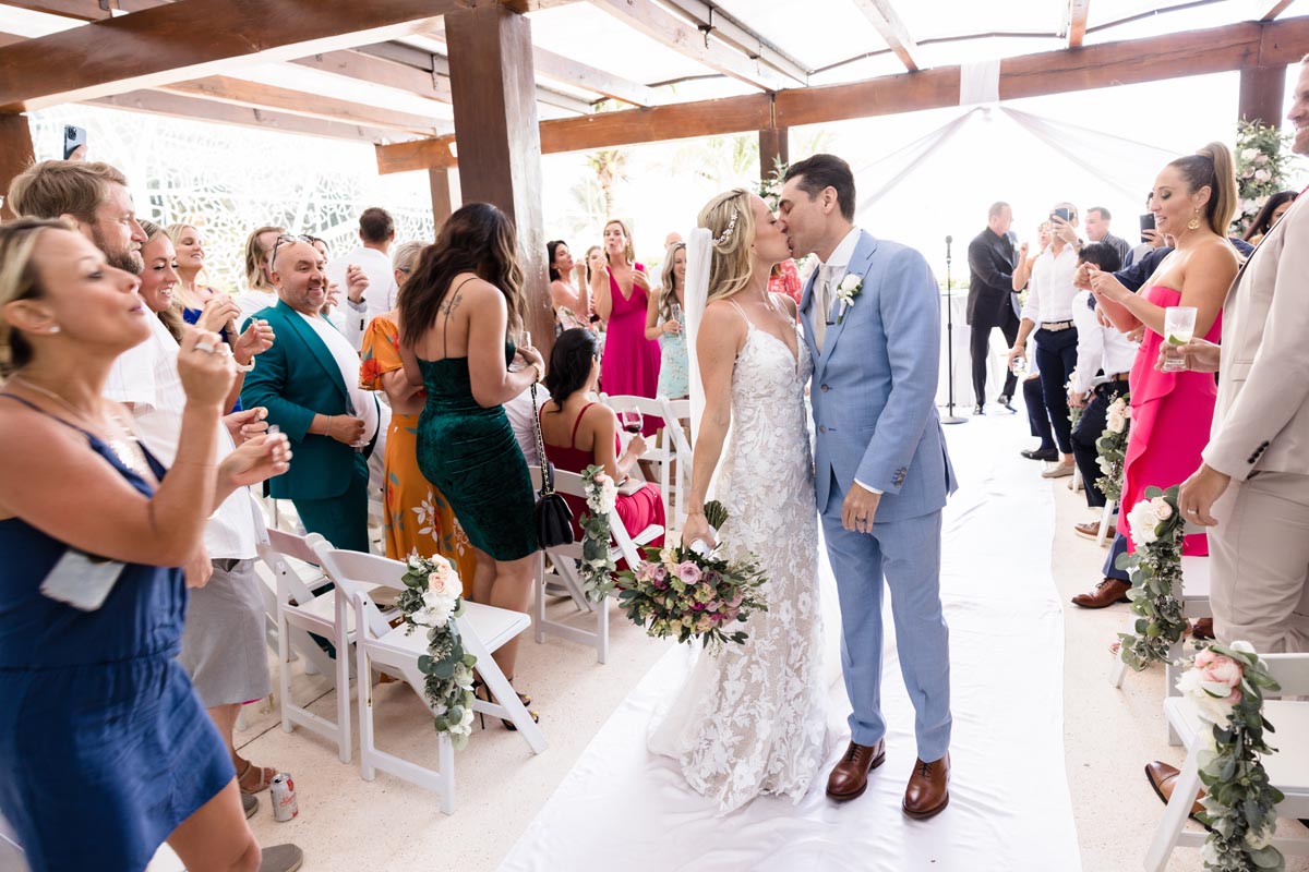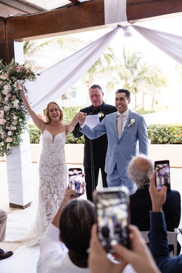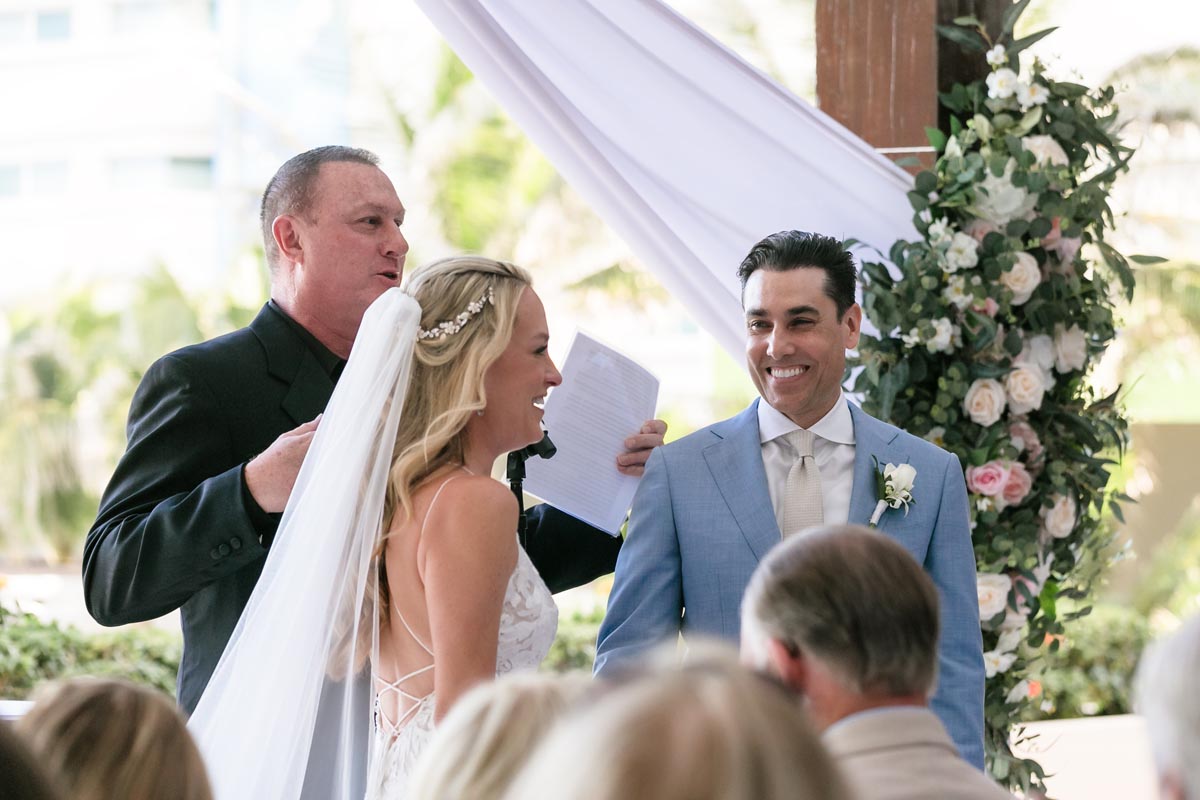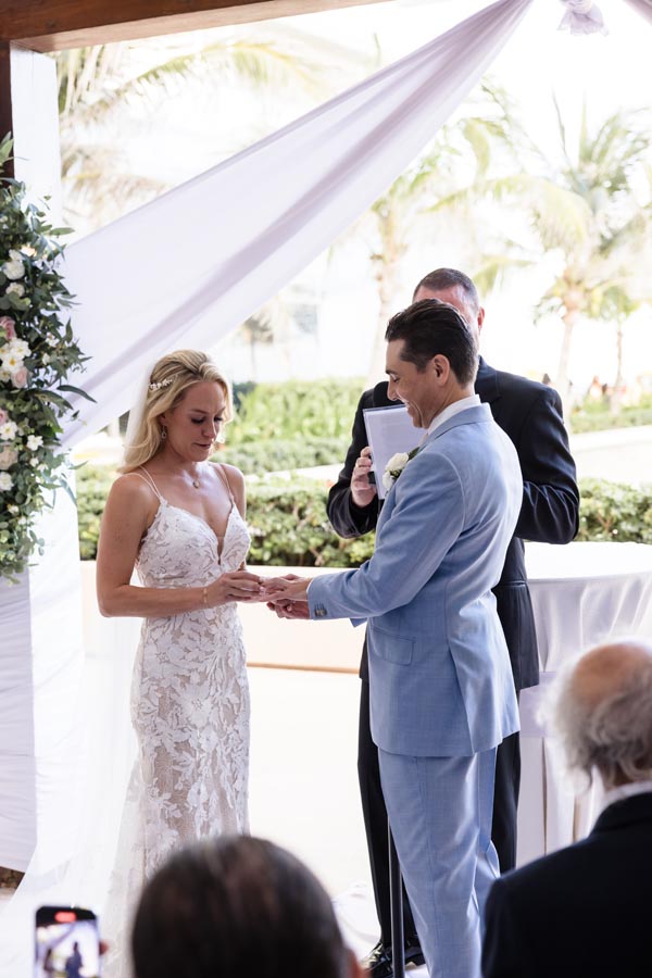 Their ceremony took place with the turquoise ocean as the backdrop, creating an intimately romantic atmosphere. As Stephanie walked down the aisle toward Bernardo, the rest of the world seemed to fade away, leaving just the two of them, lost in each other. Their forever promises seemed to be whispered in the wind, and floated away on the background soundtrack of ocean waves.
