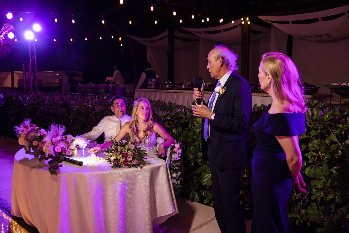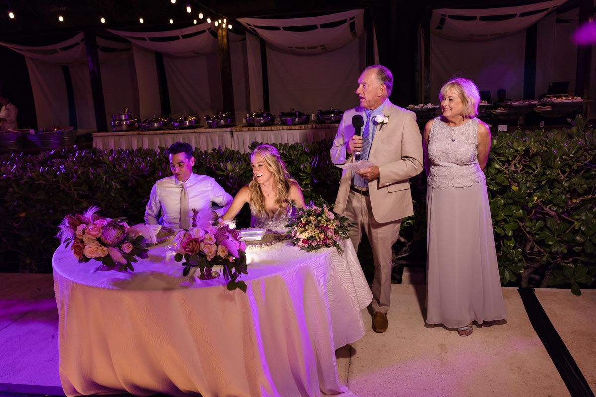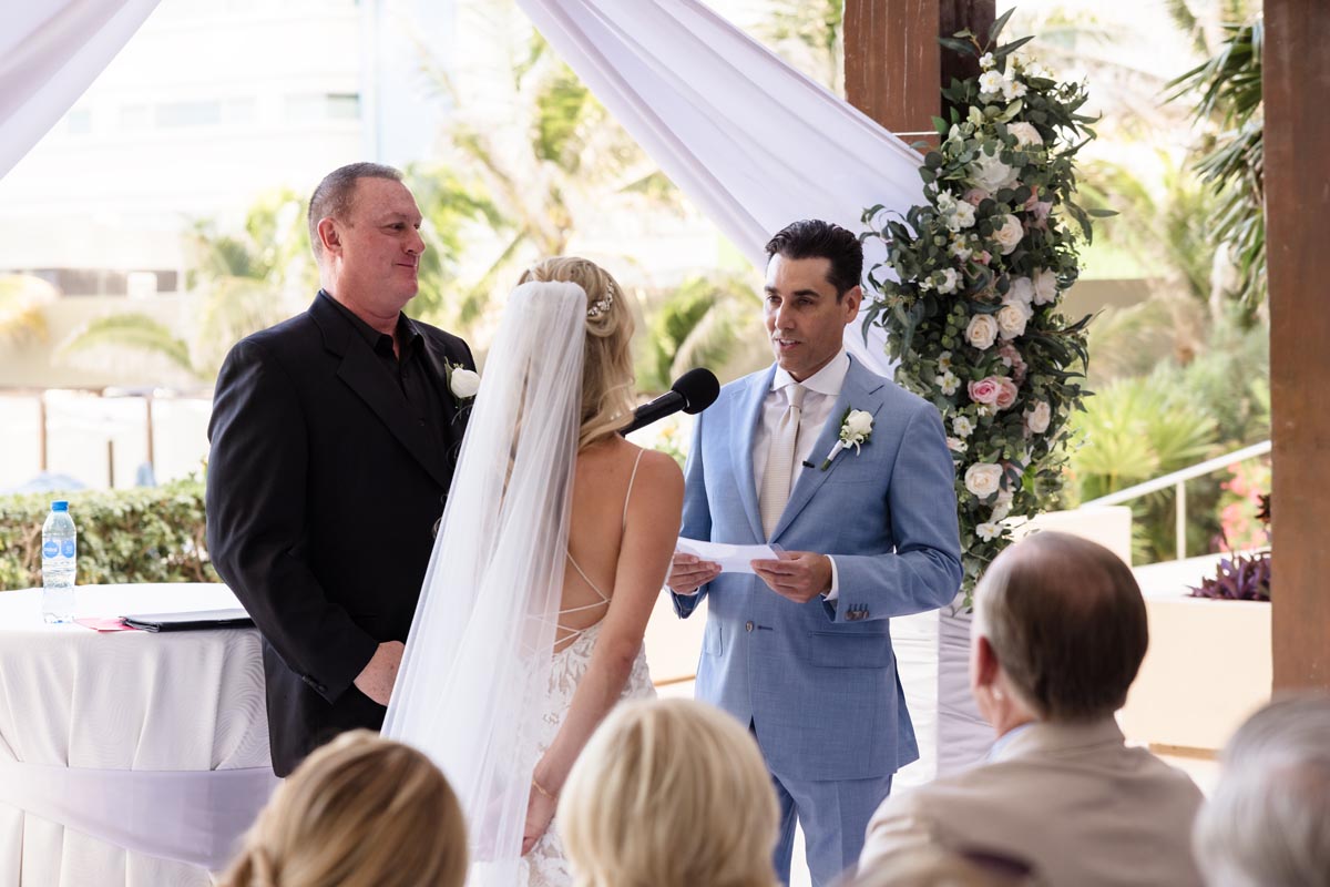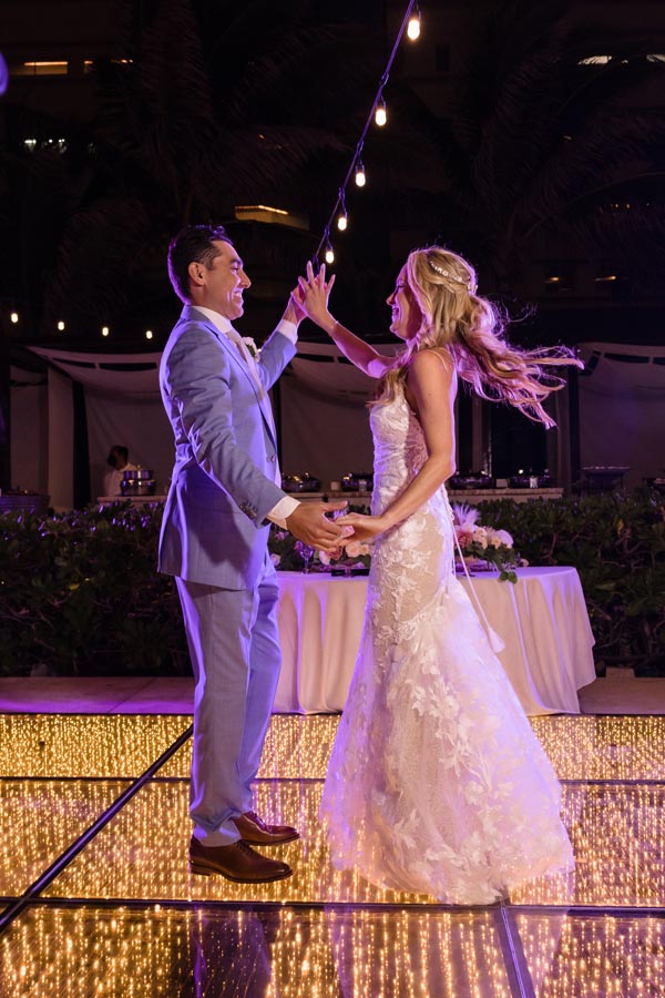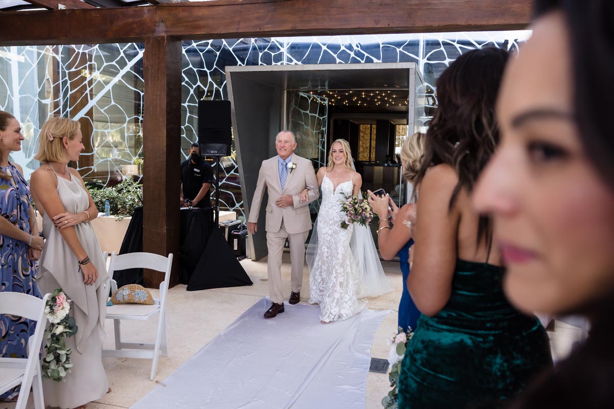Their ceremony took place with the turquoise ocean as the backdrop, creating an intimately romantic atmosphere. As Stephanie walked down the aisle toward Bernardo, the rest of the world seemed to fade away, leaving just the two of them, lost in each other. Their forever promises seemed to be whispered in the wind, and floated away on the background soundtrack of ocean waves.