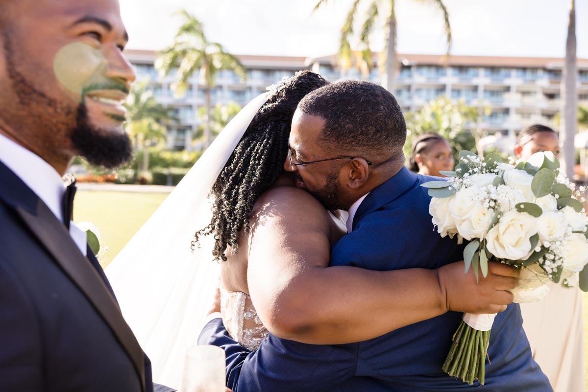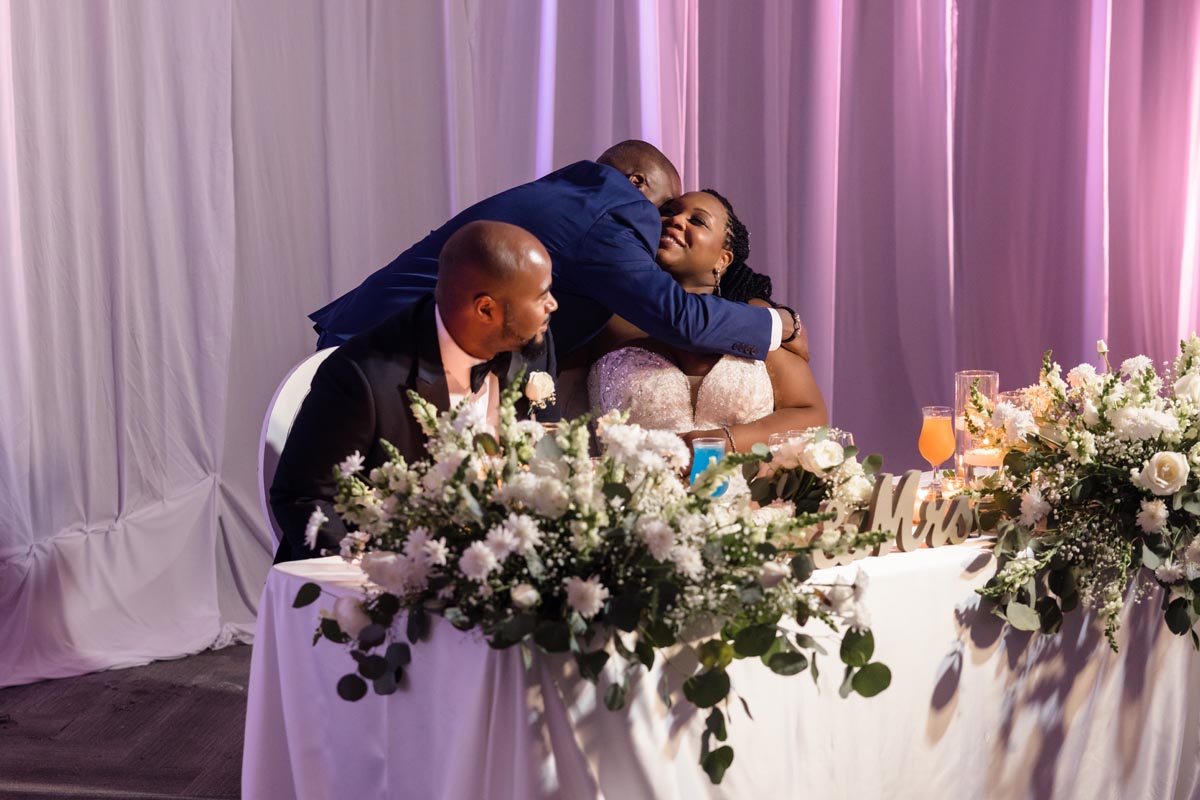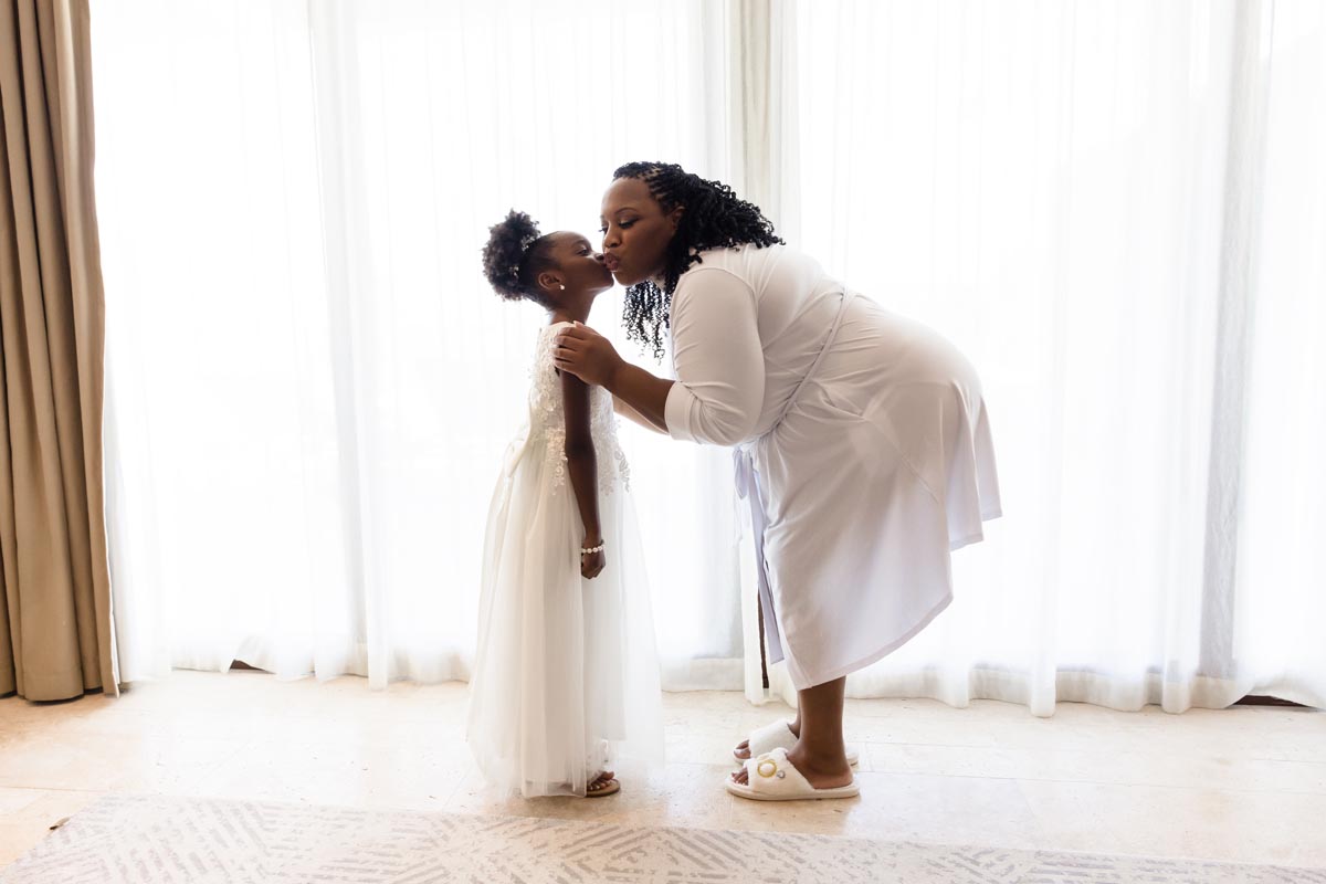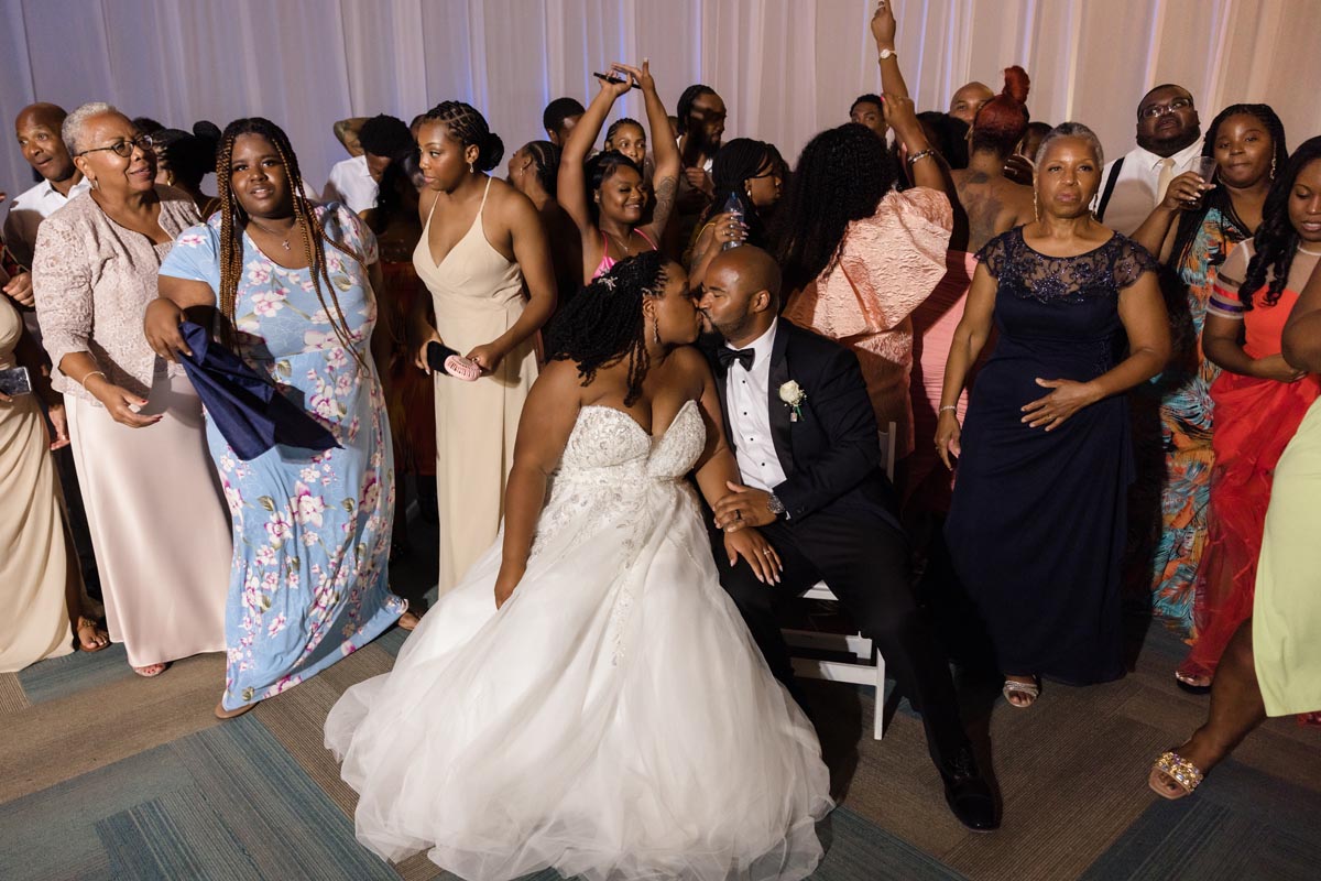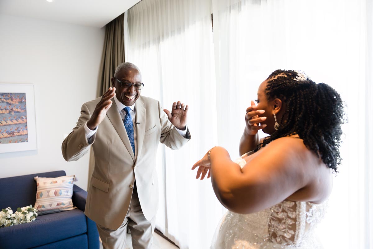 Wedding couple kiss after an emotional first look