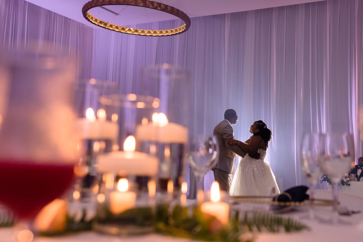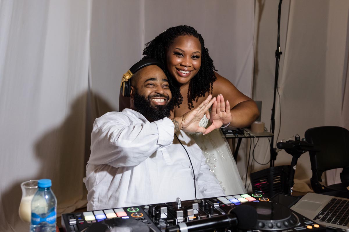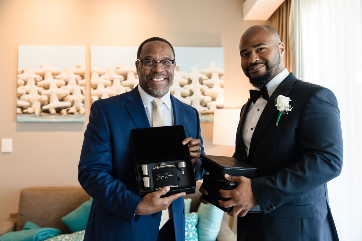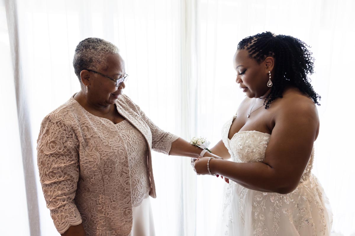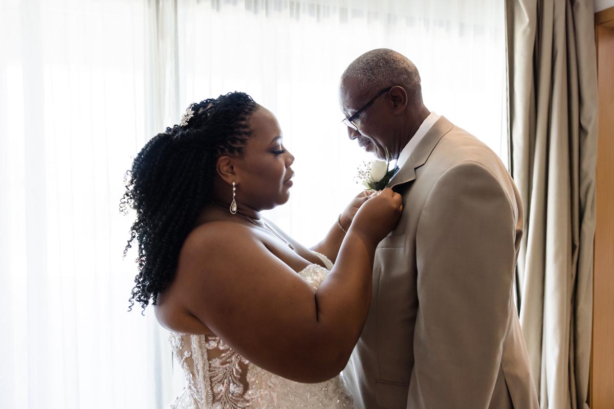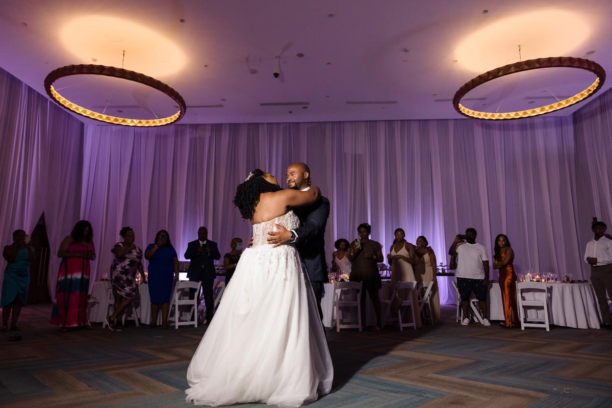 Wedding couple kiss after an emotional first look