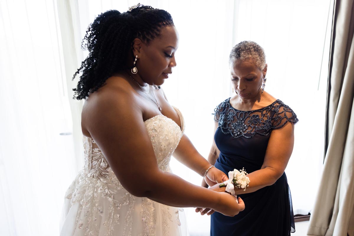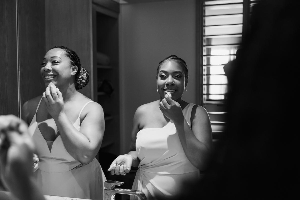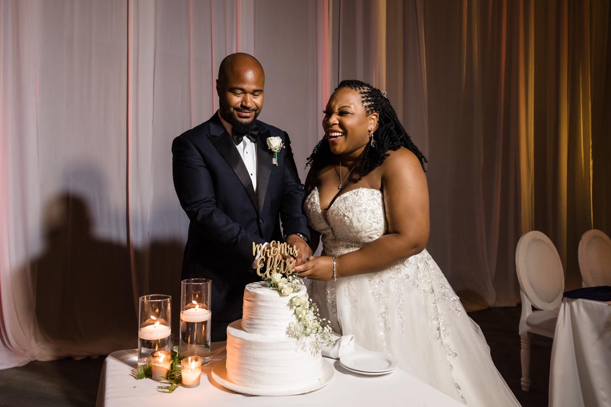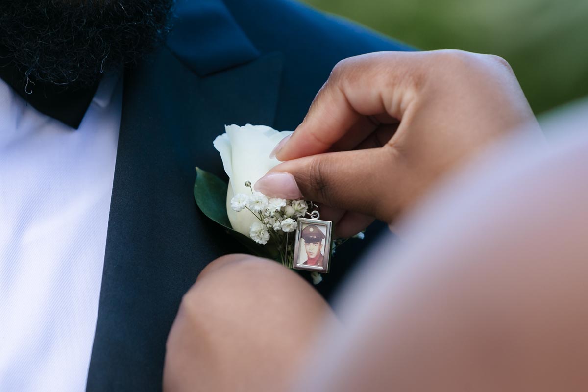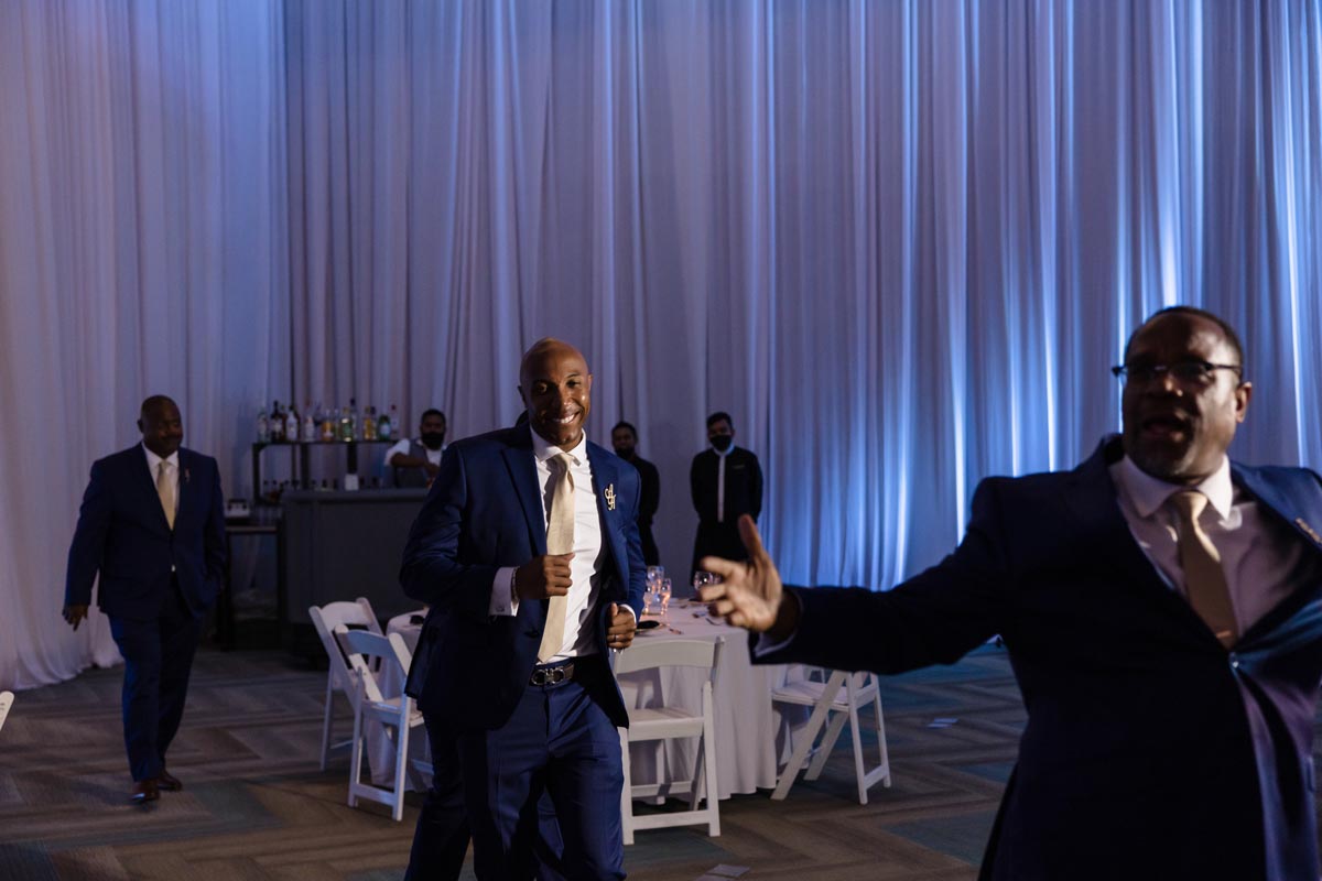 Wedding couple kiss after an emotional first look