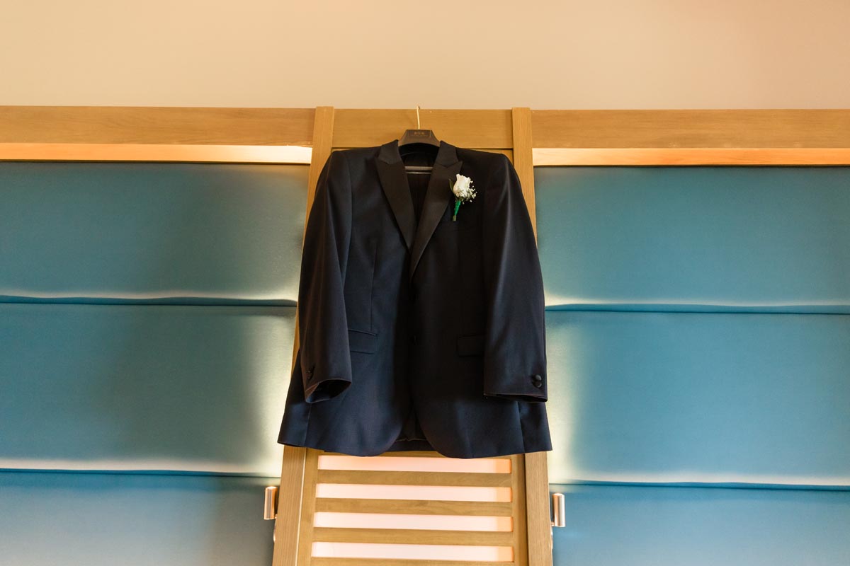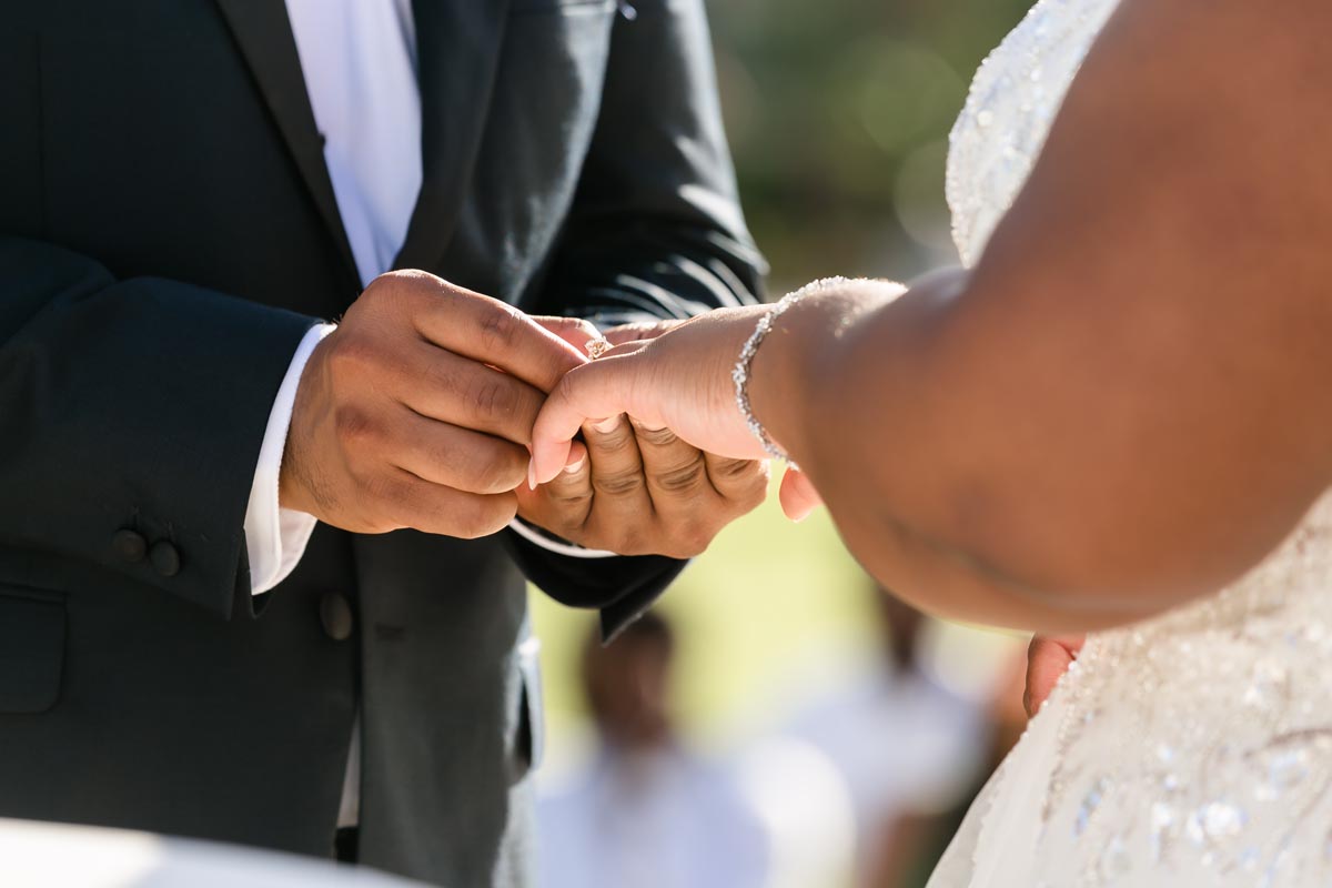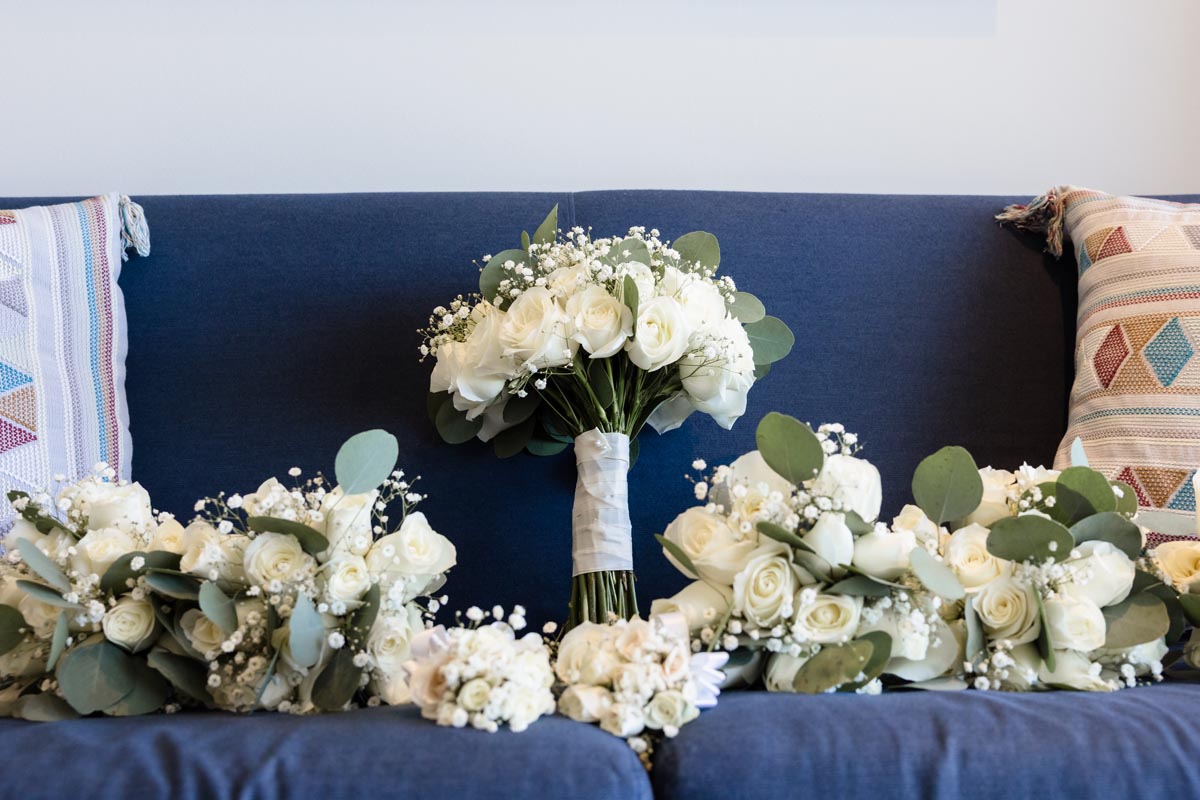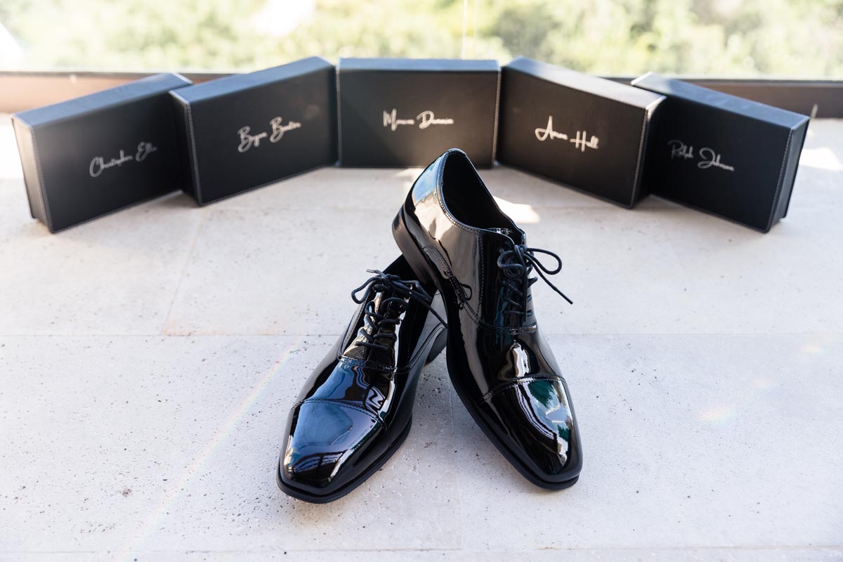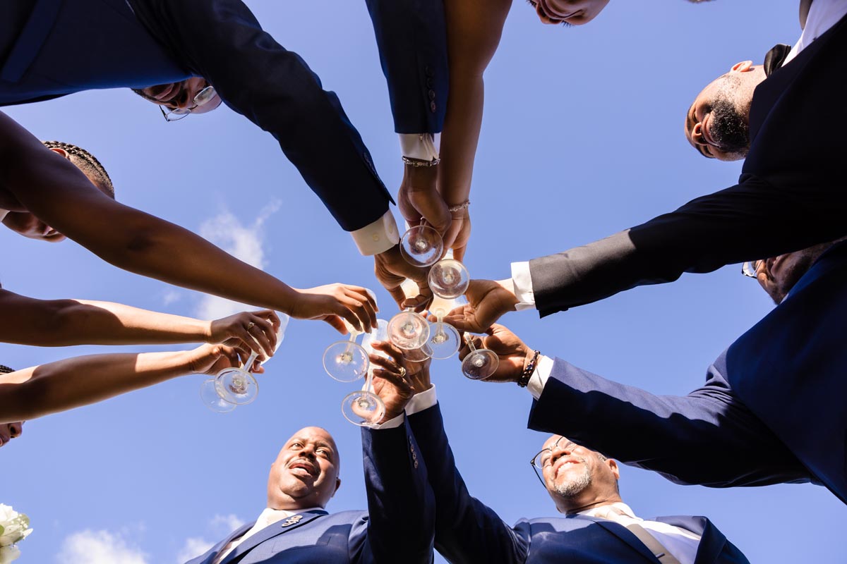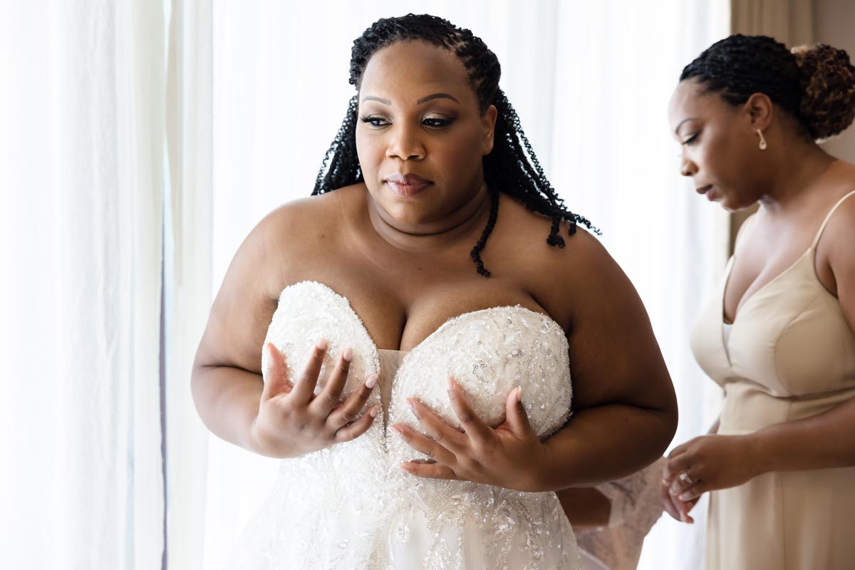 Wedding couple kiss after an emotional first look
