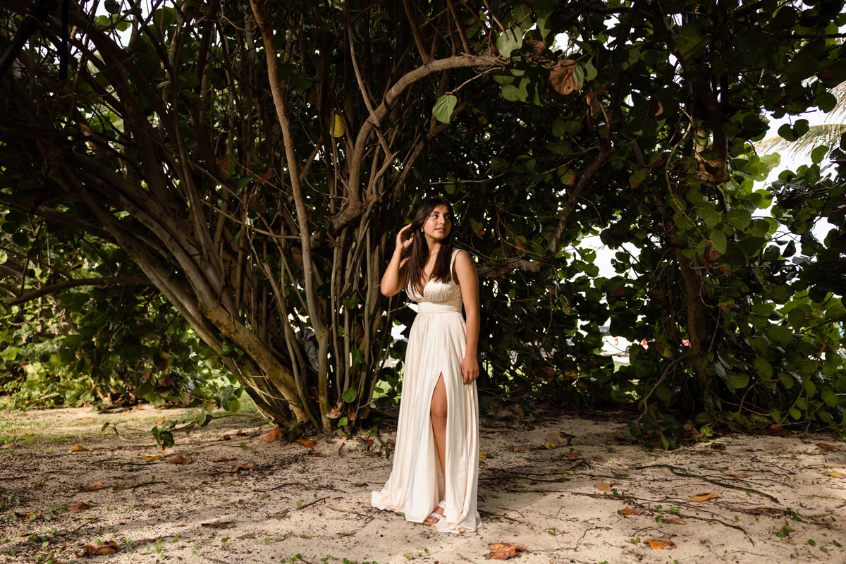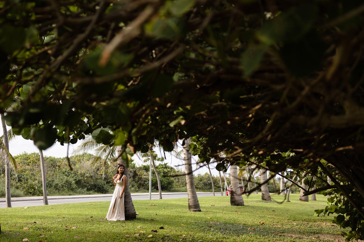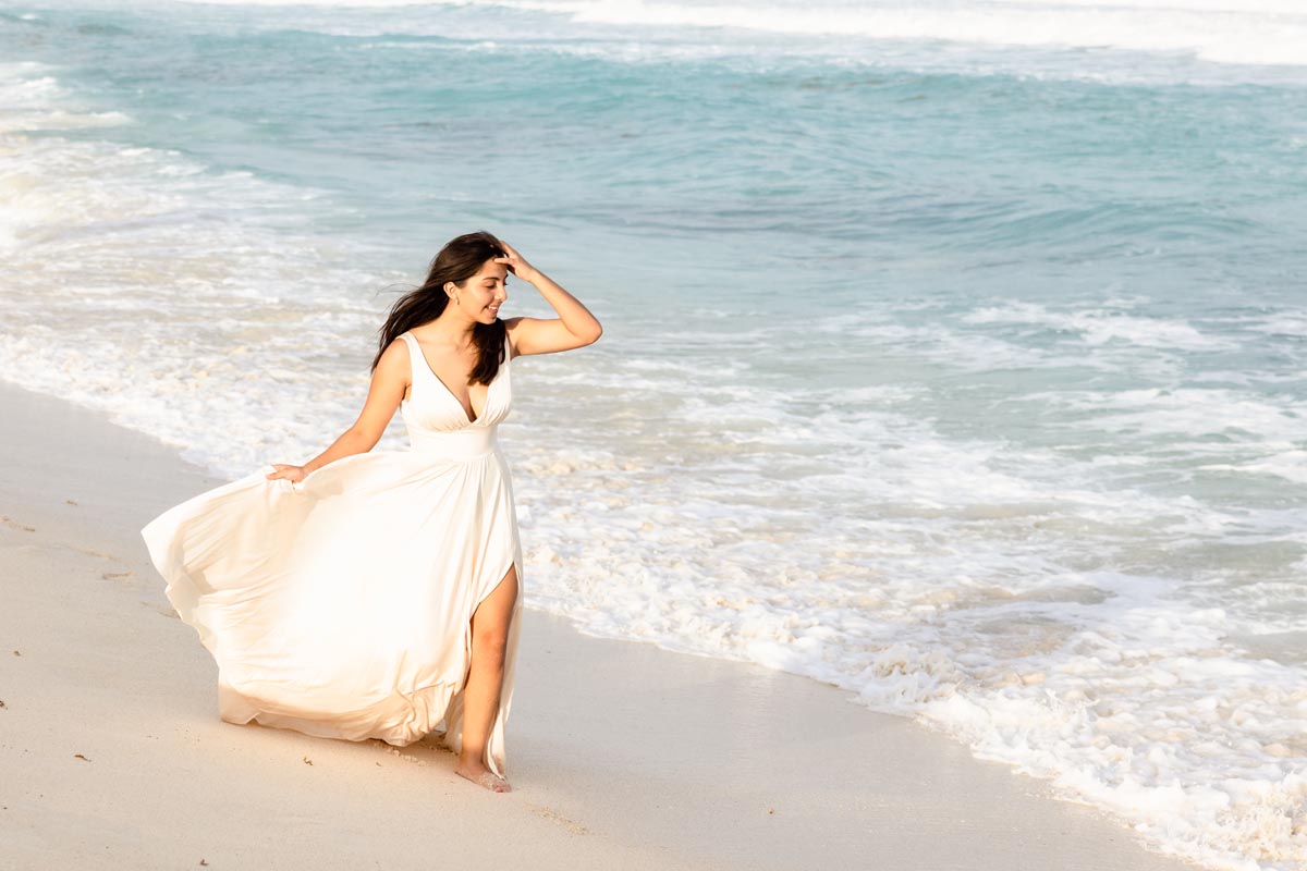 We captured playful photos, showcasing her flowing dress twirling on the world-famous beach and strolling with her family in jungle settings, freeze-framing timeless images.