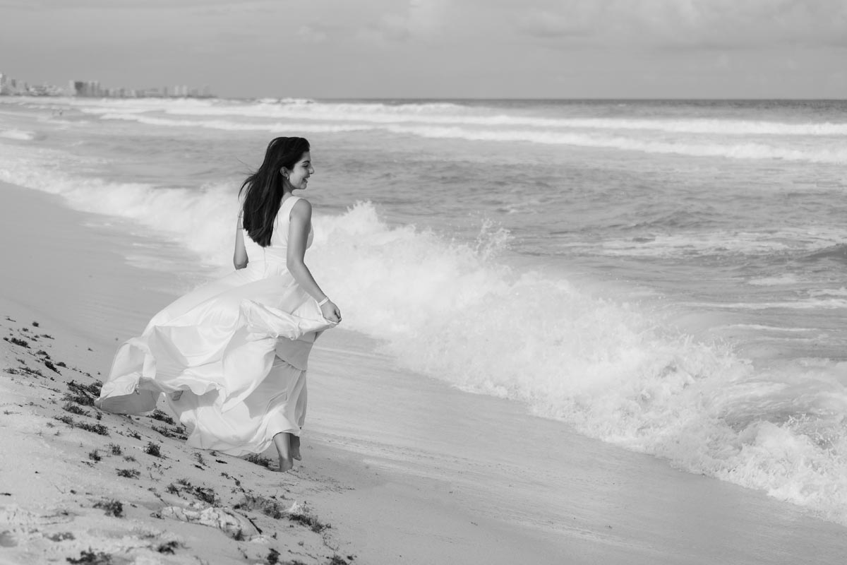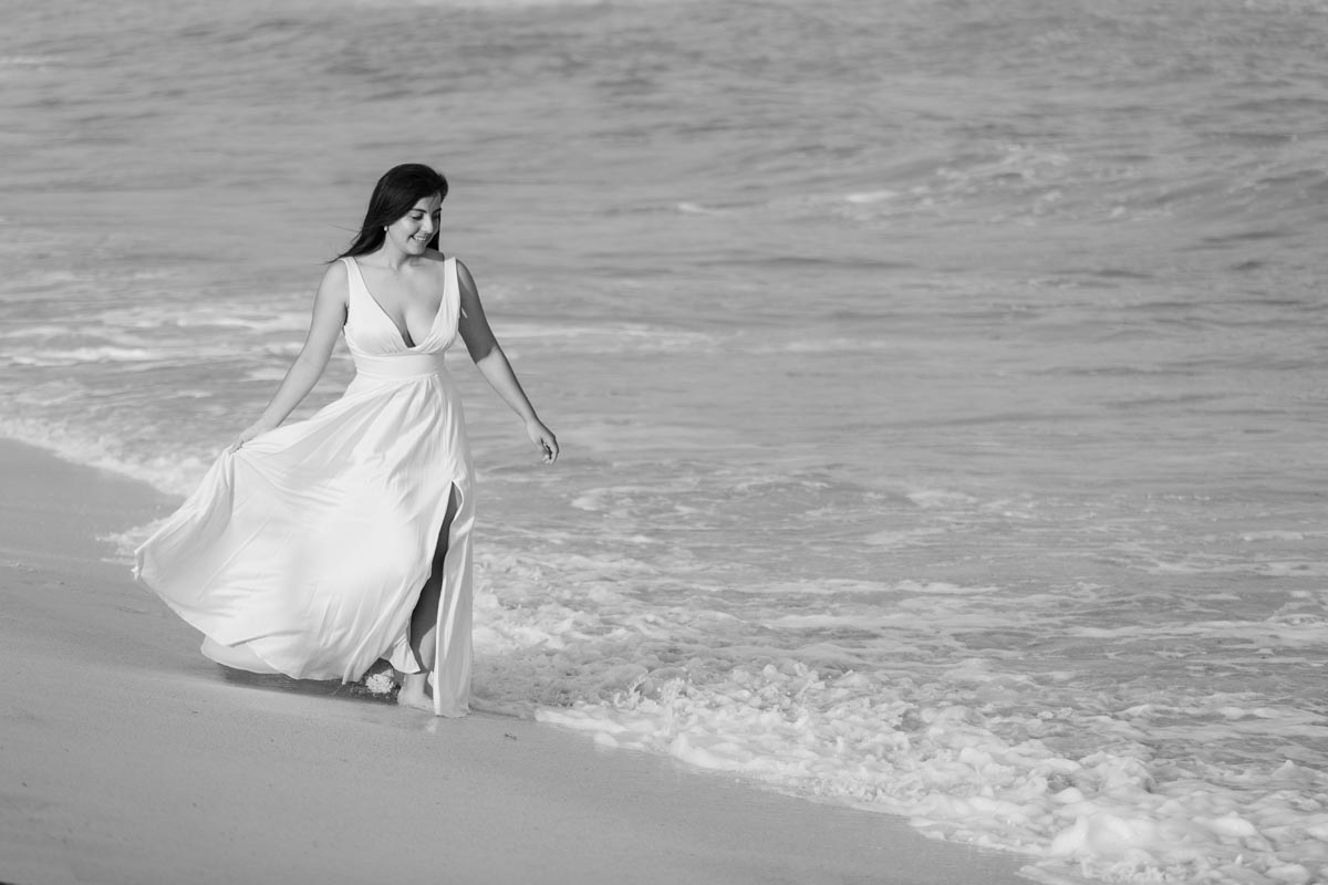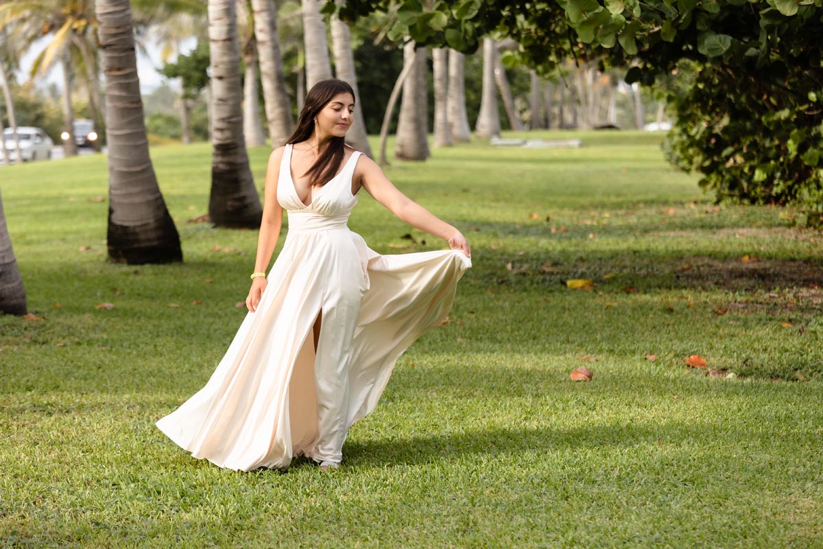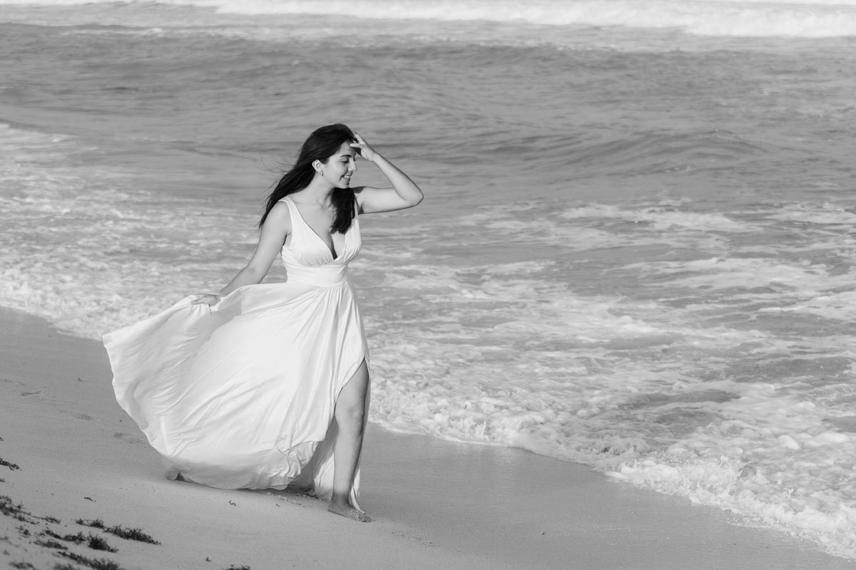 We captured playful photos, showcasing her flowing dress twirling on the world-famous beach and strolling with her family in jungle settings, freeze-framing timeless images.
