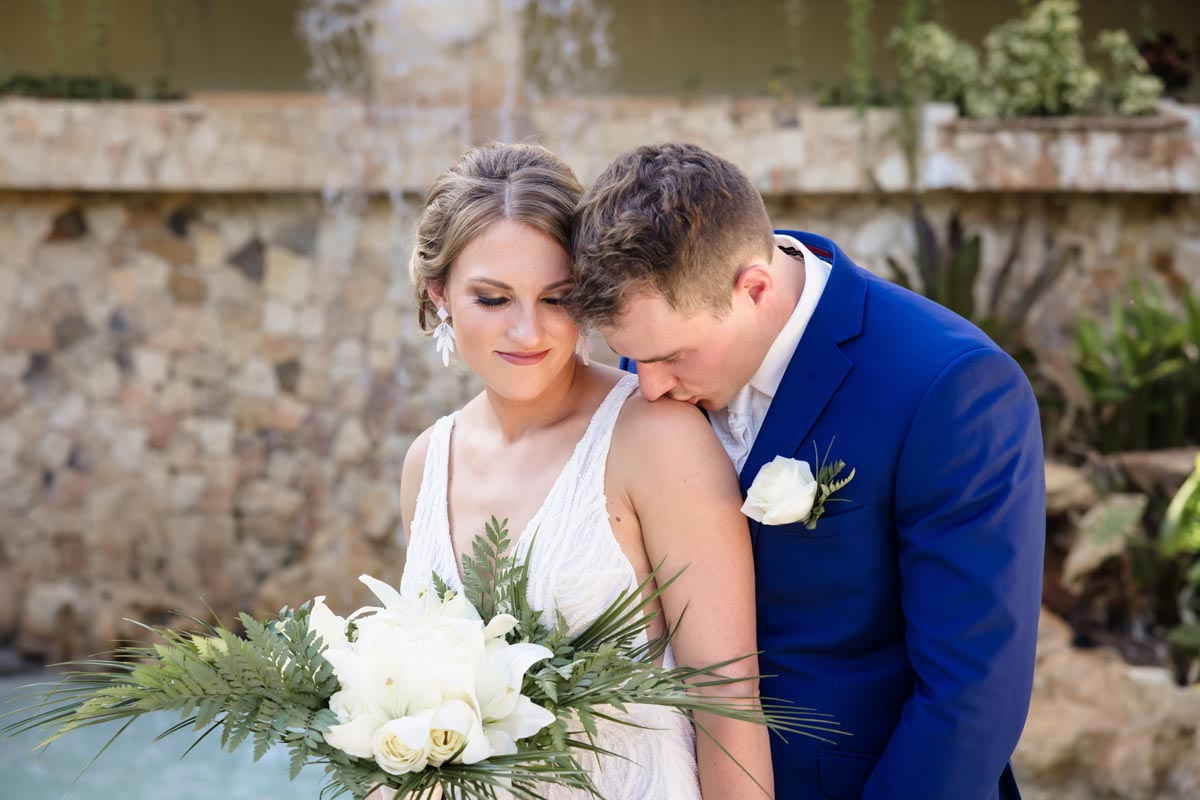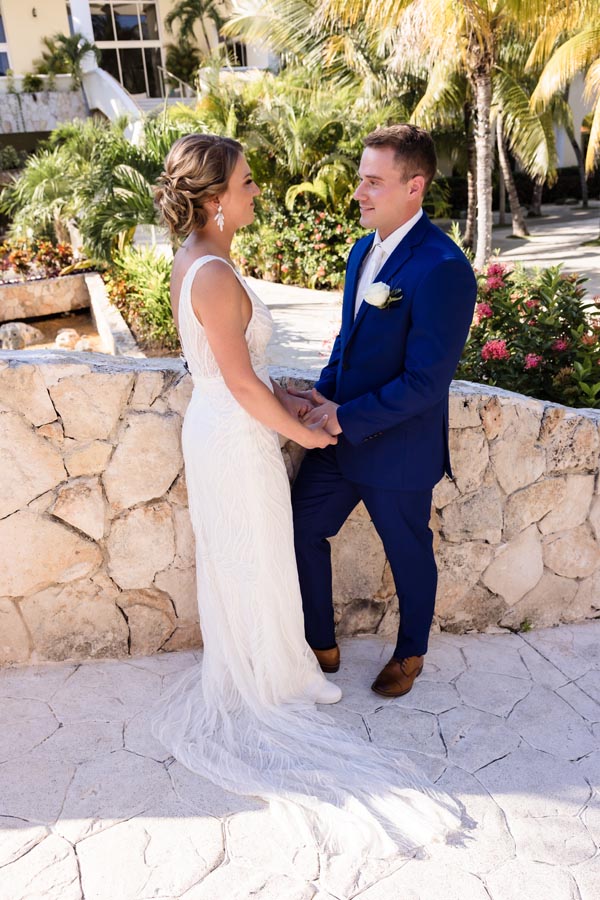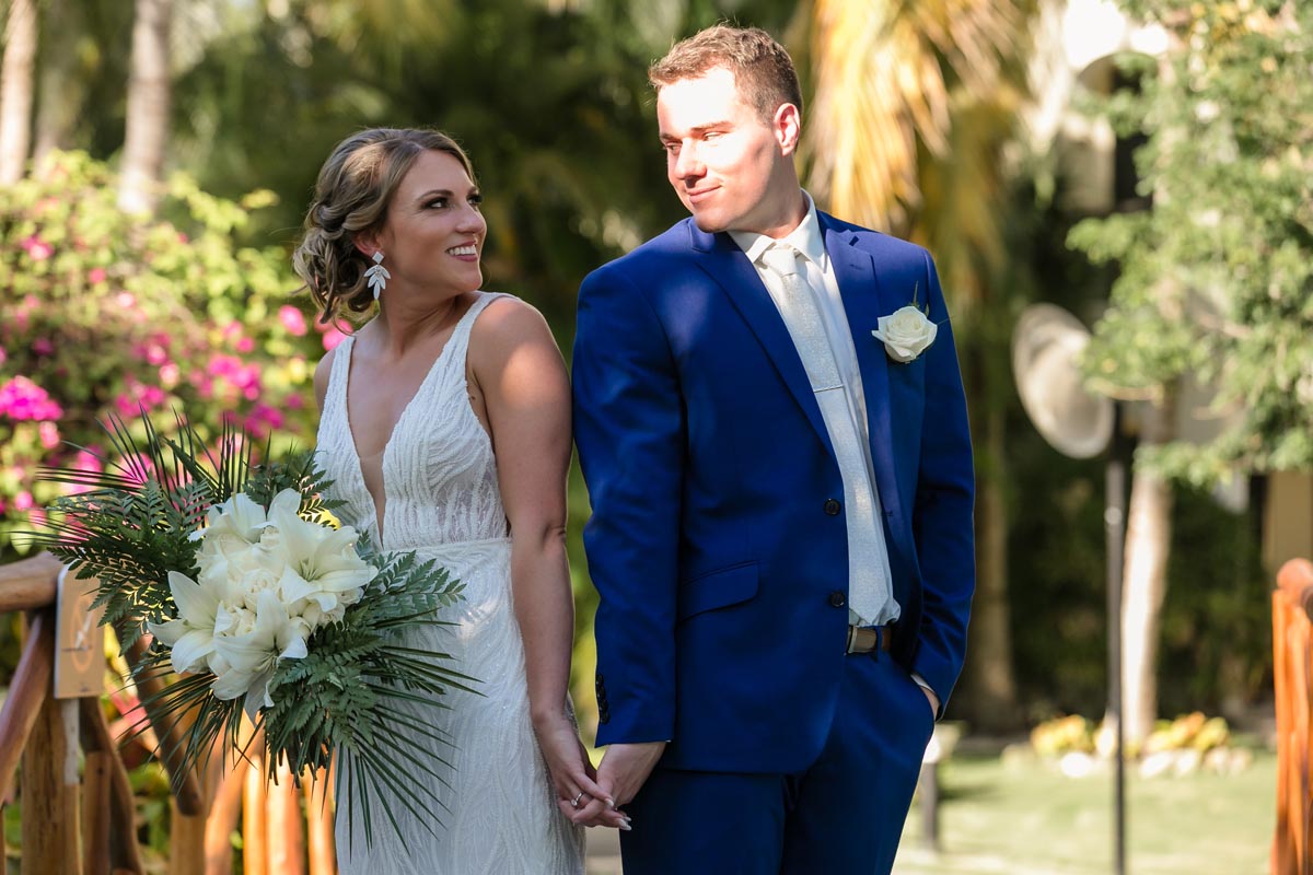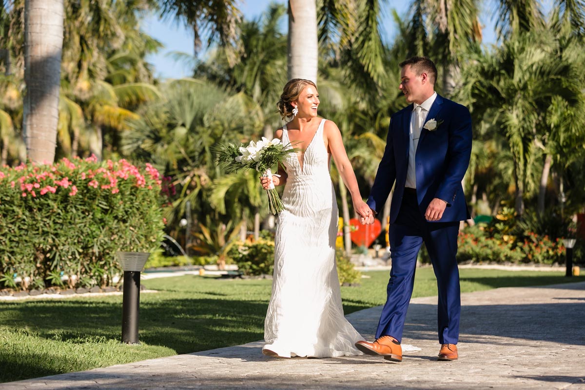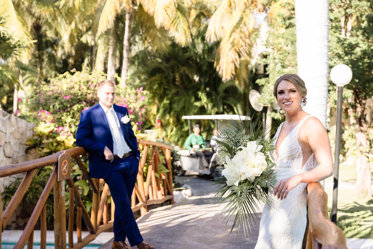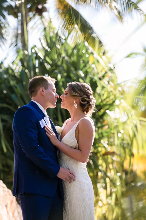After the ceremony, we explored the resort in a newlywed session that captured the romance of the moment. Palm trees, ocean views, and golden sunset light created the perfect backdrop as Andrea and John soaked in their first moments as newlyweds.