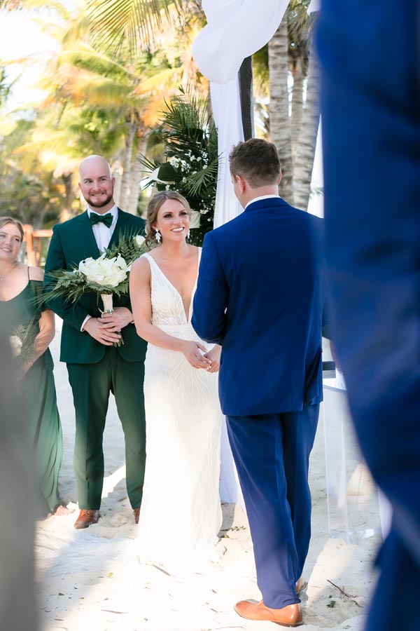 Andrea and John exchanged vows surrounded by tropical beauty and the people closest to them. Their ceremony was emotional and genuine, filled with loving glances, laughter, and happy tears. Every detail reflected their connection and the joy of finally saying “I do” in such a stunning place.