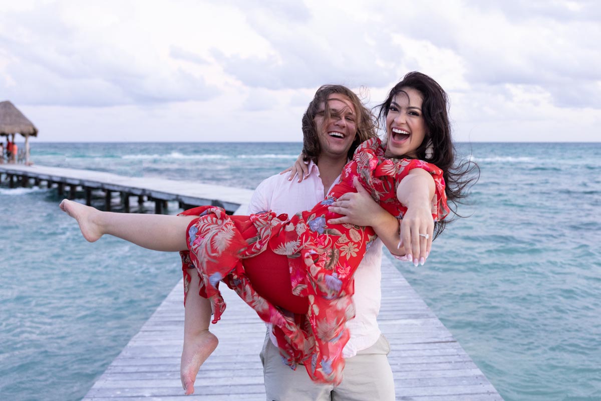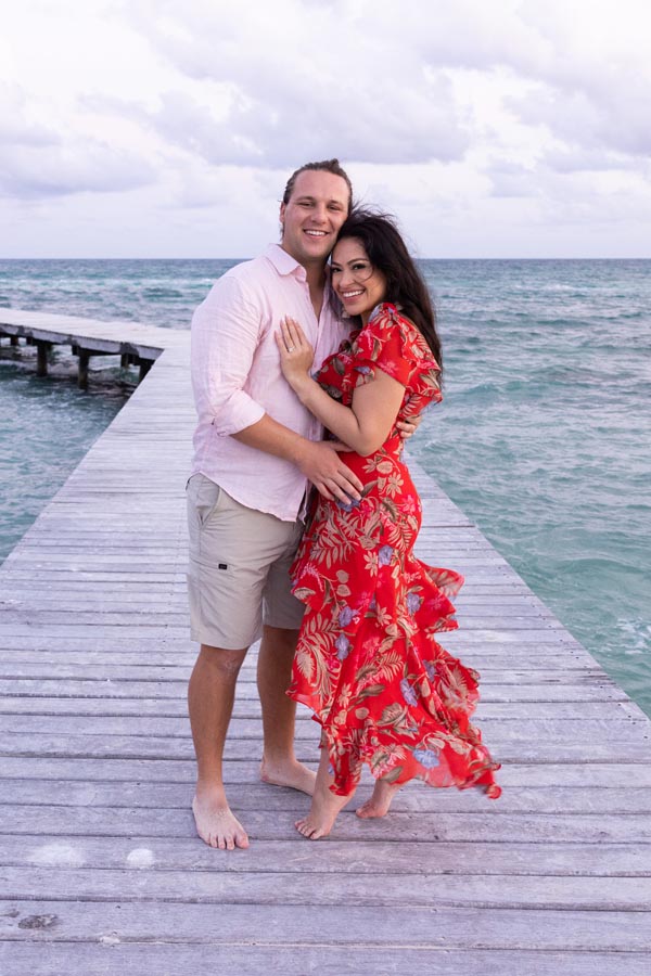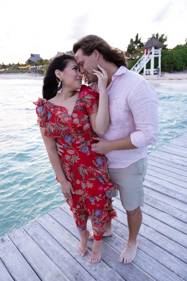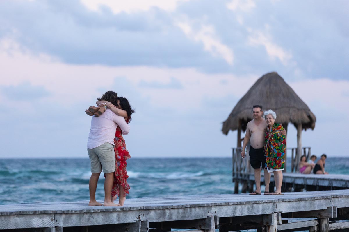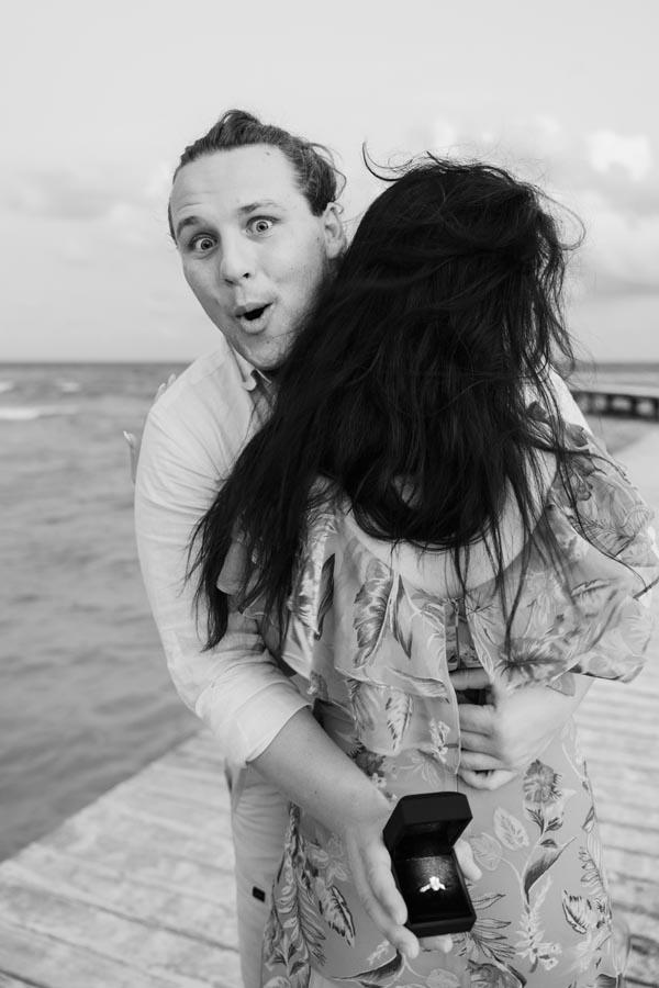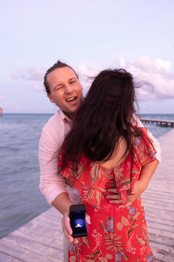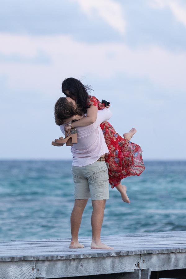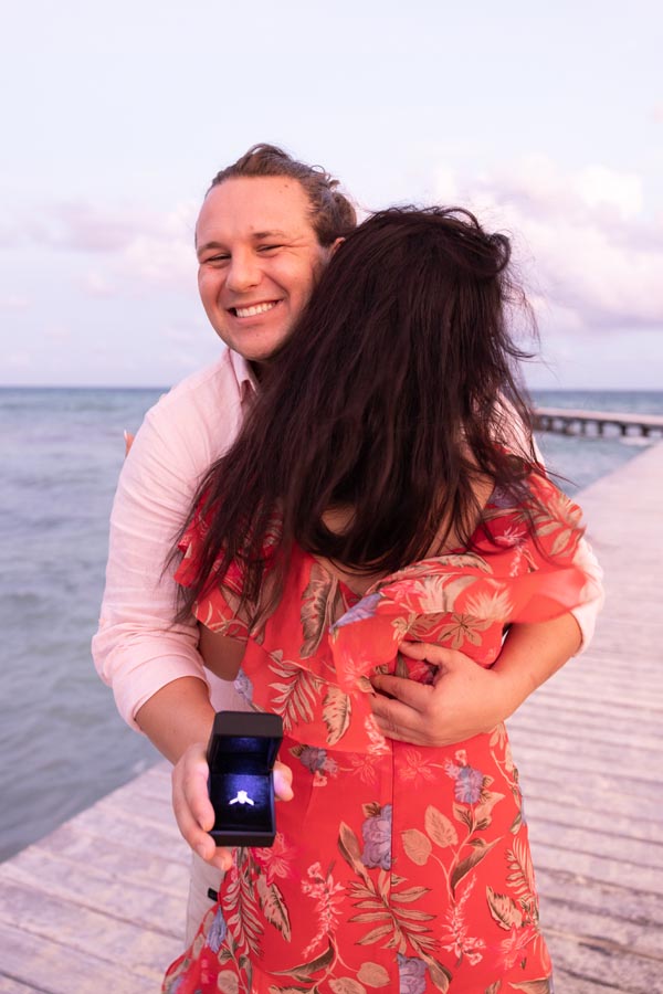 With palm trees swaying and the Riviera Maya glowing around them, Austin dropped to one knee and asked Rosa to marry him. Rosa’s reaction was priceless. Exclaiming an emphatic “yes” she jumped into his arms, with a squeezing hug that said it all.