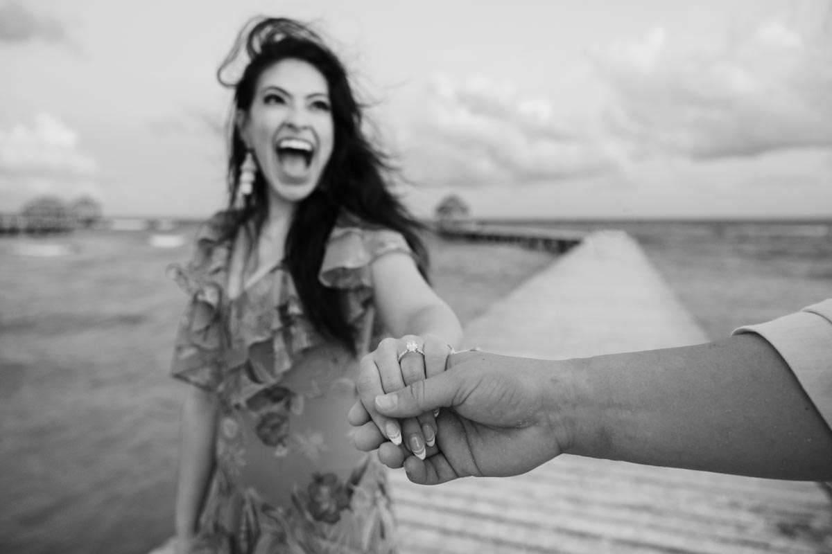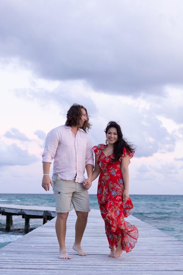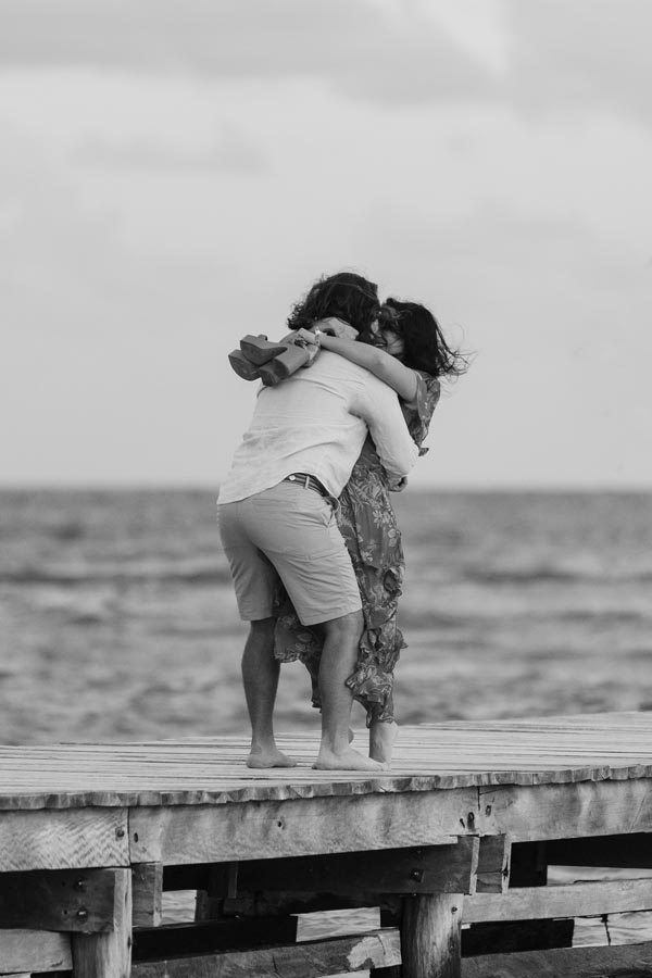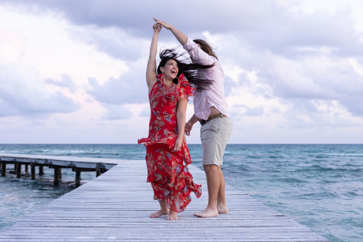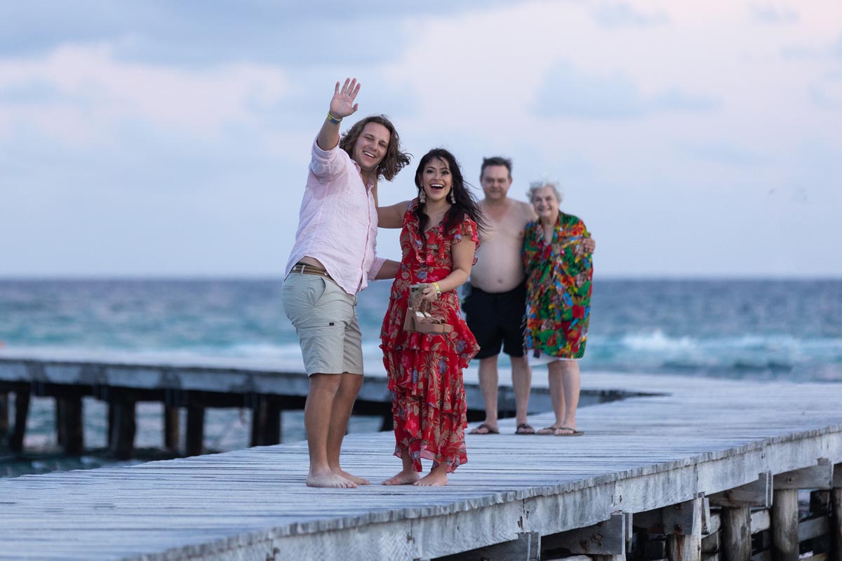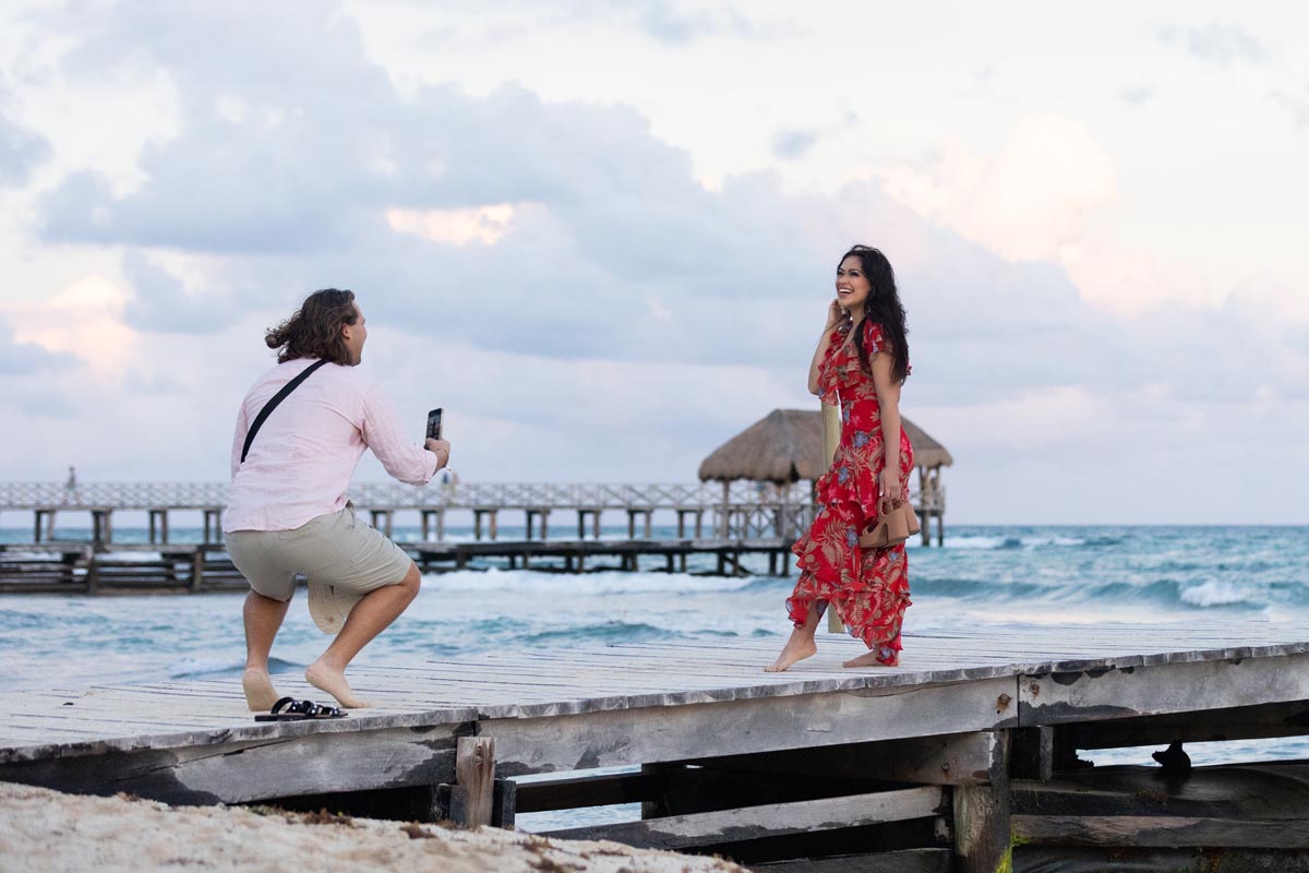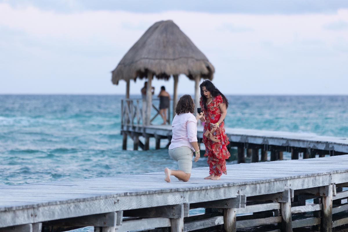 With palm trees swaying and the Riviera Maya glowing around them, Austin dropped to one knee and asked Rosa to marry him. Rosa’s reaction was priceless. Exclaiming an emphatic “yes” she jumped into his arms, with a squeezing hug that said it all.
