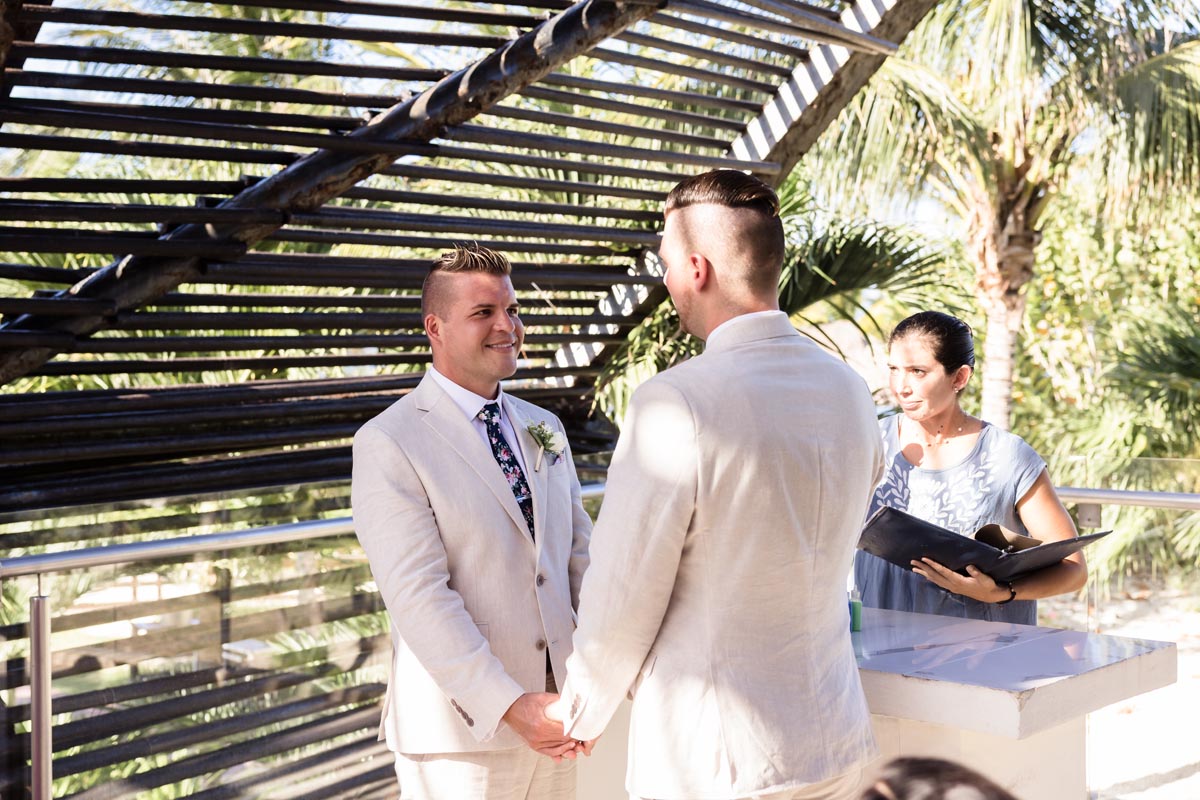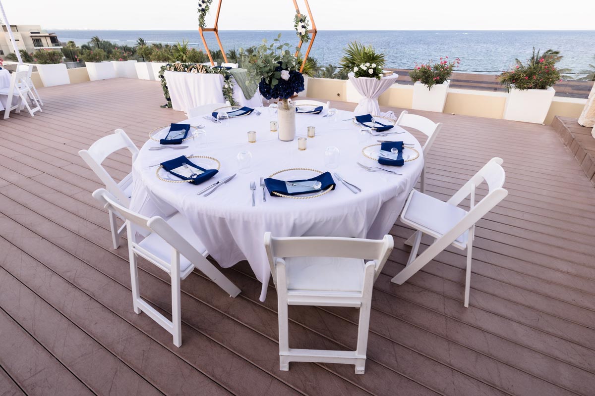 Their ceremony on Royalton’s signature deck under the reed arch, was full of laughter, sweet glances, and happy cheers from family and friends. When they said “I do,” the energy was pure happiness.