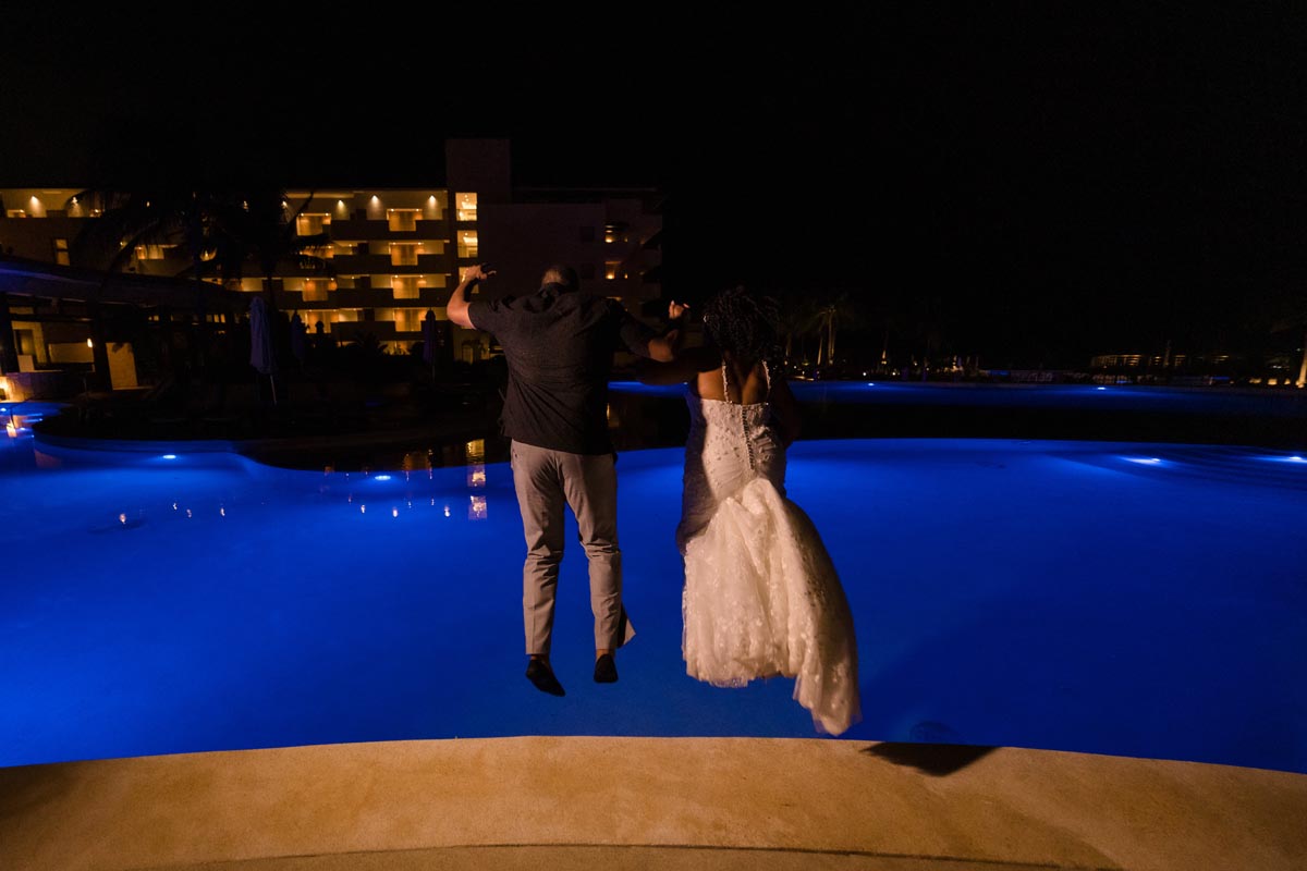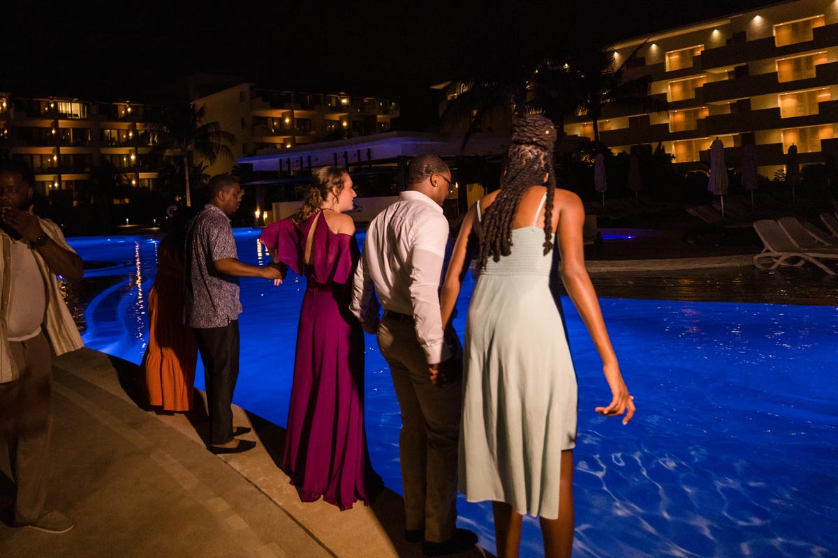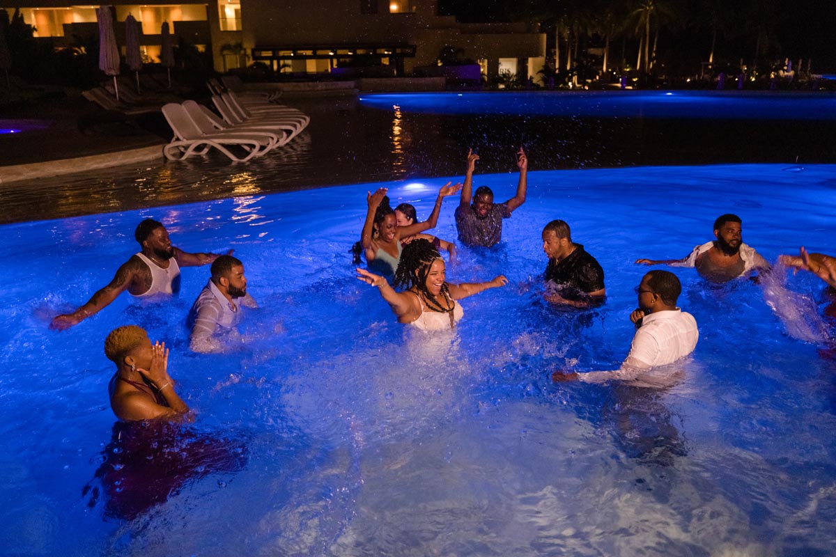The evening brought a vibrant reception under the stars, filled with delicious cuisine and flowing beverages, rocking dance moves, roasting/toasting speeches, and a culmination of jumping into the pool with wild abandon. Their wedding was a beautiful reminder that the best destination weddings are about connection, joy, having fun and making lifelong memories to cherish for generations.