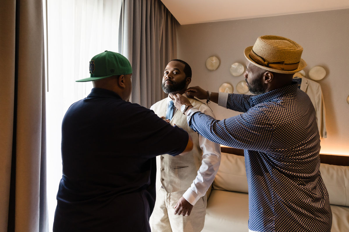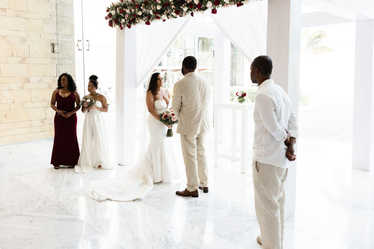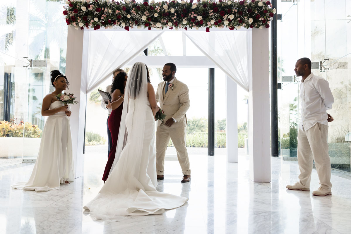 The day began with calm excitement as Lindsey and Chauncey prepared for their ceremony surrounded by their closest people. The bright Caribbean sky and warm breeze set the tone for a relaxed, happy atmosphere. Every detail reflected their easygoing personalities, from the soft color palette to the natural beachfront setting.