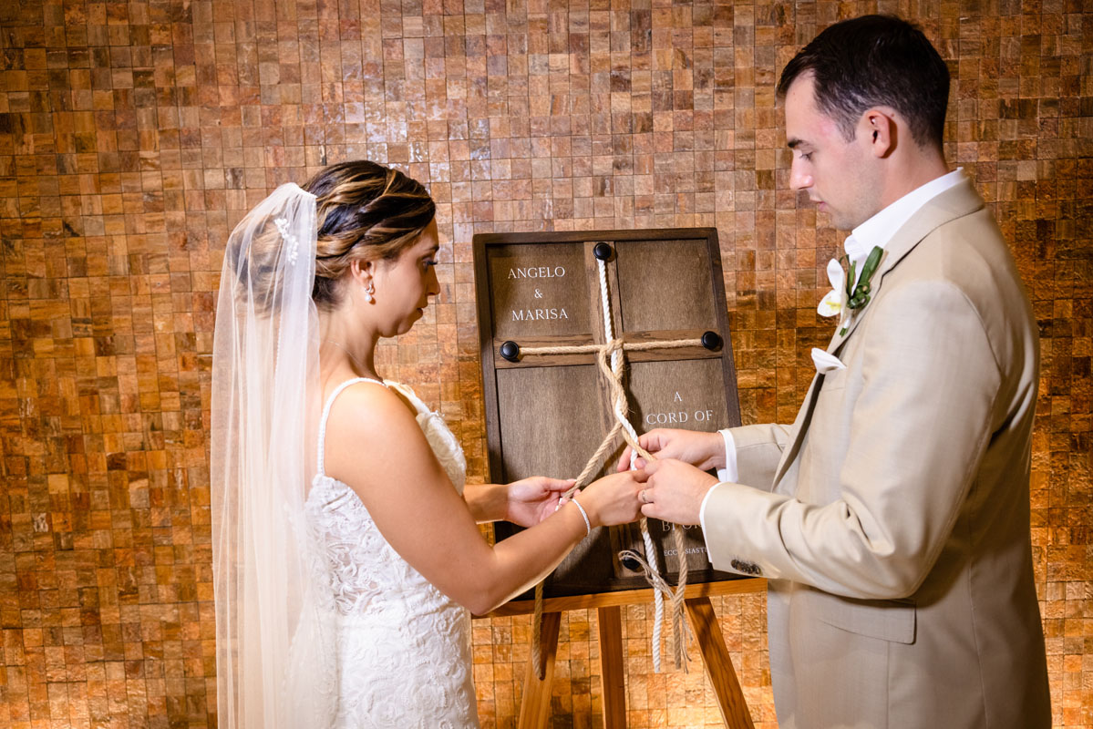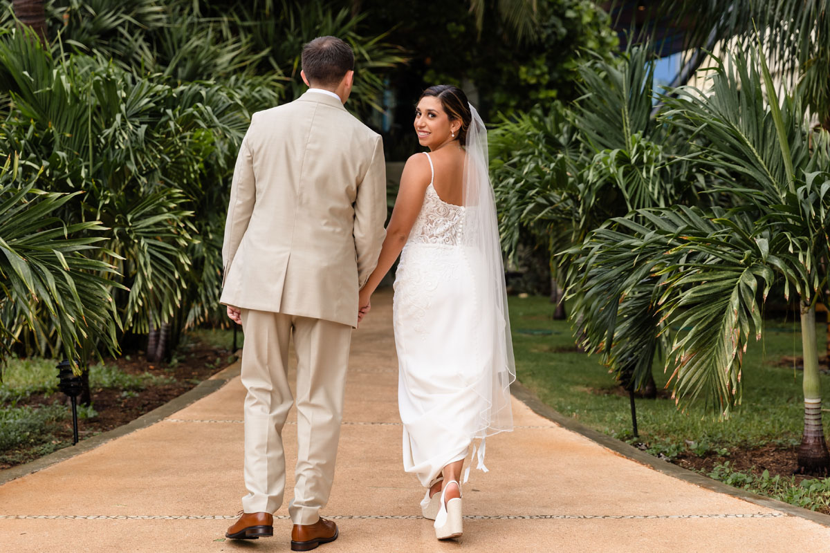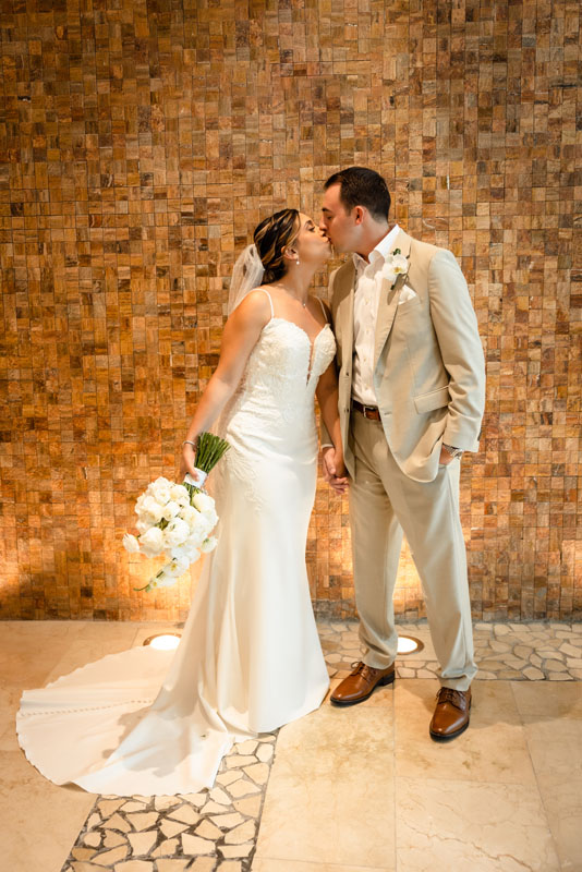 Following the ceremony, we wandered through the resort and down to the shoreline as the sun softened into evening. Marisa and Angelo shared an intimate connection with effortless affection, completely present. The glowing sky and gentle waves wrapped their portraits in a newlywed glow, giving every frame a timeless quality.