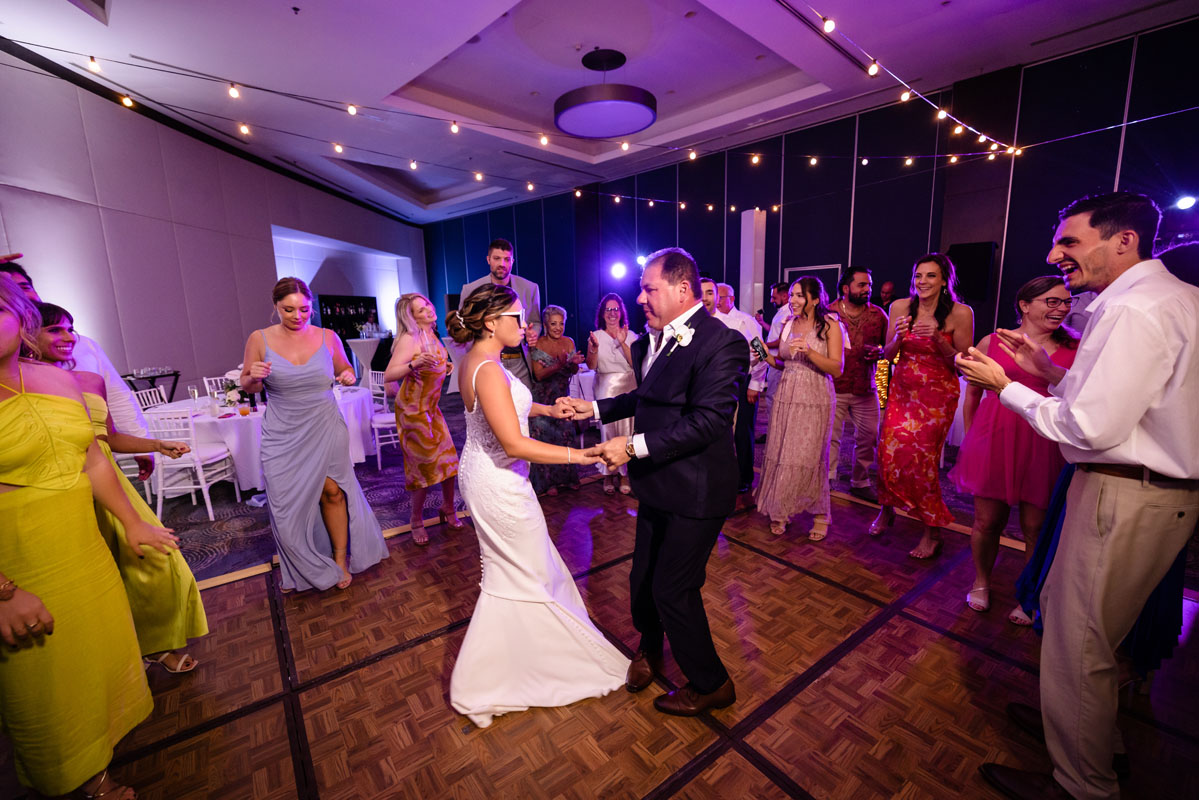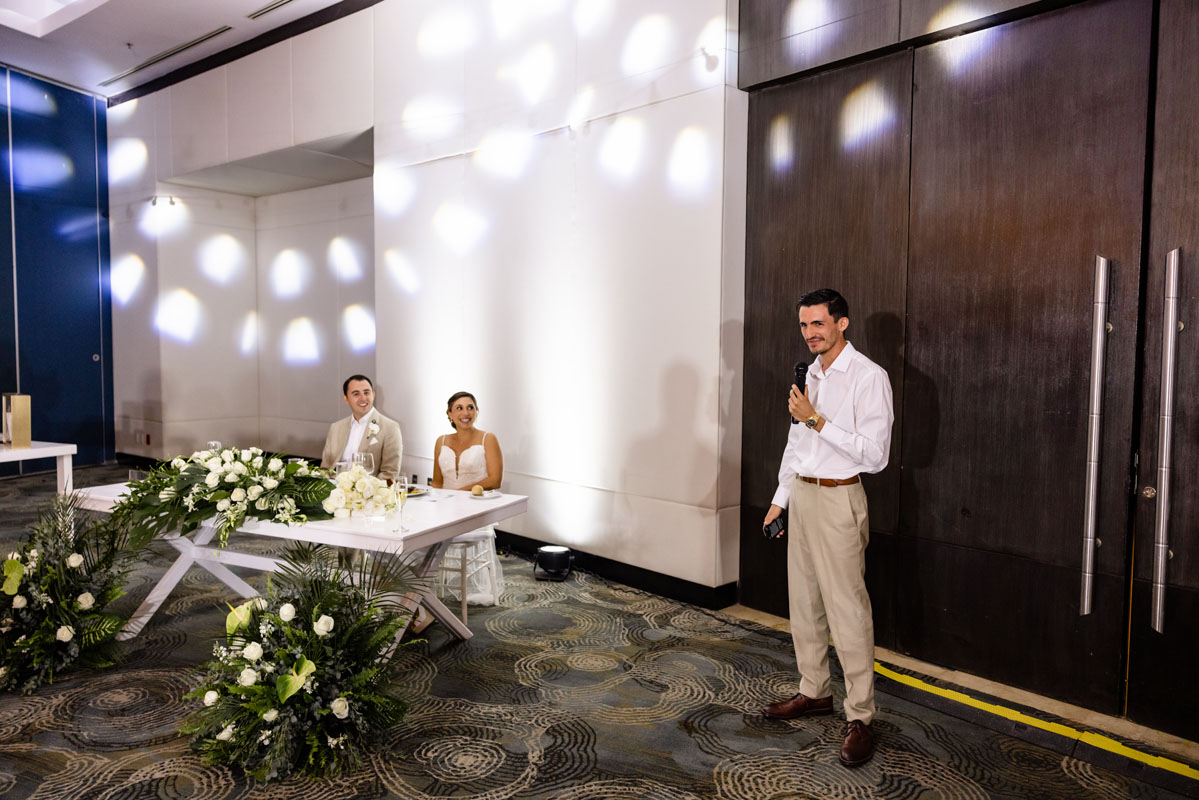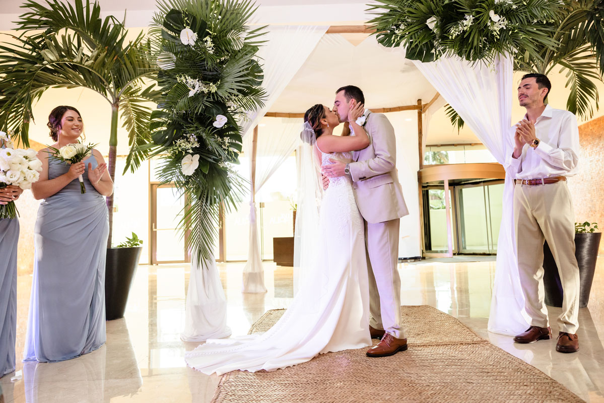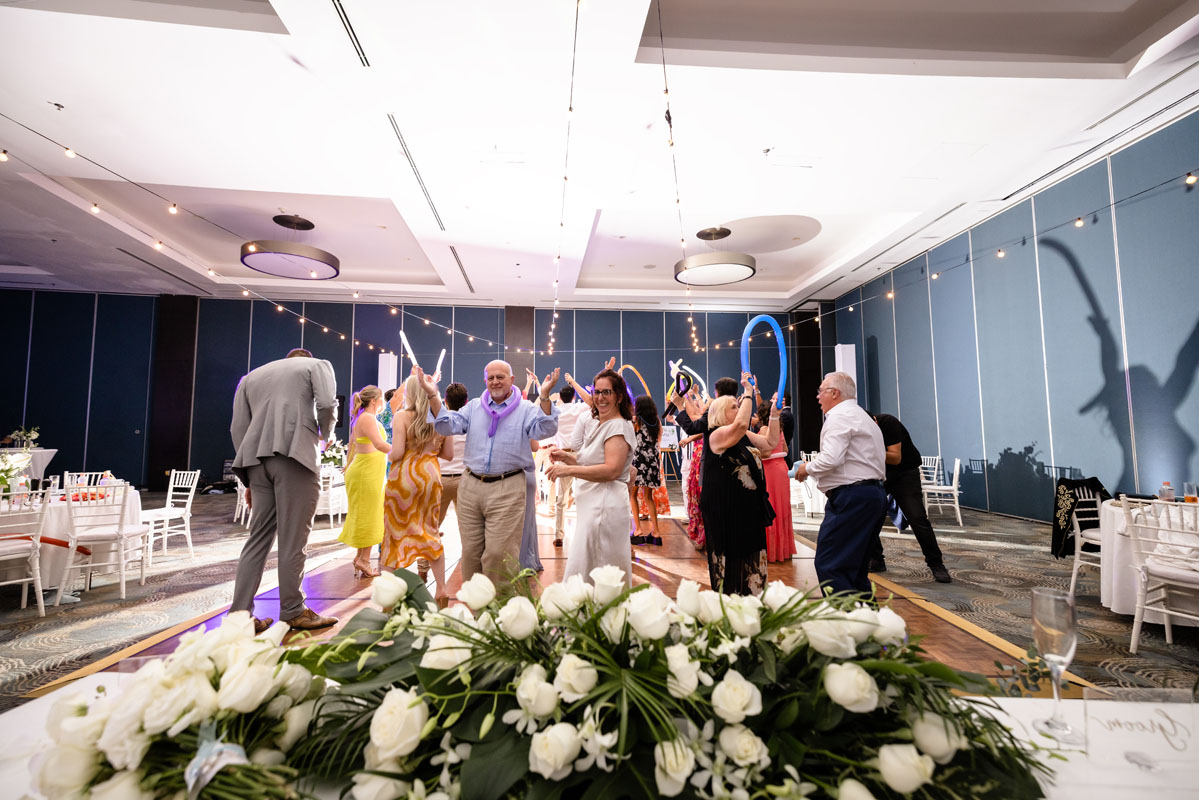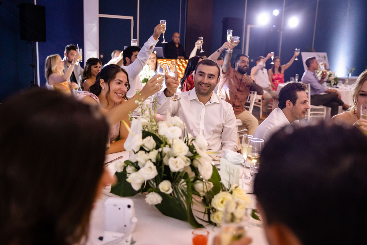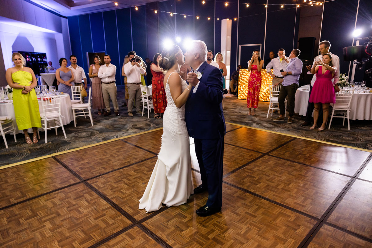 As night arrived, the reception came alive with music, dancing, and joyful energy. Friends and family filled the space with cheers and emotion, celebrating Marisa and Angelo’s start of their new life chapter. The evening flowed smoothly, blending elegance with carefree fun under the Cancun sky, making priceless memories.