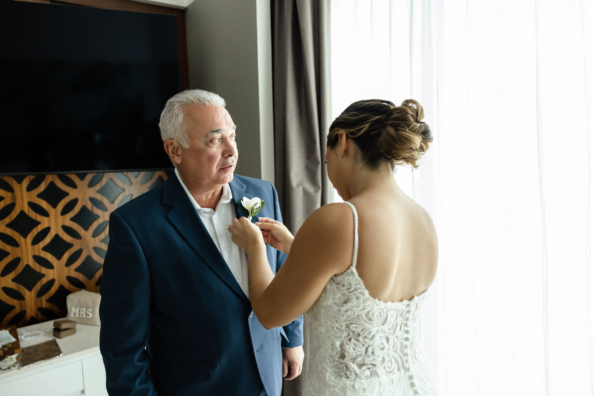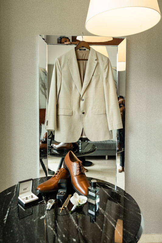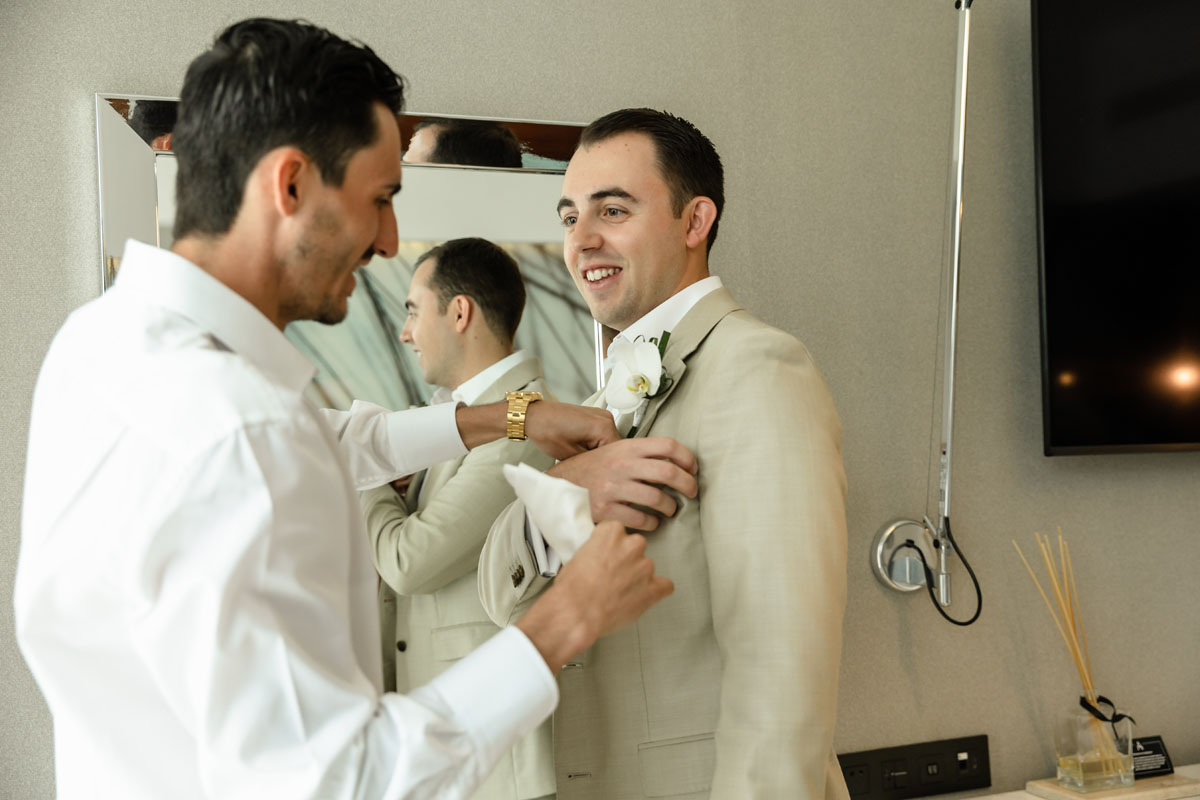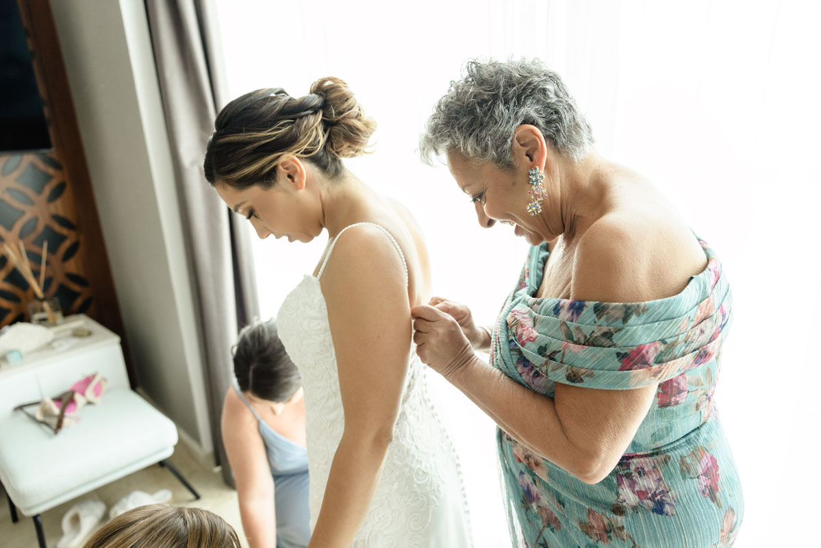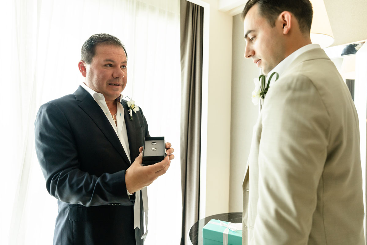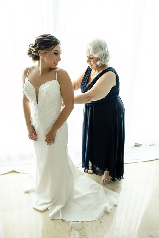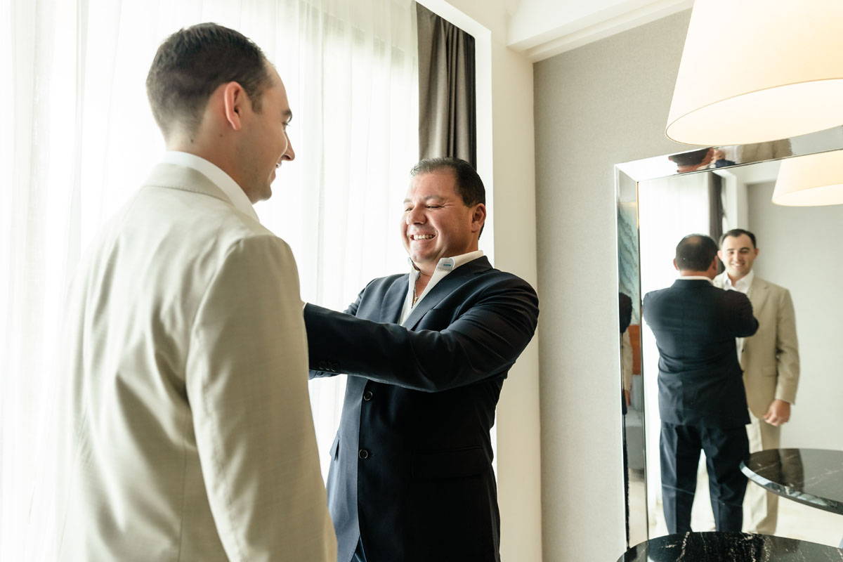 The morning unfolded with calm excitement as Marisa and Angelo got ready surrounded by their favorite people. Live Aqua’s modern spaces and panoramic views created a peaceful atmosphere that carried through the entire day. Excited anticipation filled the air, and every detail reflected their refined, romantic style.