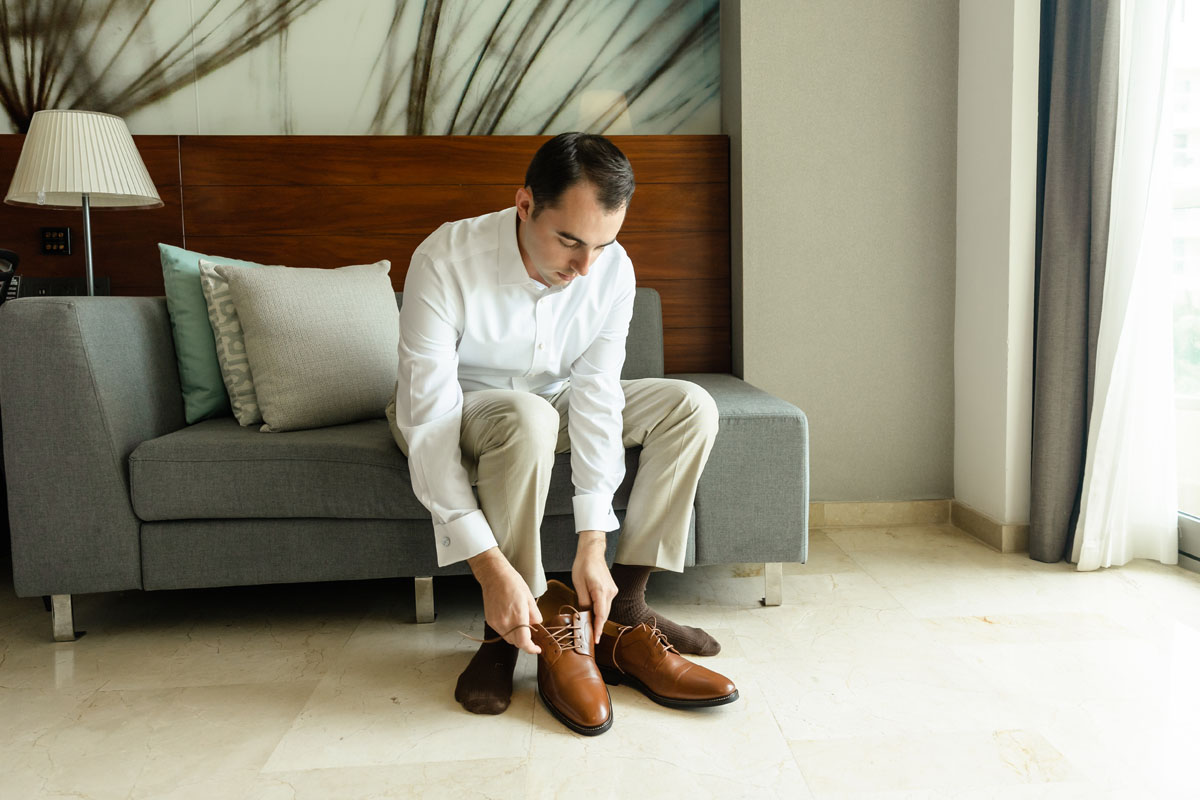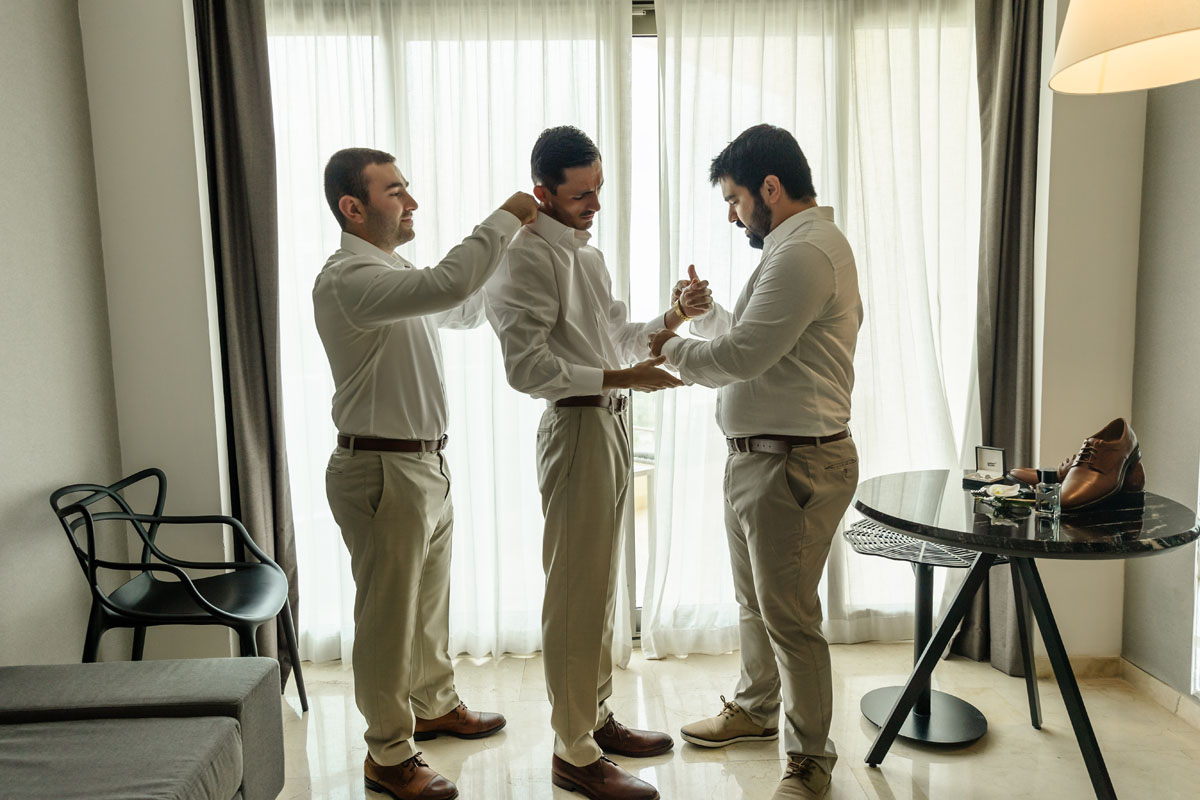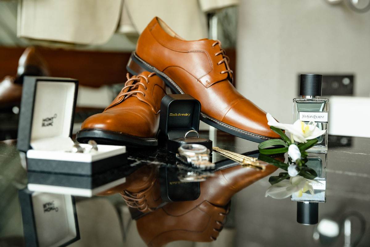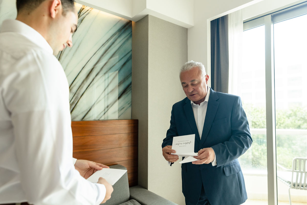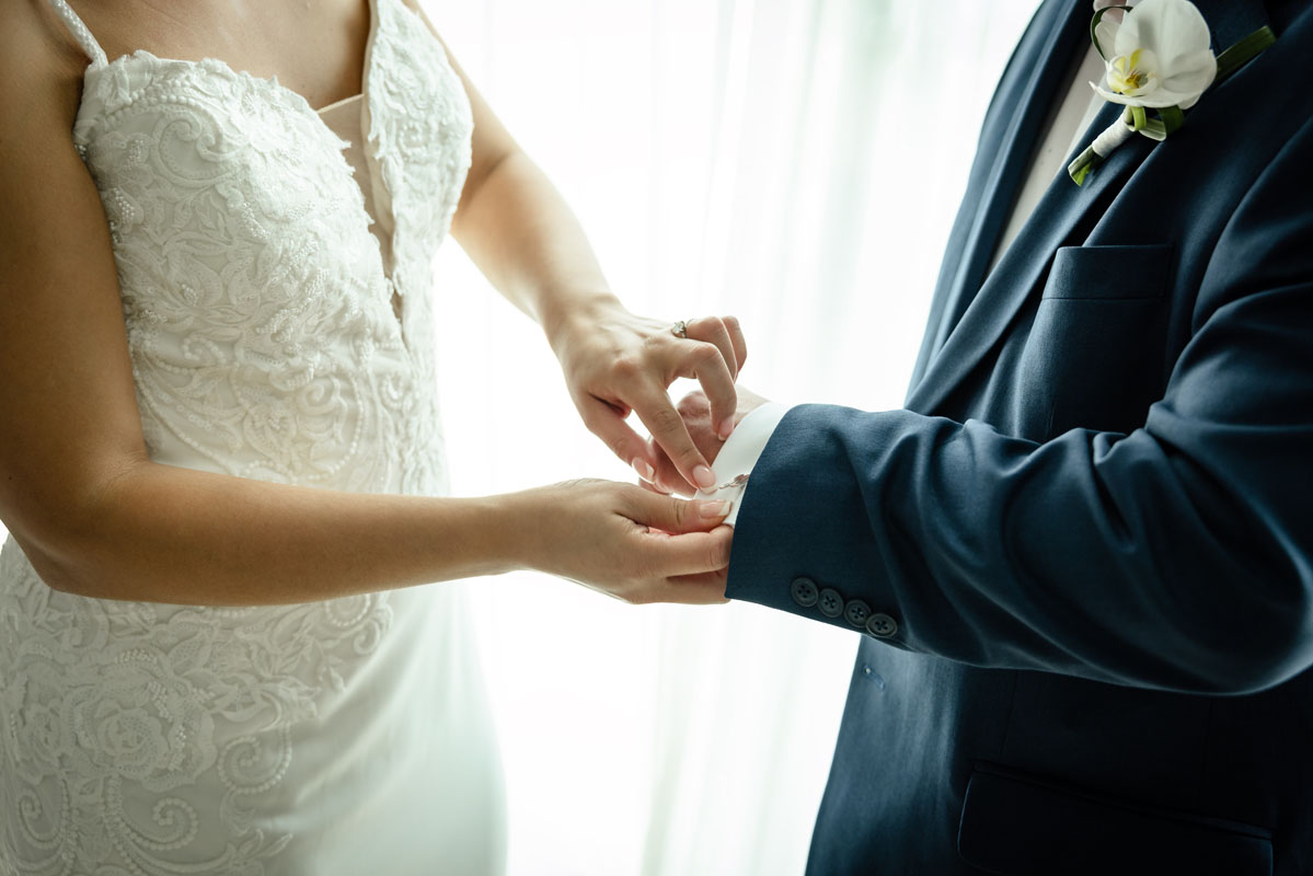The morning unfolded with calm excitement as Marisa and Angelo got ready surrounded by their favorite people. Live Aqua’s modern spaces and panoramic views created a peaceful atmosphere that carried through the entire day. Excited anticipation filled the air, and every detail reflected their refined, romantic style.