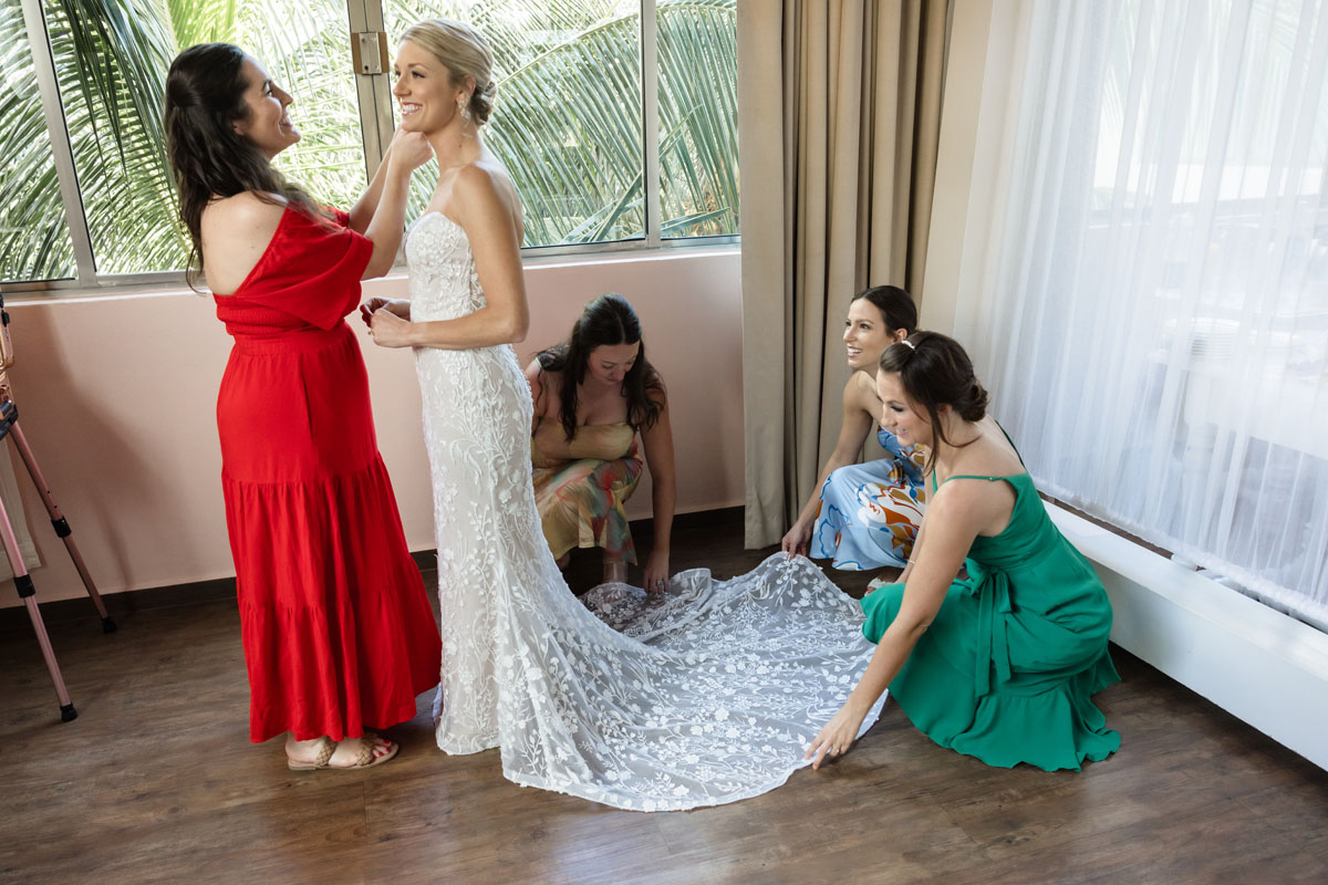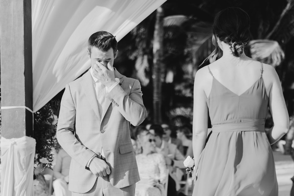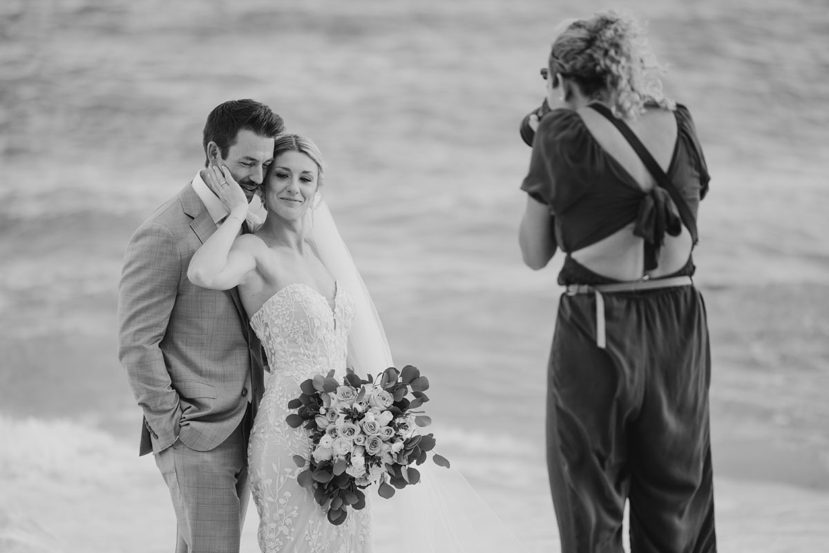 When Adam saw Alisha walk toward him on her Dad’s arm he was overcome with happiness, and wiped his eyes. It set off a chain reaction which had Alisha wiping hers to, and left all the guests misty. Surrounded by their closest family and friends who’d come to support and celebrate with them, they exchanged heartfelt vows as waves rolled gently in the background. It was intimate, emotional, and beautifully personal.