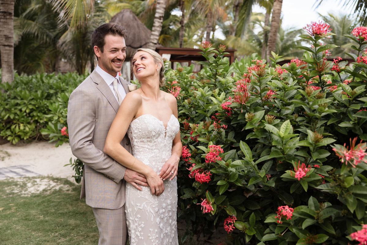 One of the highlights of any El Dorado Royale wedding is the newlywed photo session that radiates with that “just married glow”. Alisha and Adam’s portraits were magical. The soft Riviera Maya ambiance wrapped them in warm light, creating timeless, romantic images along the beach and throughout the resort’s lush pathways.