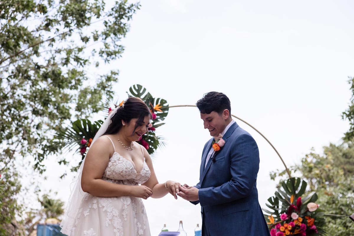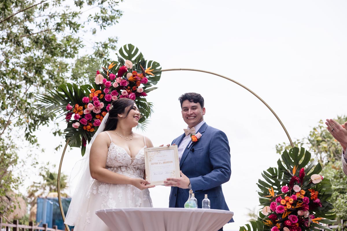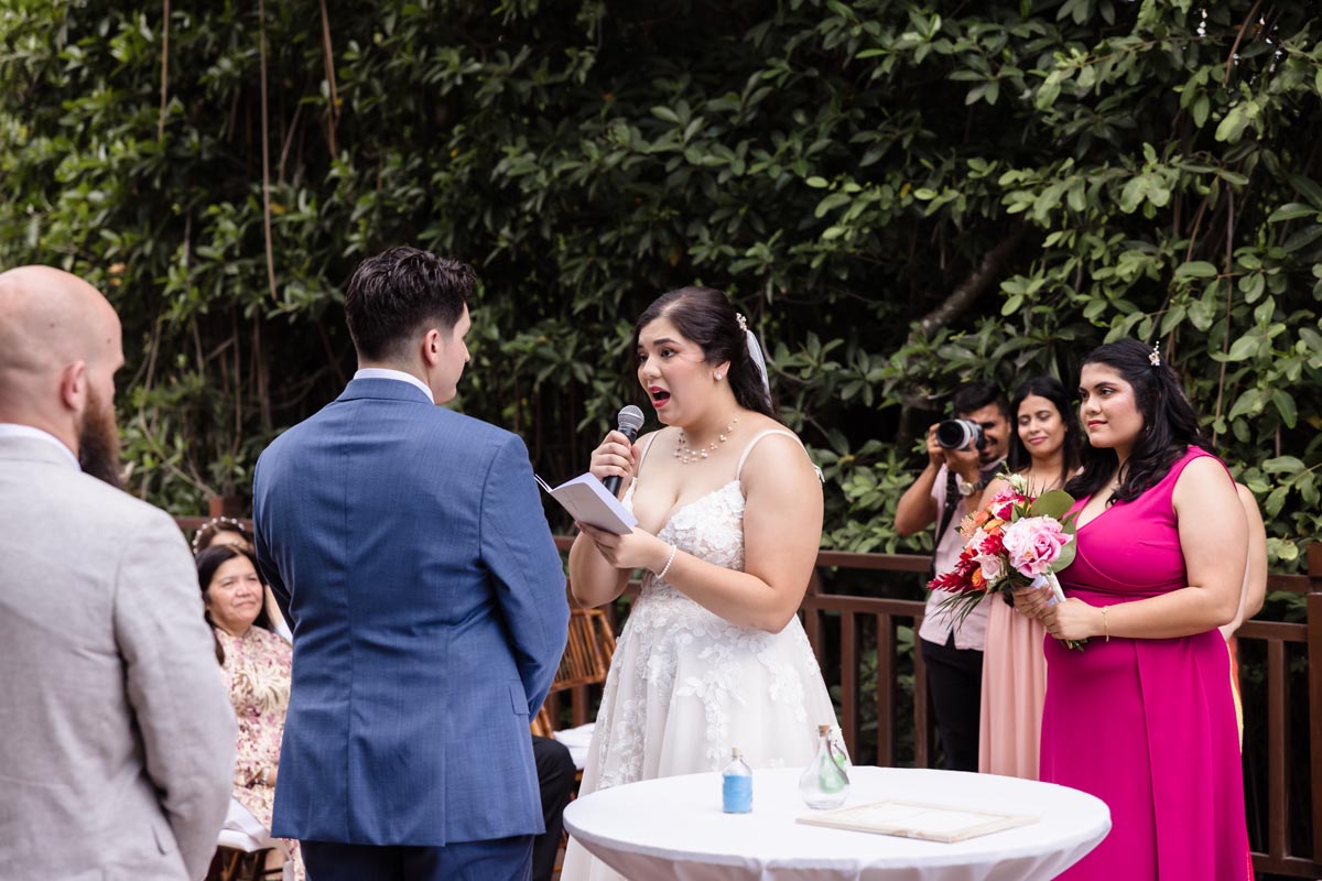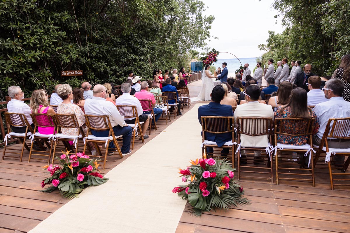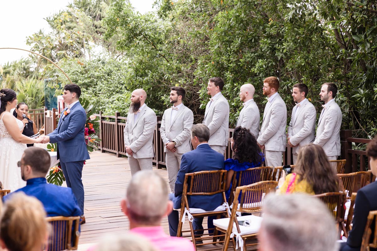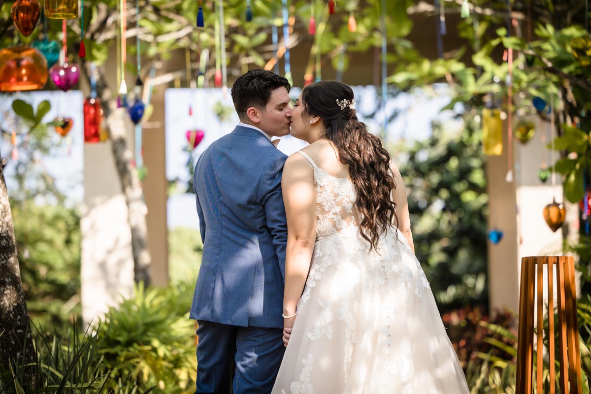 The ceremony was heartfelt and intimate, with the couple exchanging vows surrounded by vibrant tropical beauty and the love and support of the people closest to them.