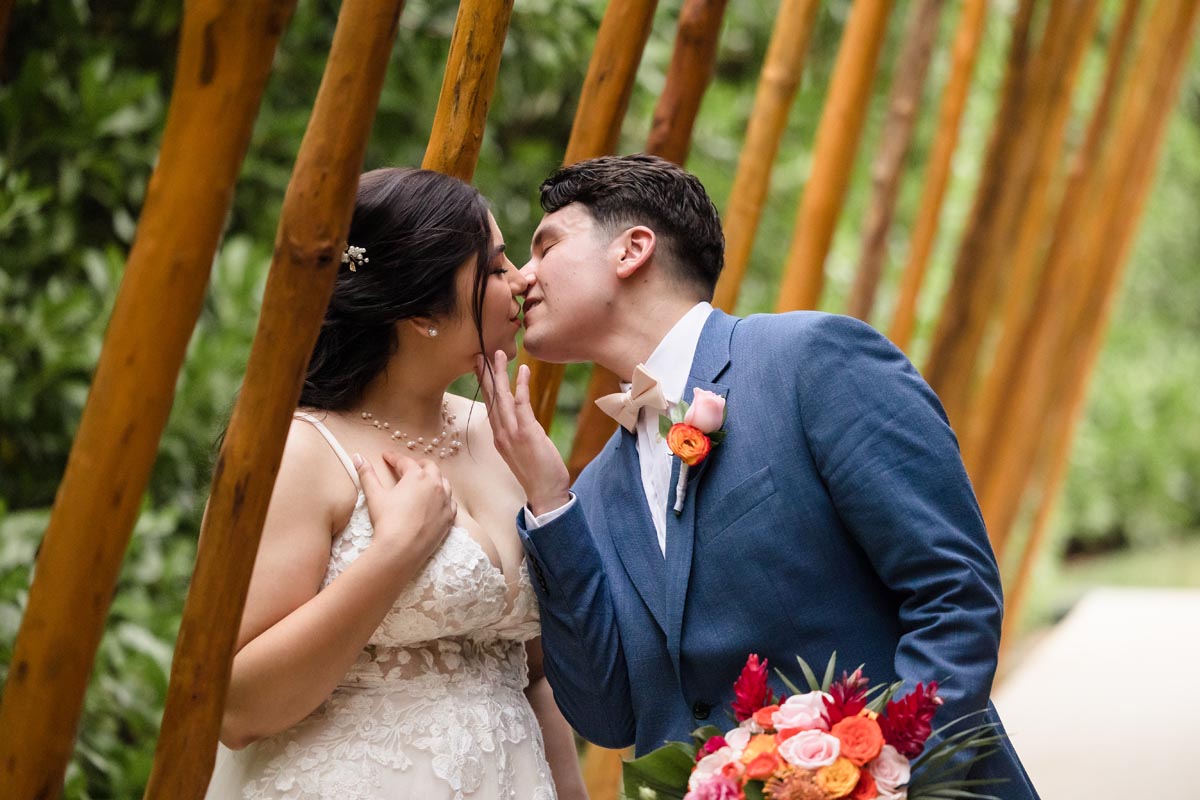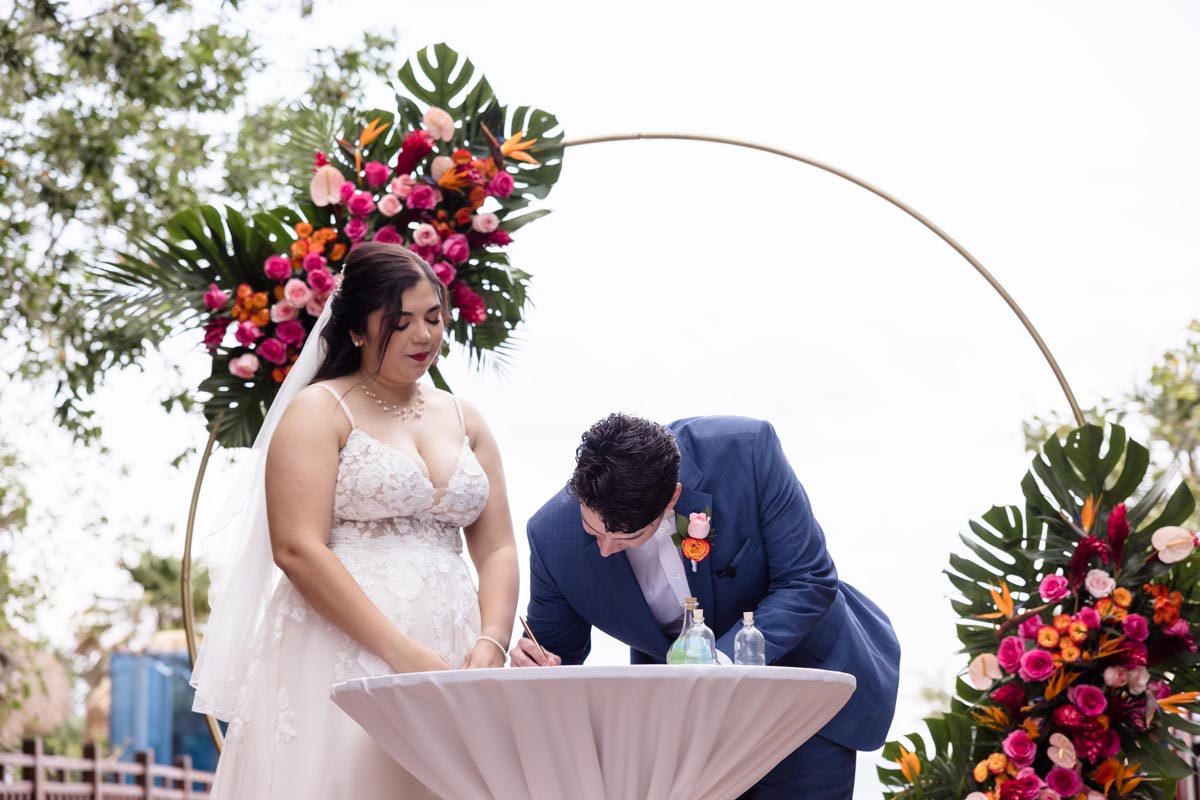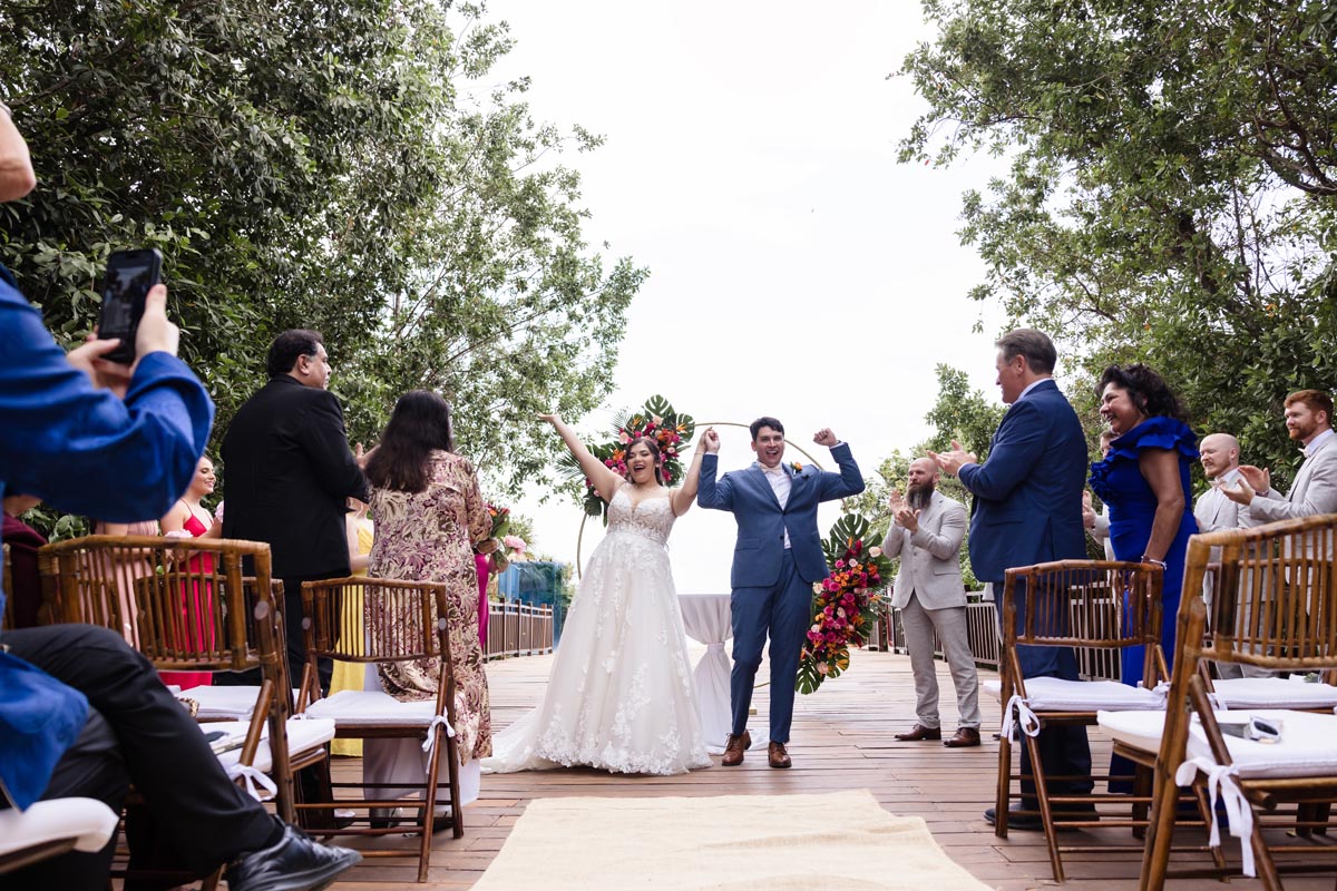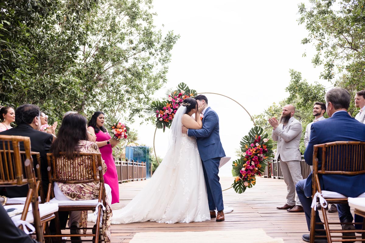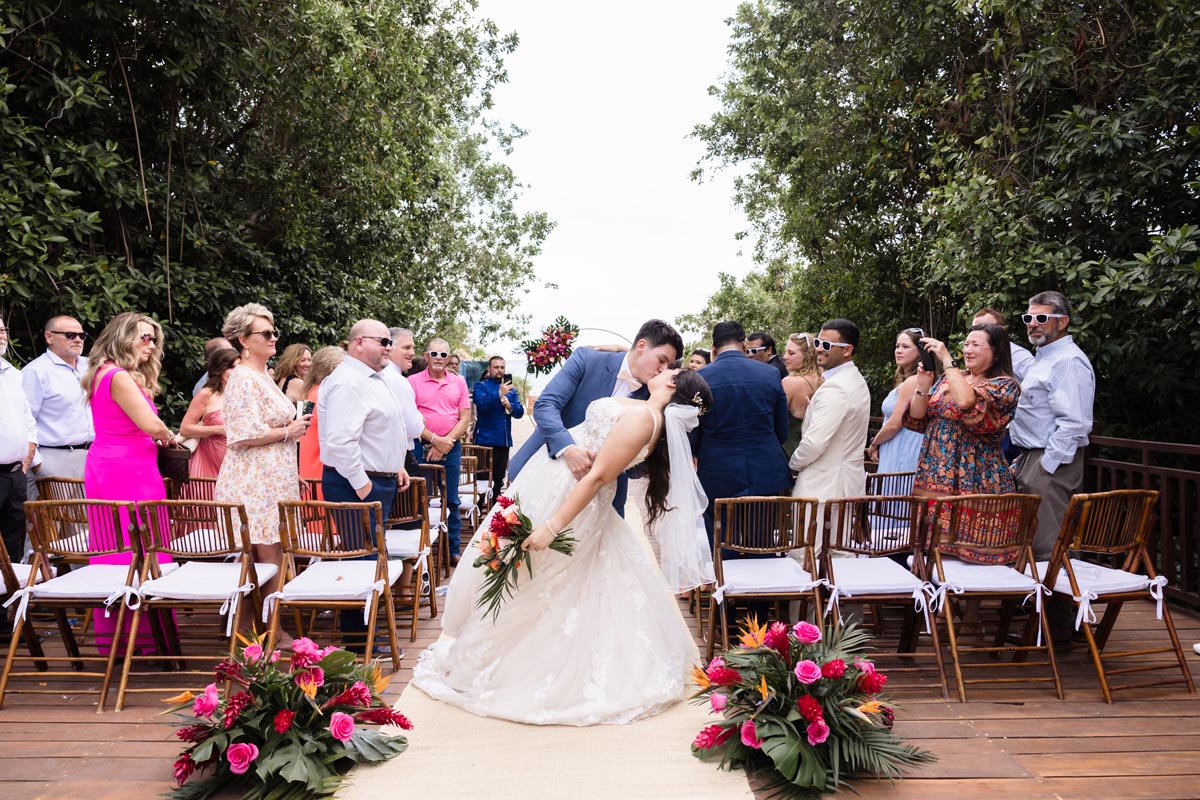 The ceremony was heartfelt and intimate, with the couple exchanging vows surrounded by vibrant tropical beauty and the love and support of the people closest to them.