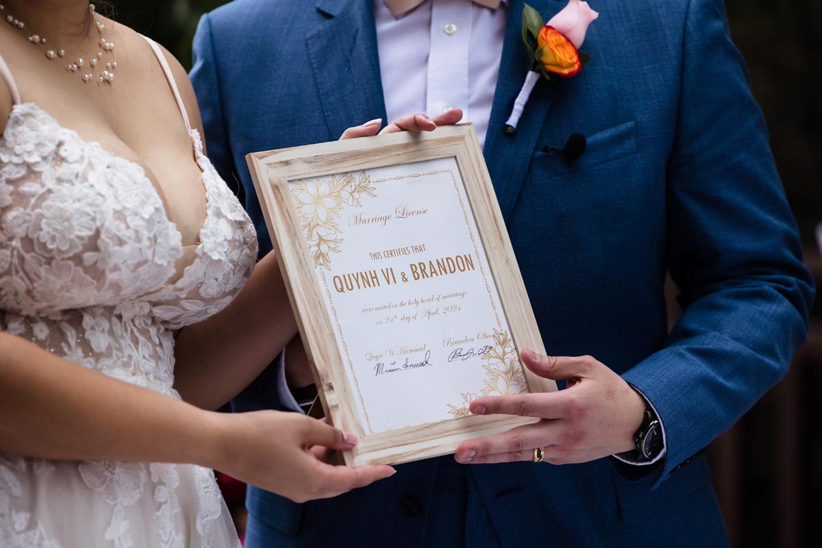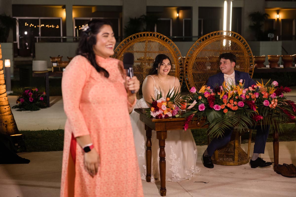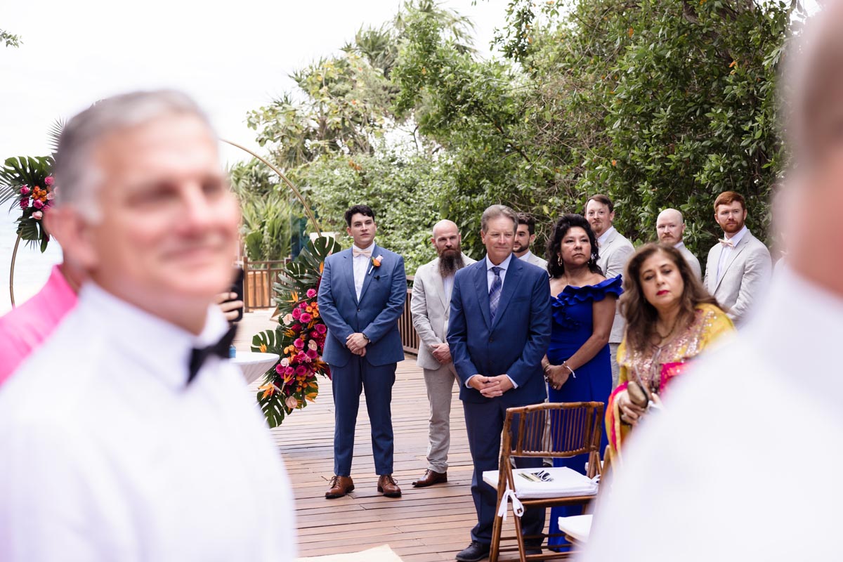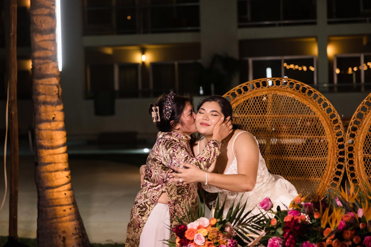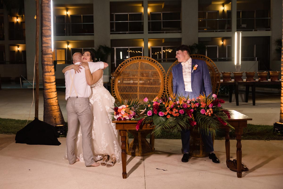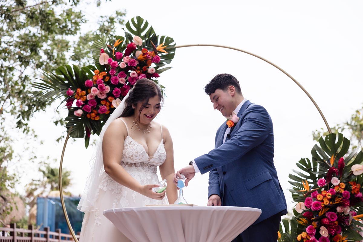 The ceremony was heartfelt and intimate, with the couple exchanging vows surrounded by vibrant tropical beauty and the love and support of the people closest to them.