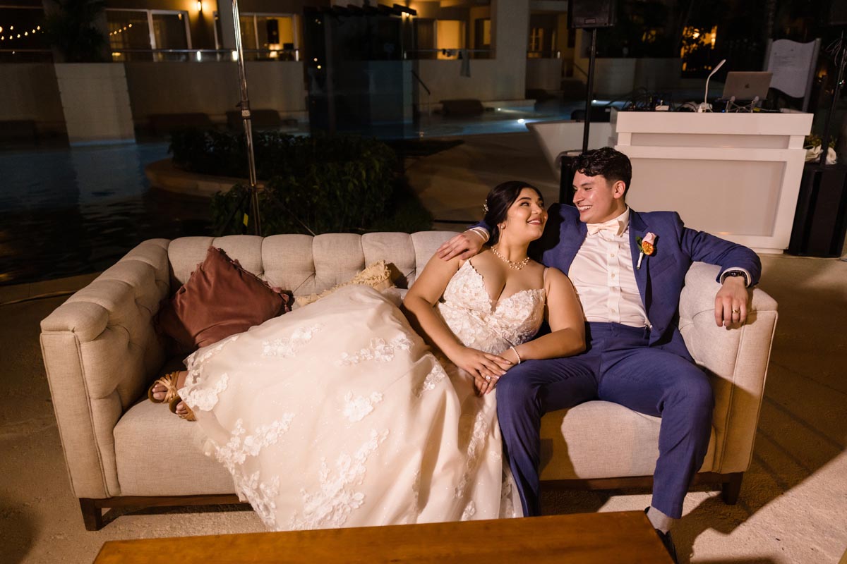 After the ceremony, we explored the stunning resort grounds for portraits. The combination of palm-lined pathways, elegant design, and soft Caribbean light created the perfect backdrop for Marium and Brandon’s newlywed photos.