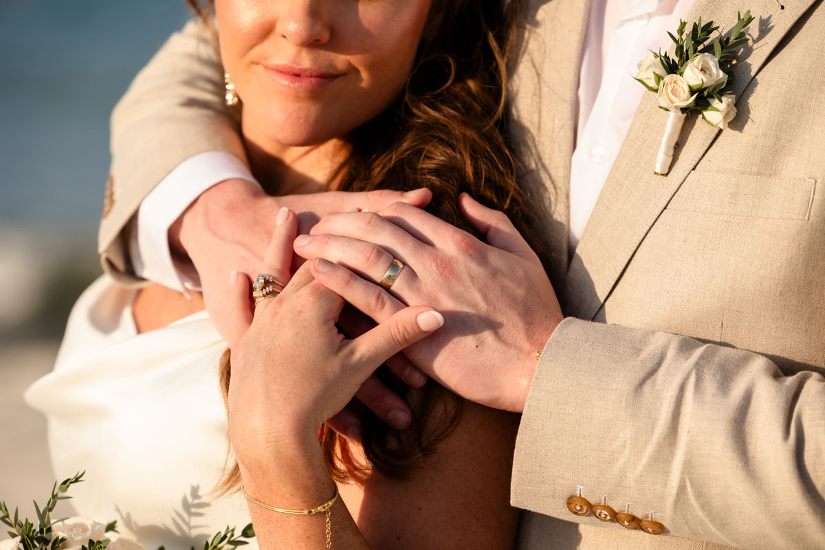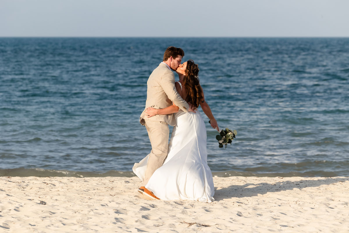After the ceremony, we captured newlywed photos along the beach as the sun dipped lower in the sky. Sunset’s glowing gold created a warm cinematic backdrop, reflecting the depth of Genevieve and Jack’s natural connection.