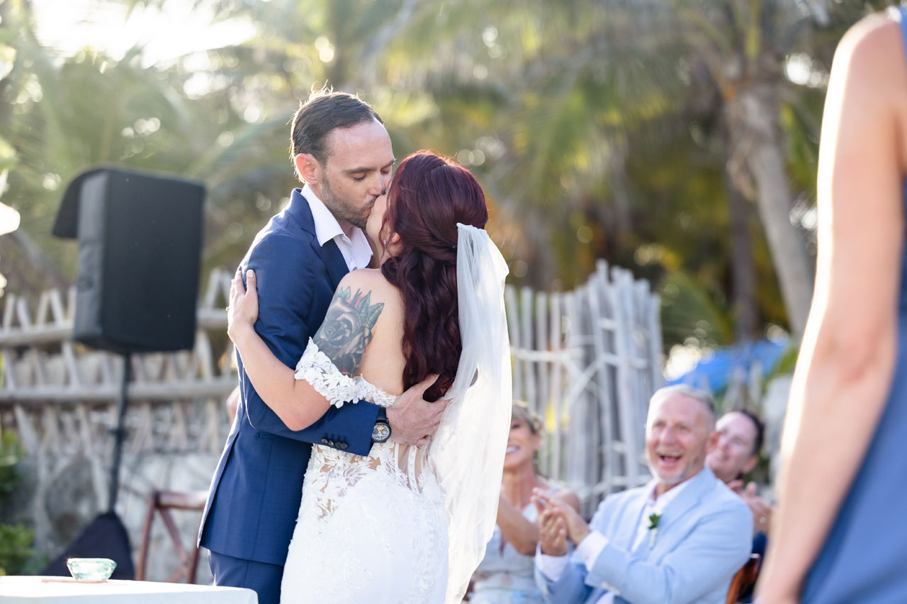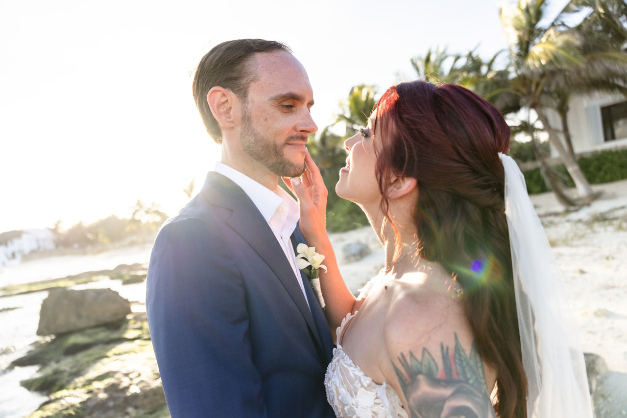 After the ceremony, we explored the grounds and beachfront, capturing those newlywed moments as the light softened into that golden Riviera Maya magic. Leanne + Michael were completely in their element, relaxed, connected, and soaking in every second together in their “just married” glow.